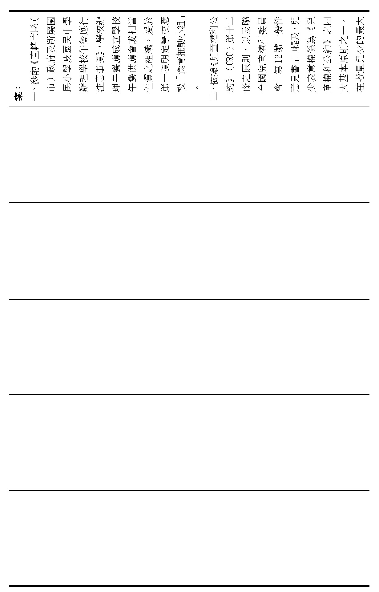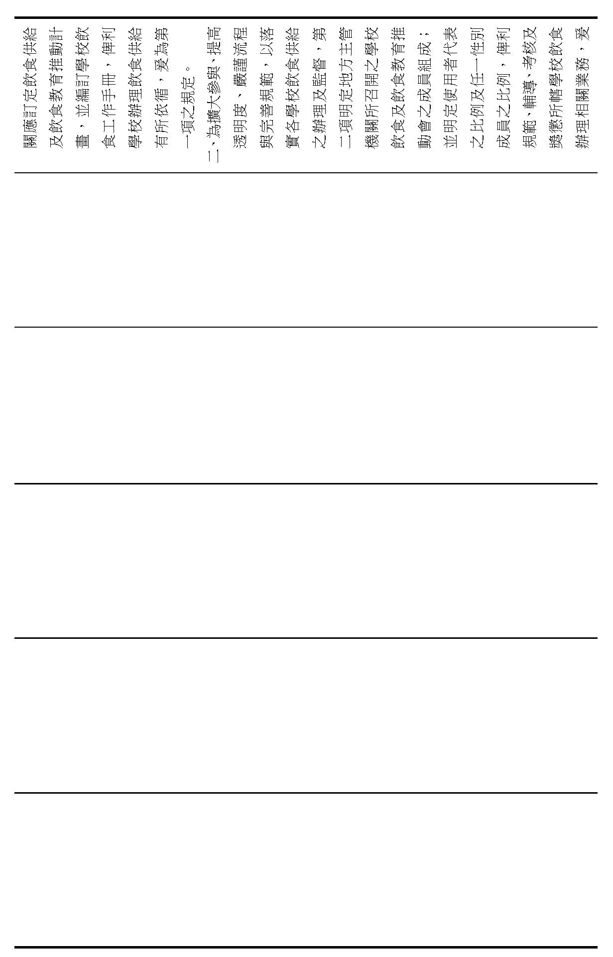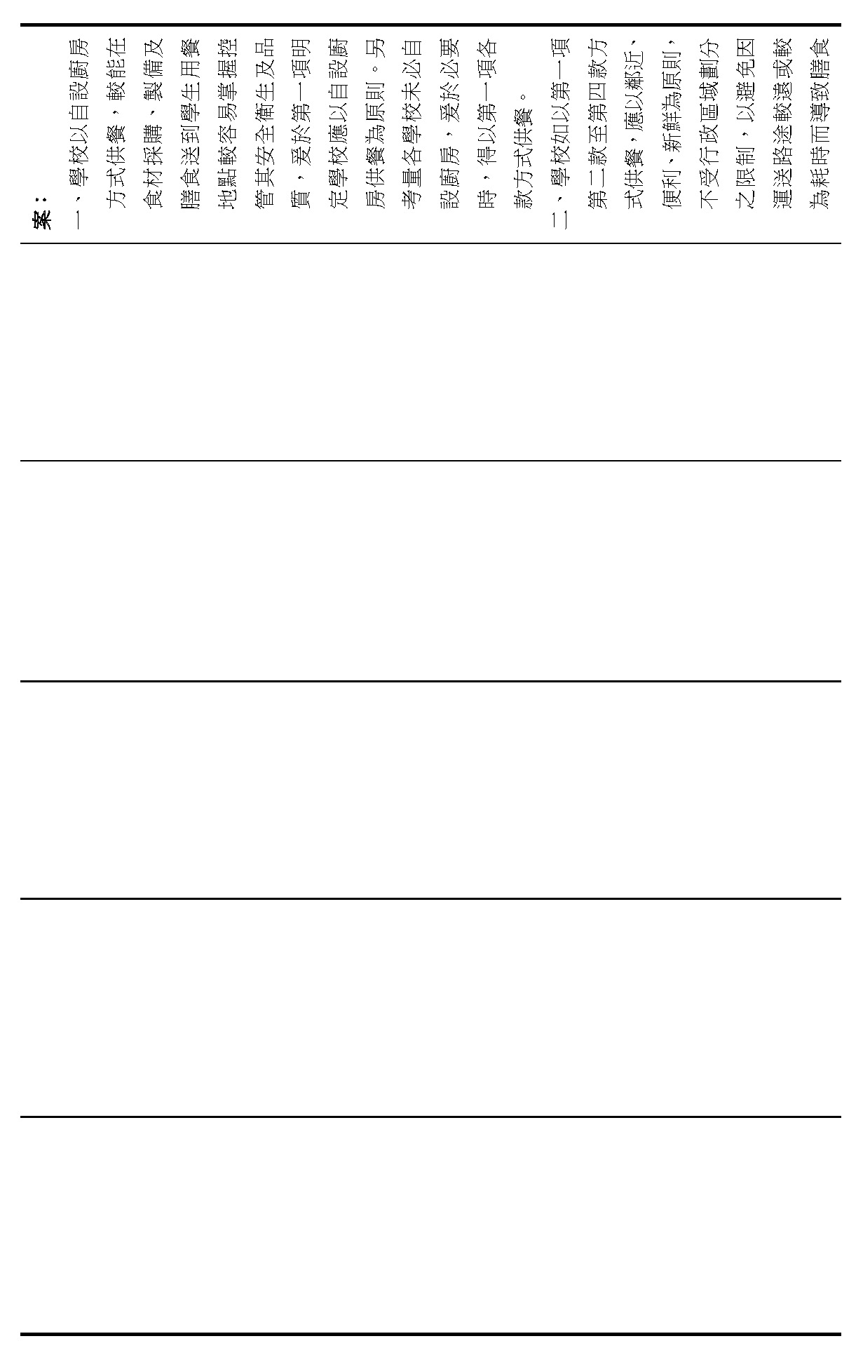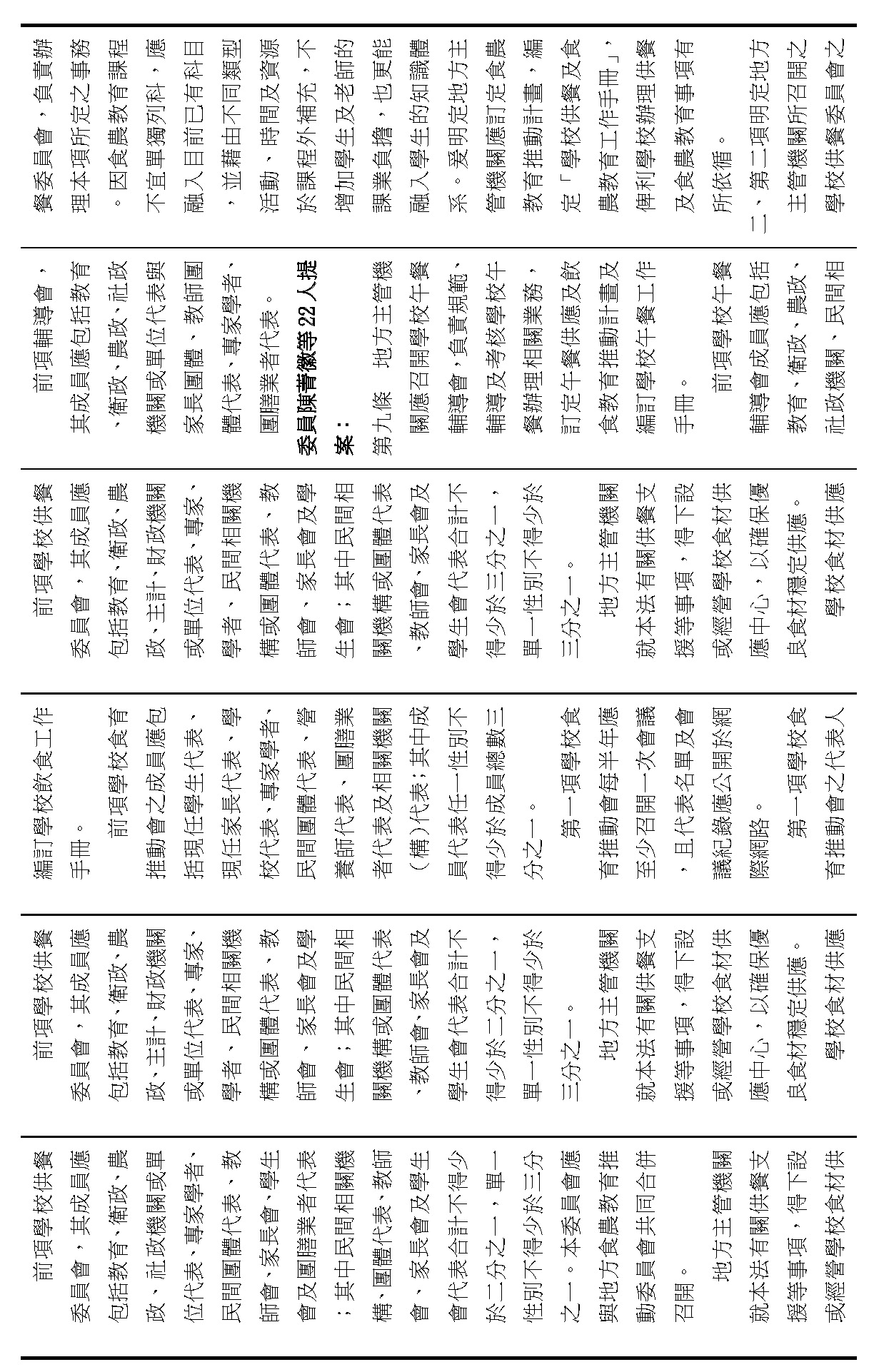裡面許多原則的部分,其實大家都說每個都很重要,不管是透明、營養師、程序上,或者是種種的採購流程、平臺、相關資訊揭露的部分,每位委員都覺得這個很重要,教育部也覺得很重要,所以今天就應該儘快來進行、討論,這應該才是對全國的小朋友或是學生來講是最負責任的作法。