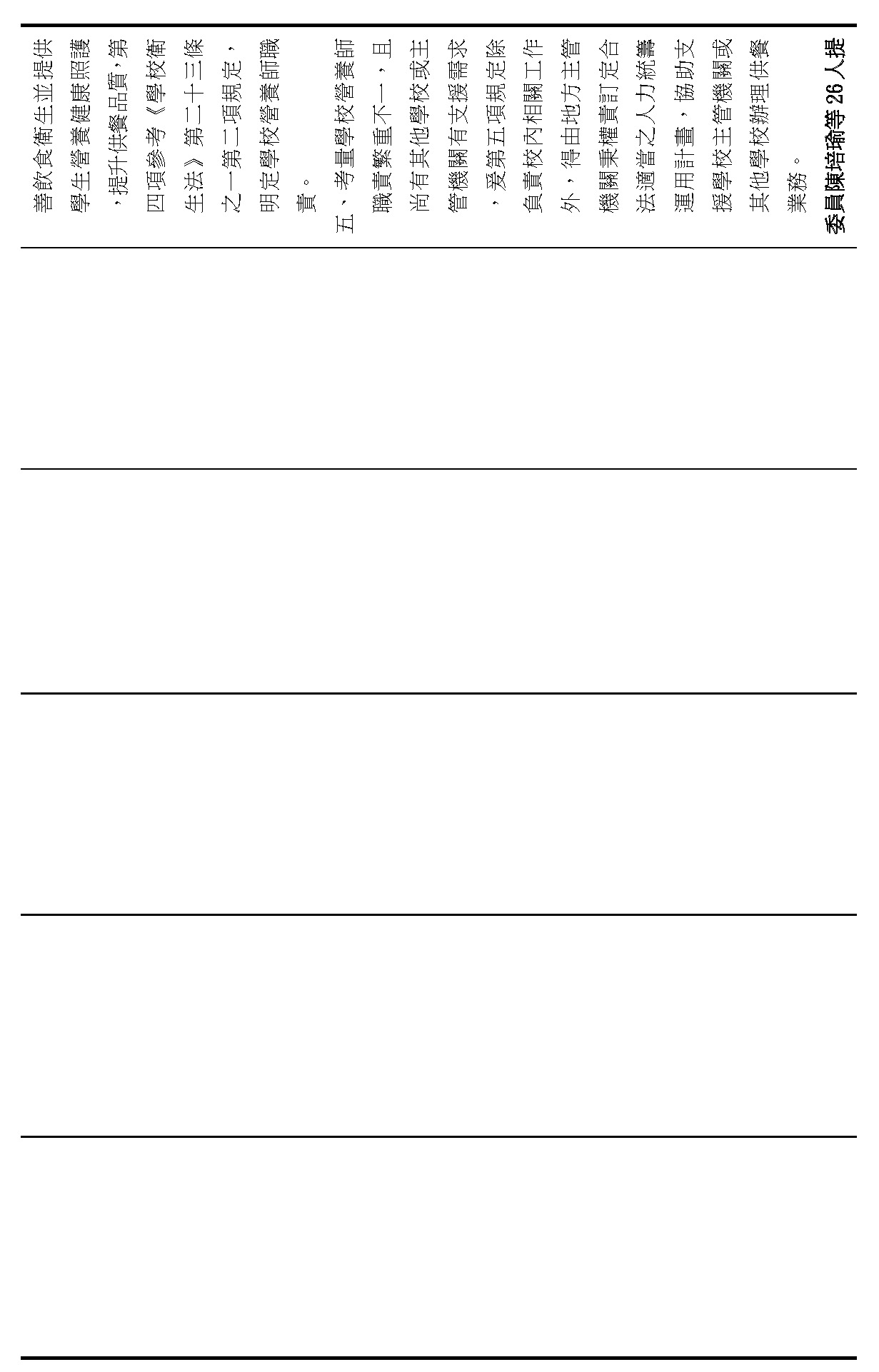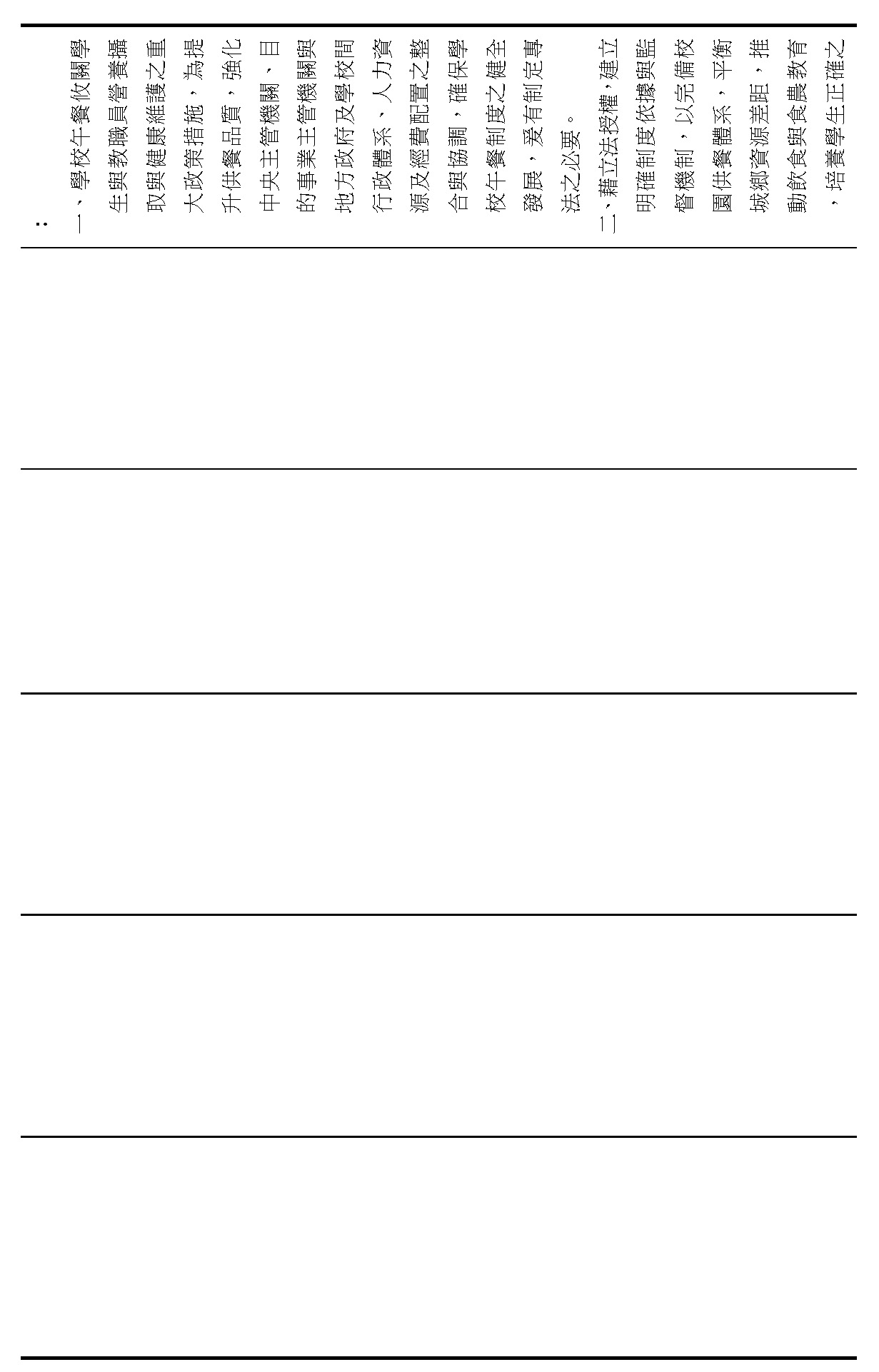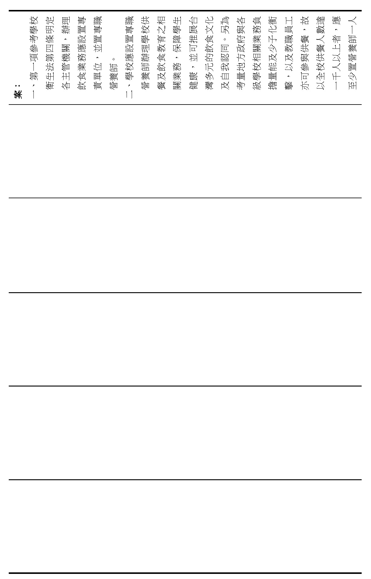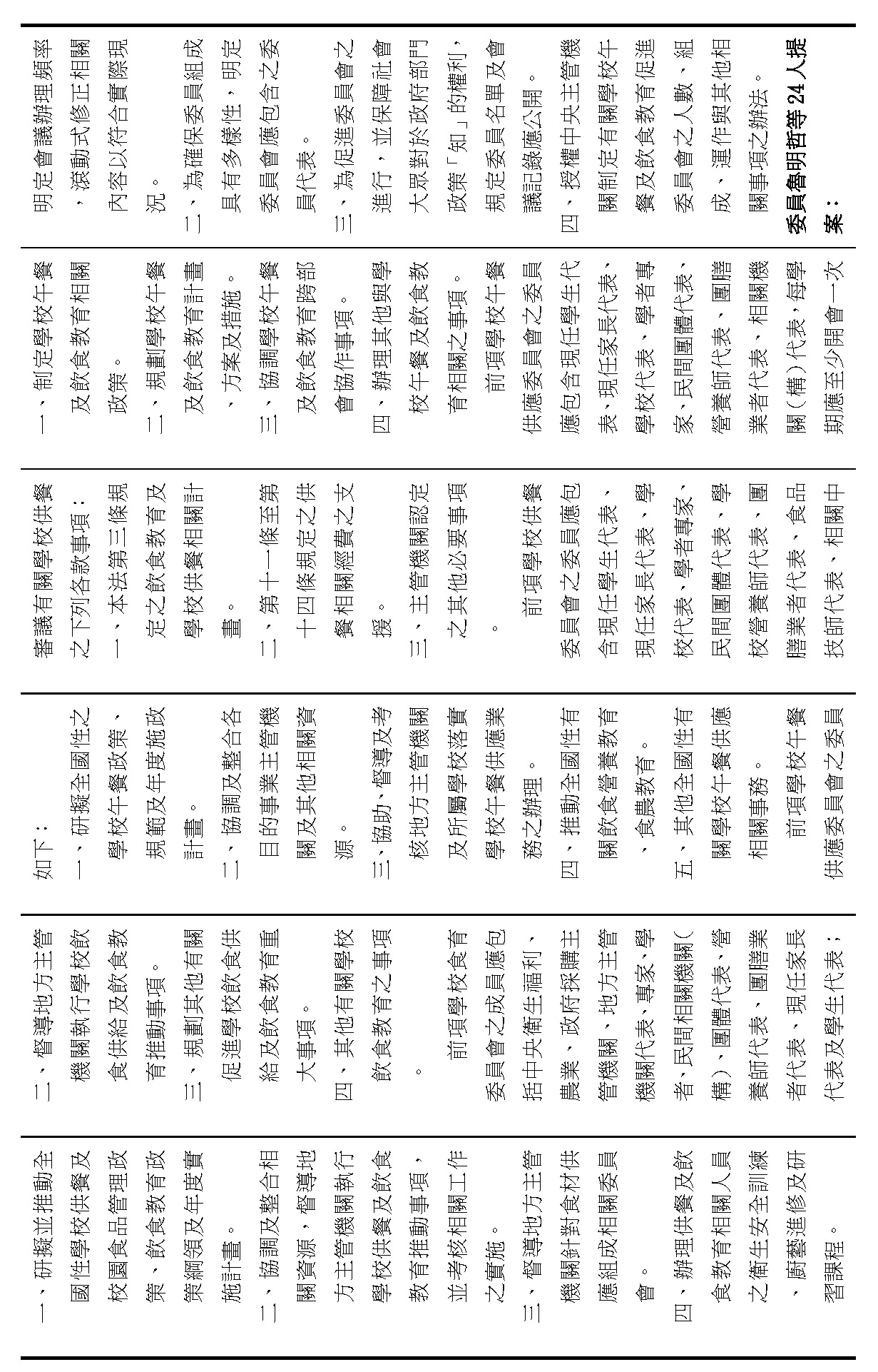 裡面許多原則的部分,其實大家都說每個都很重要,不管是透明、營養師、程序上,或者是種種的採購流程、平臺、相關資訊揭露的部分,每位委員都覺得這個很重要,教育部也覺得很重要,所以今天就應該儘快來進行、討論,這應該才是對全國的小朋友或是學生來講是最負責任的作法。