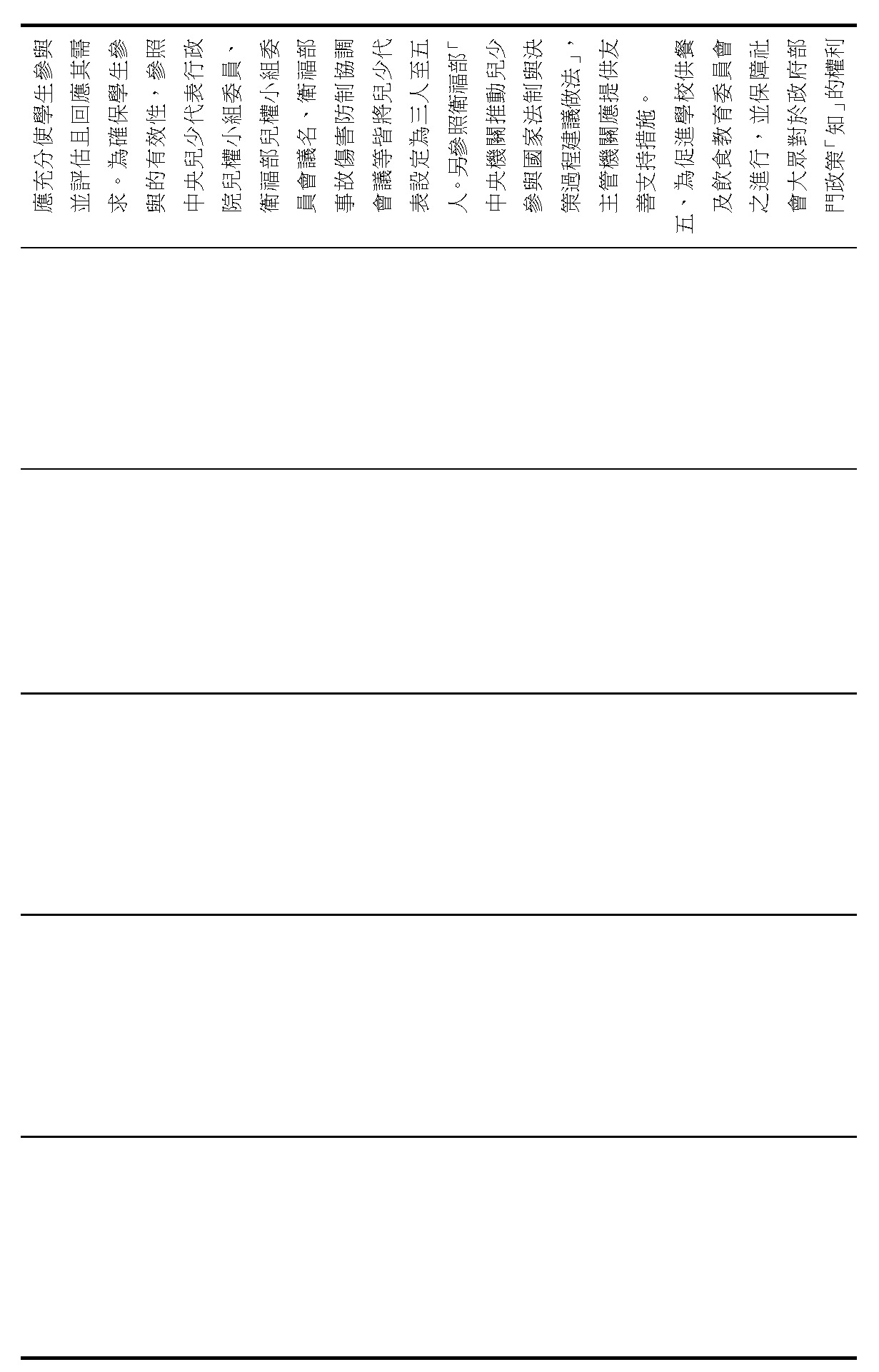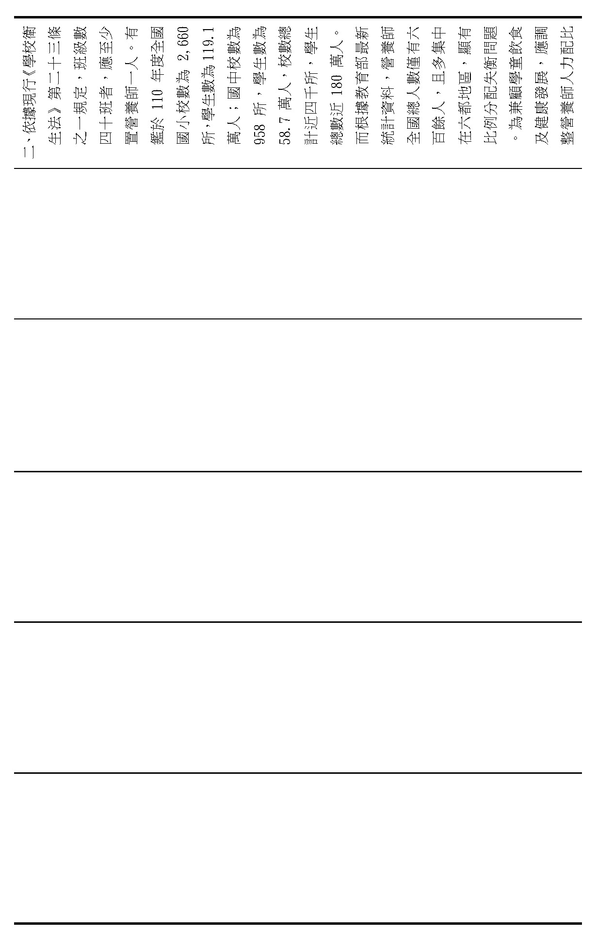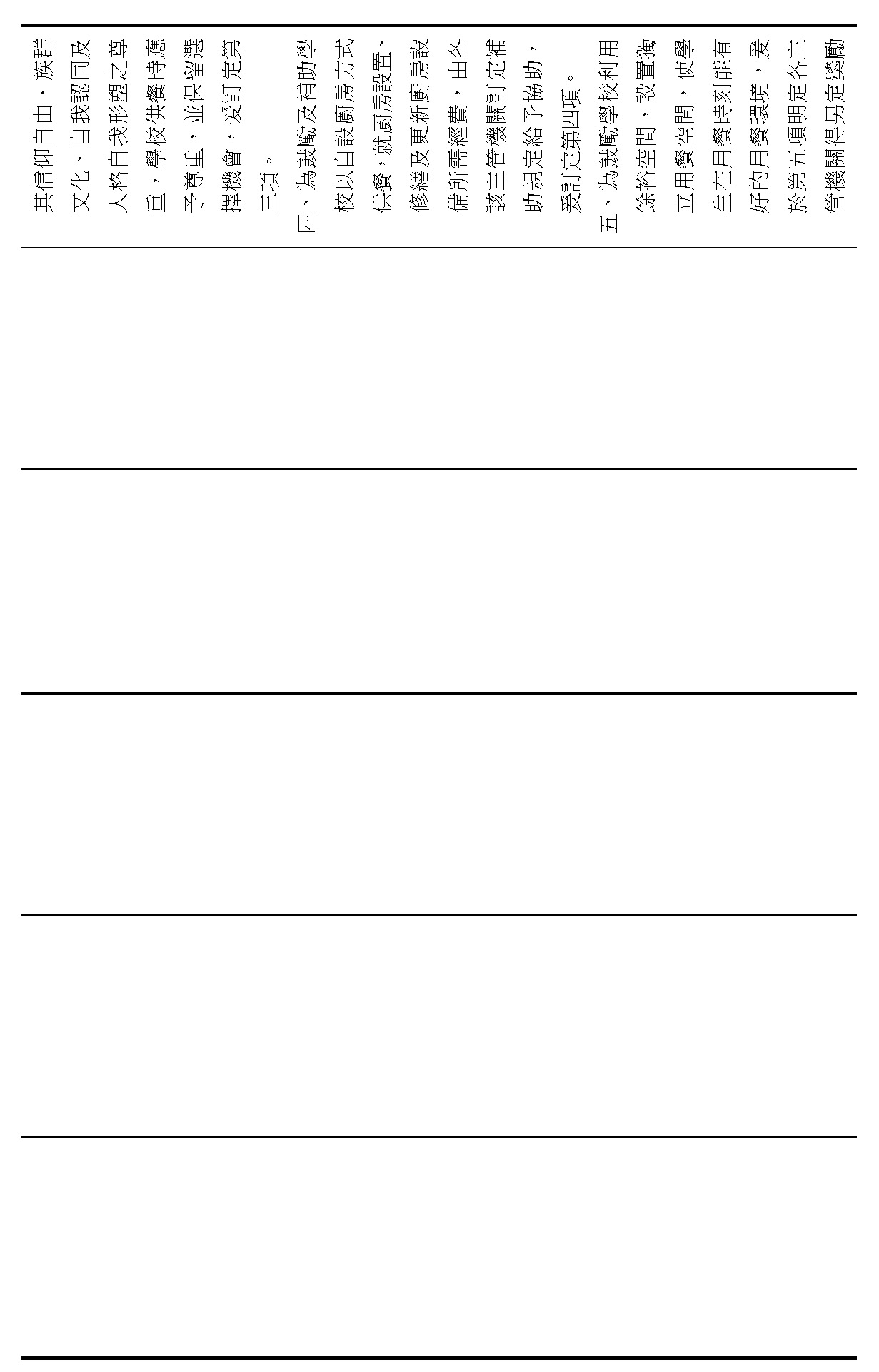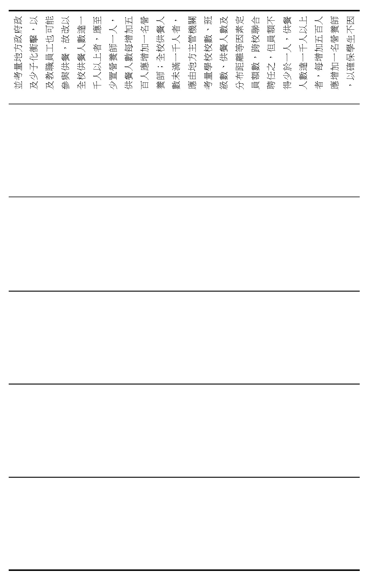 裡面許多原則的部分,其實大家都說每個都很重要,不管是透明、營養師、程序上,或者是種種的採購流程、平臺、相關資訊揭露的部分,每位委員都覺得這個很重要,教育部也覺得很重要,所以今天就應該儘快來進行、討論,這應該才是對全國的小朋友或是學生來講是最負責任的作法。
