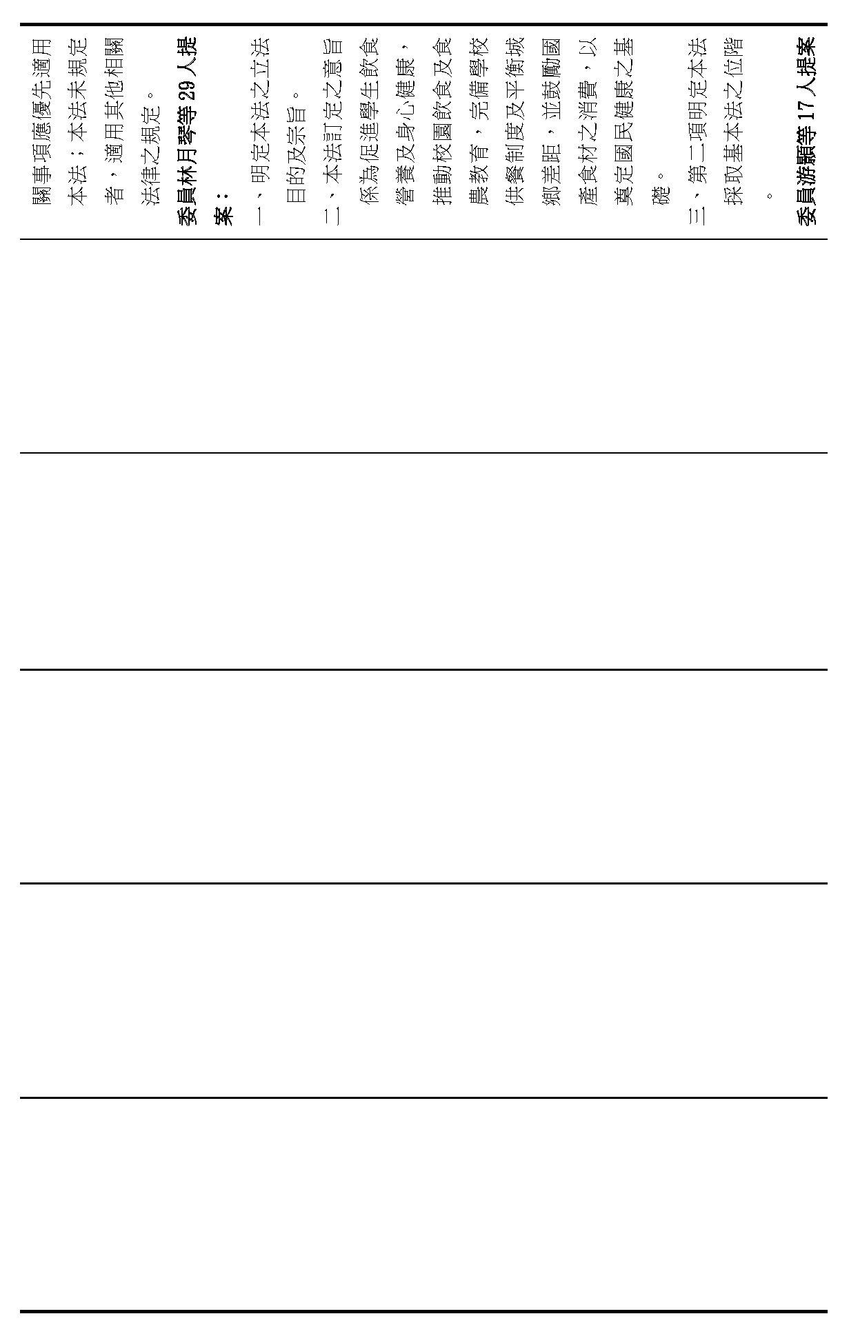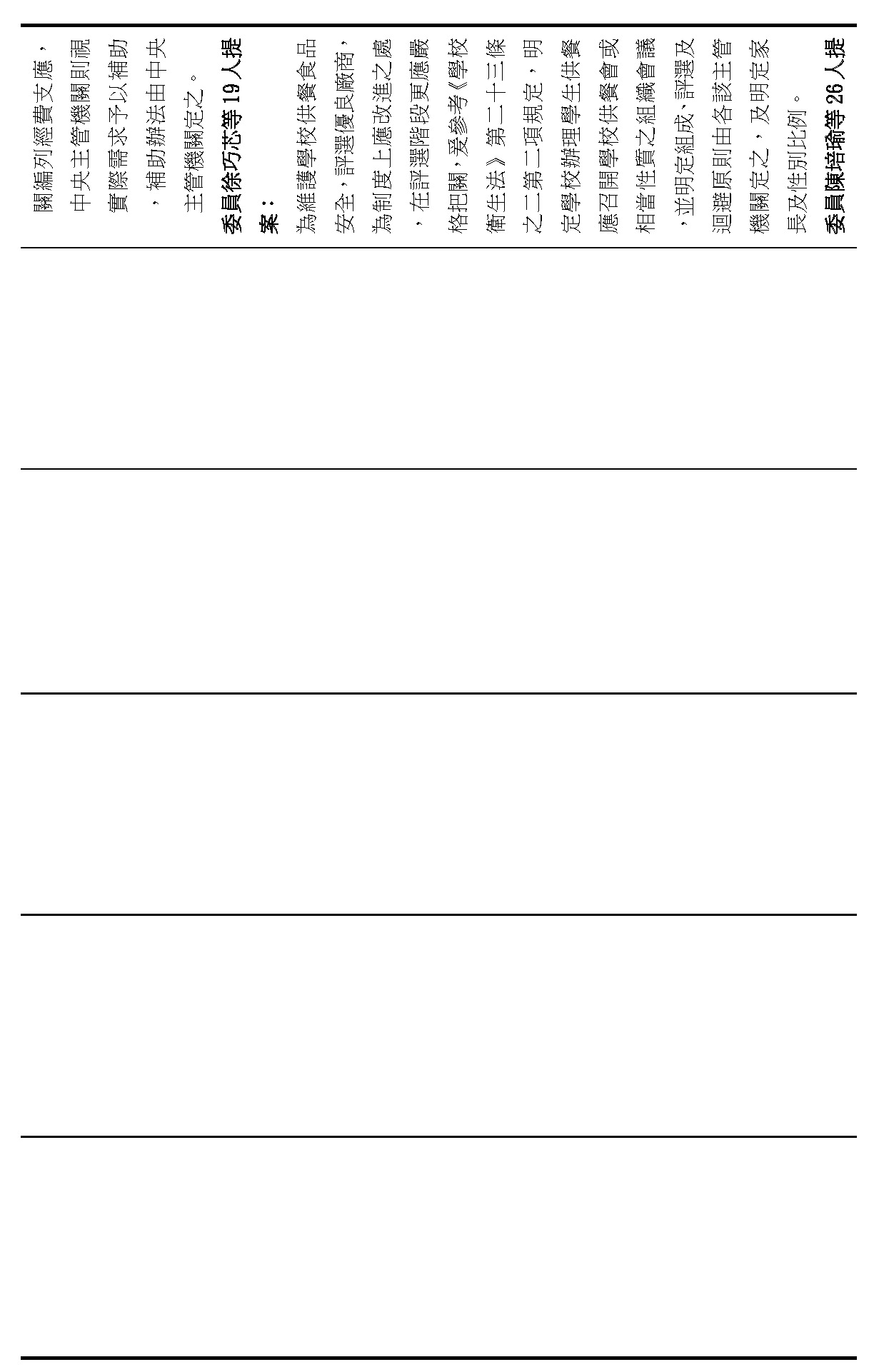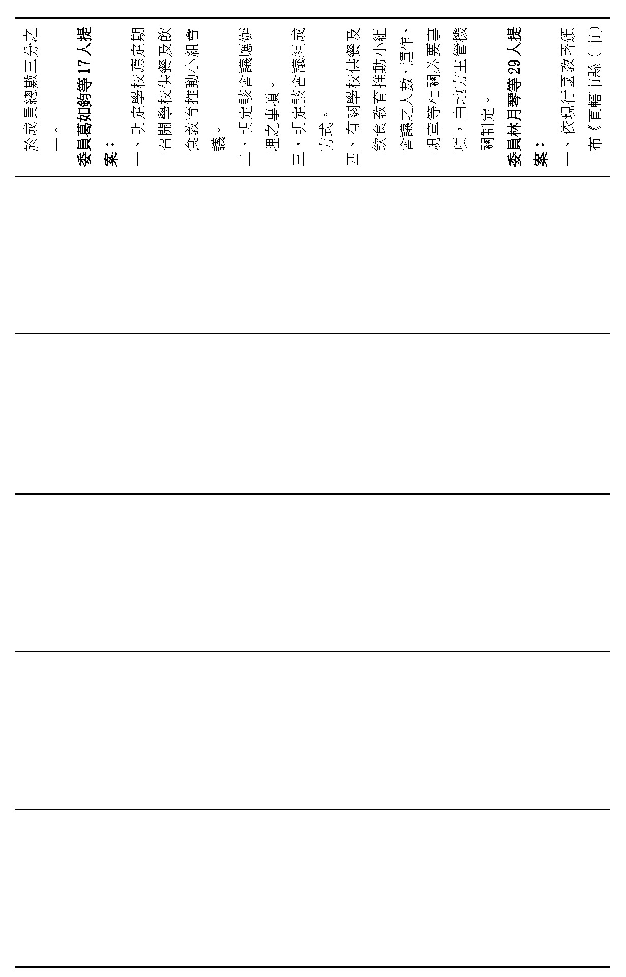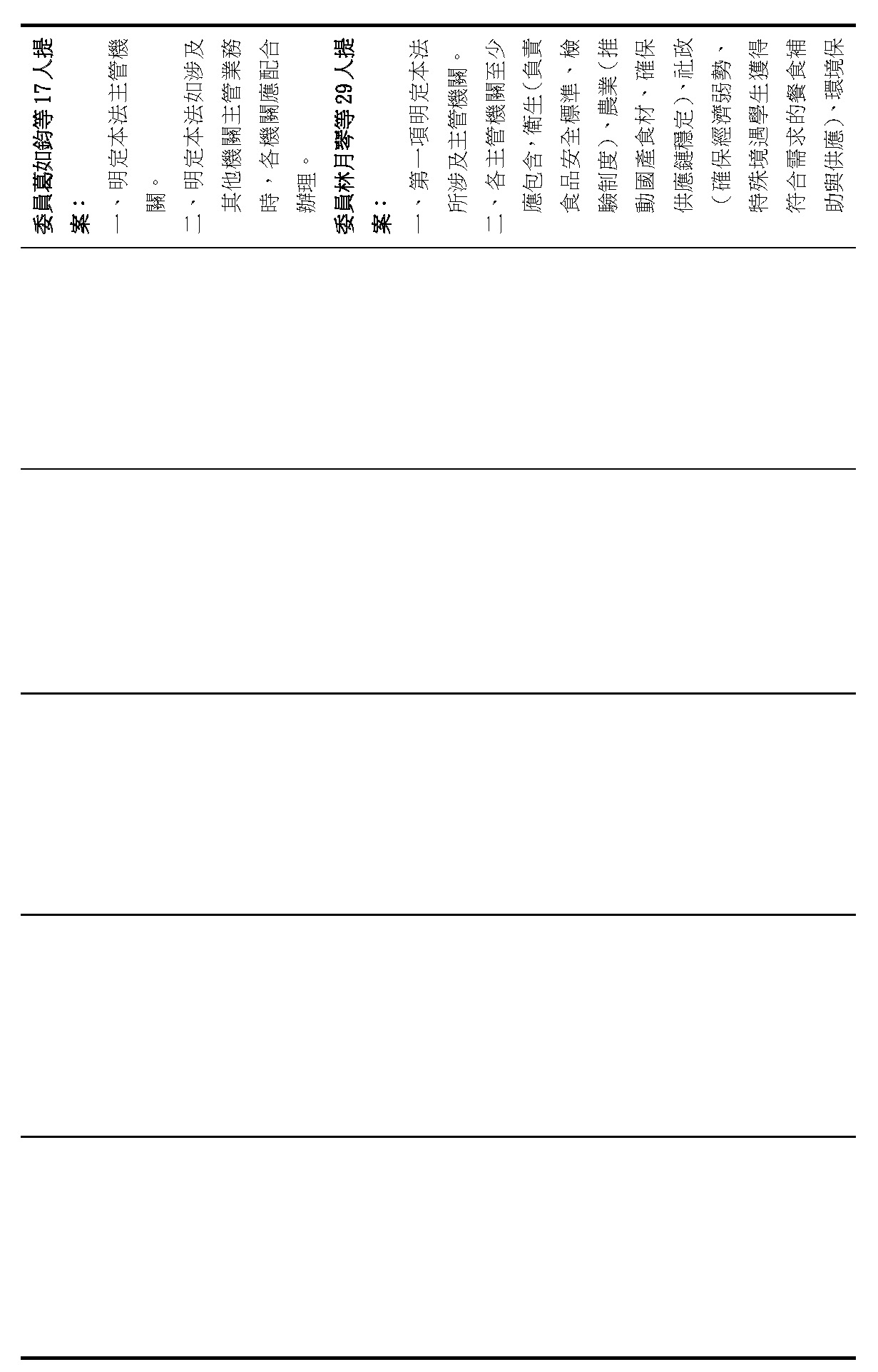 (十一)委員林月琴等29人擬具「學校供餐及飲食教育法草案」案。