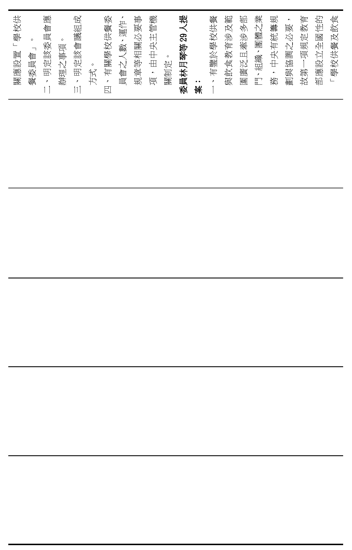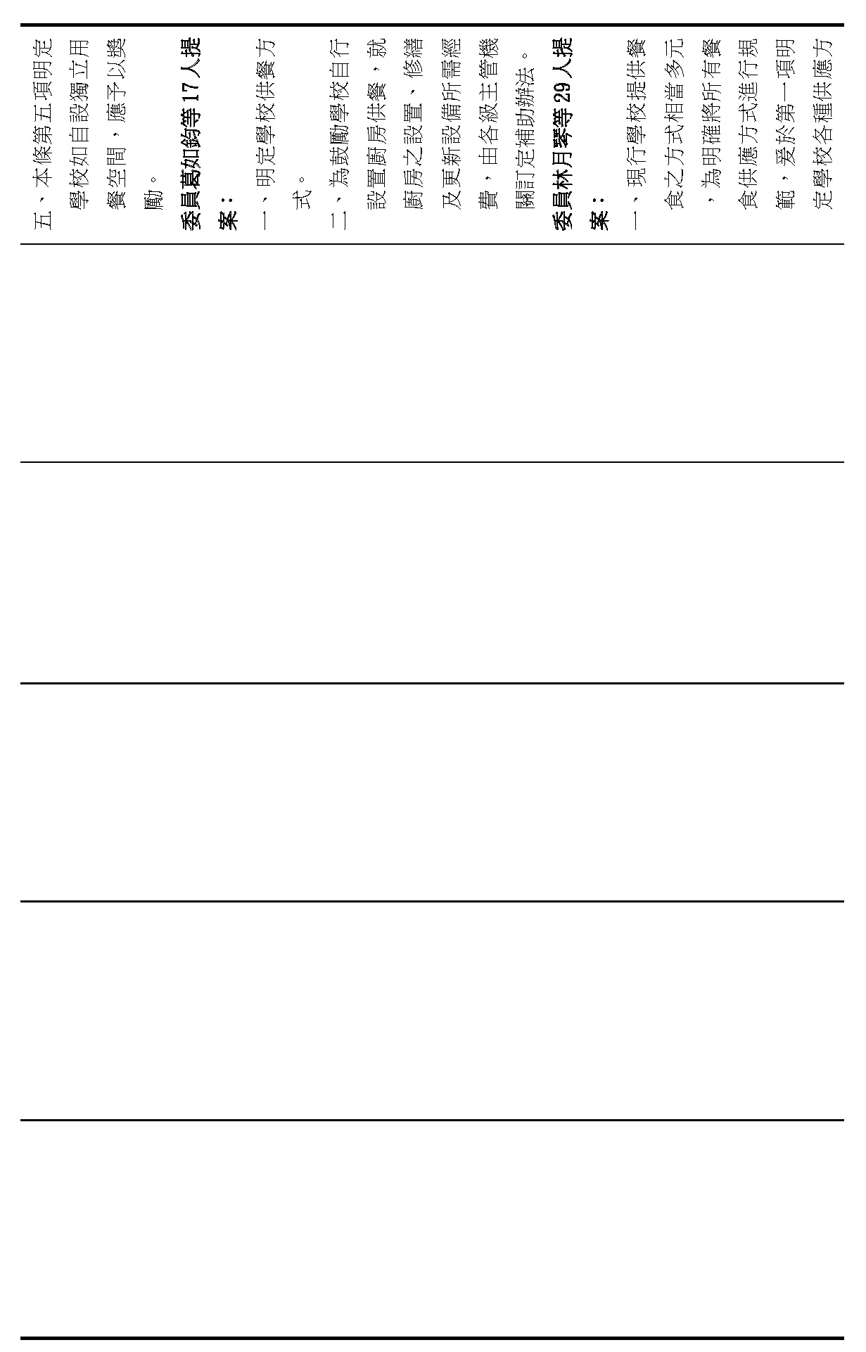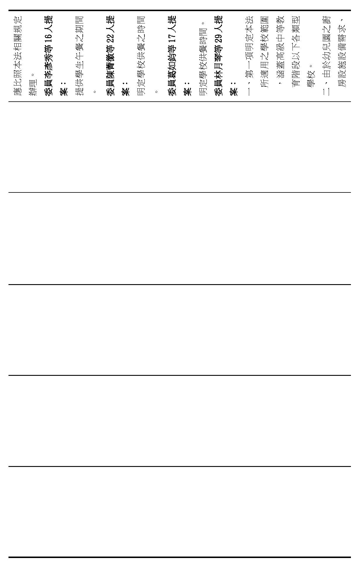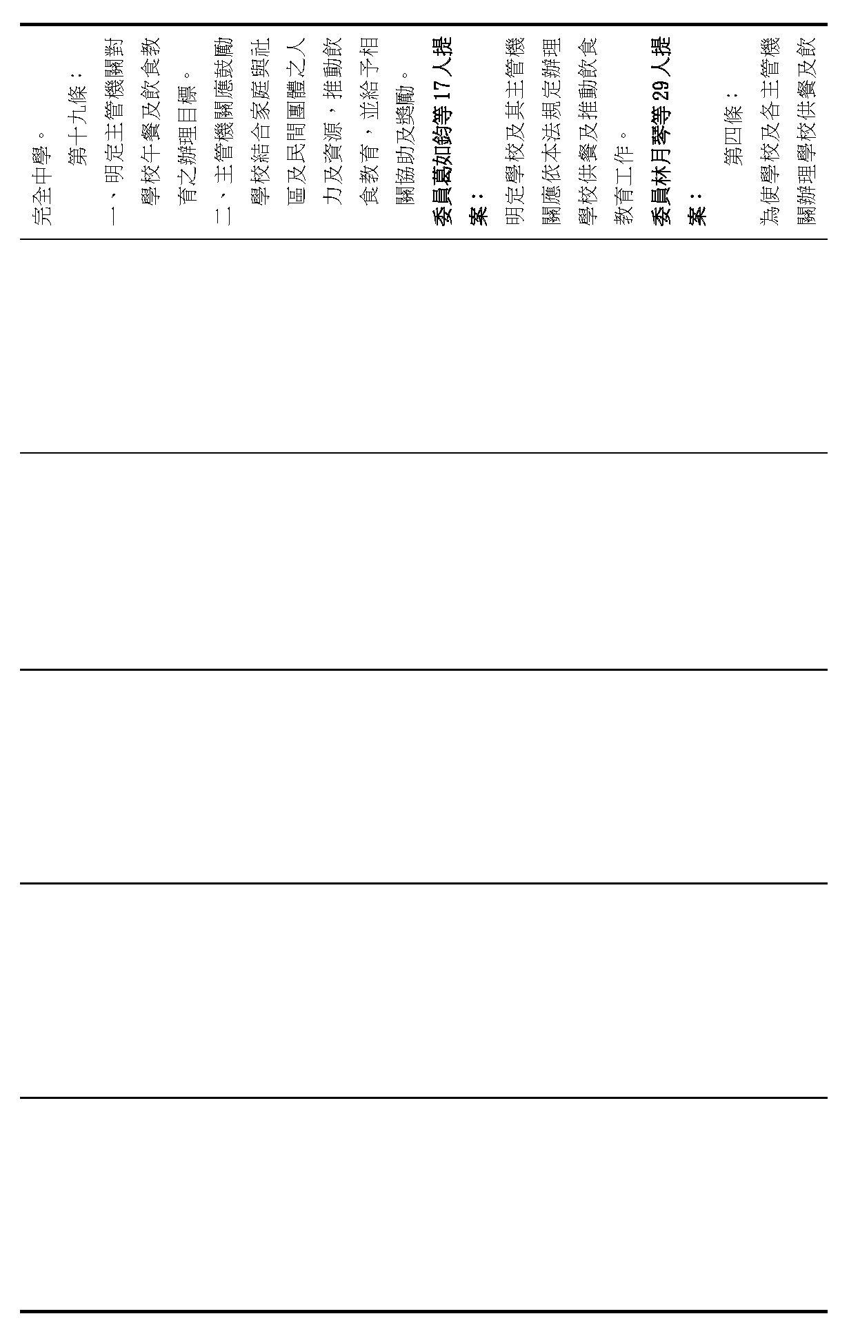 (十一)委員林月琴等29人擬具「學校供餐及飲食教育法草案」案。