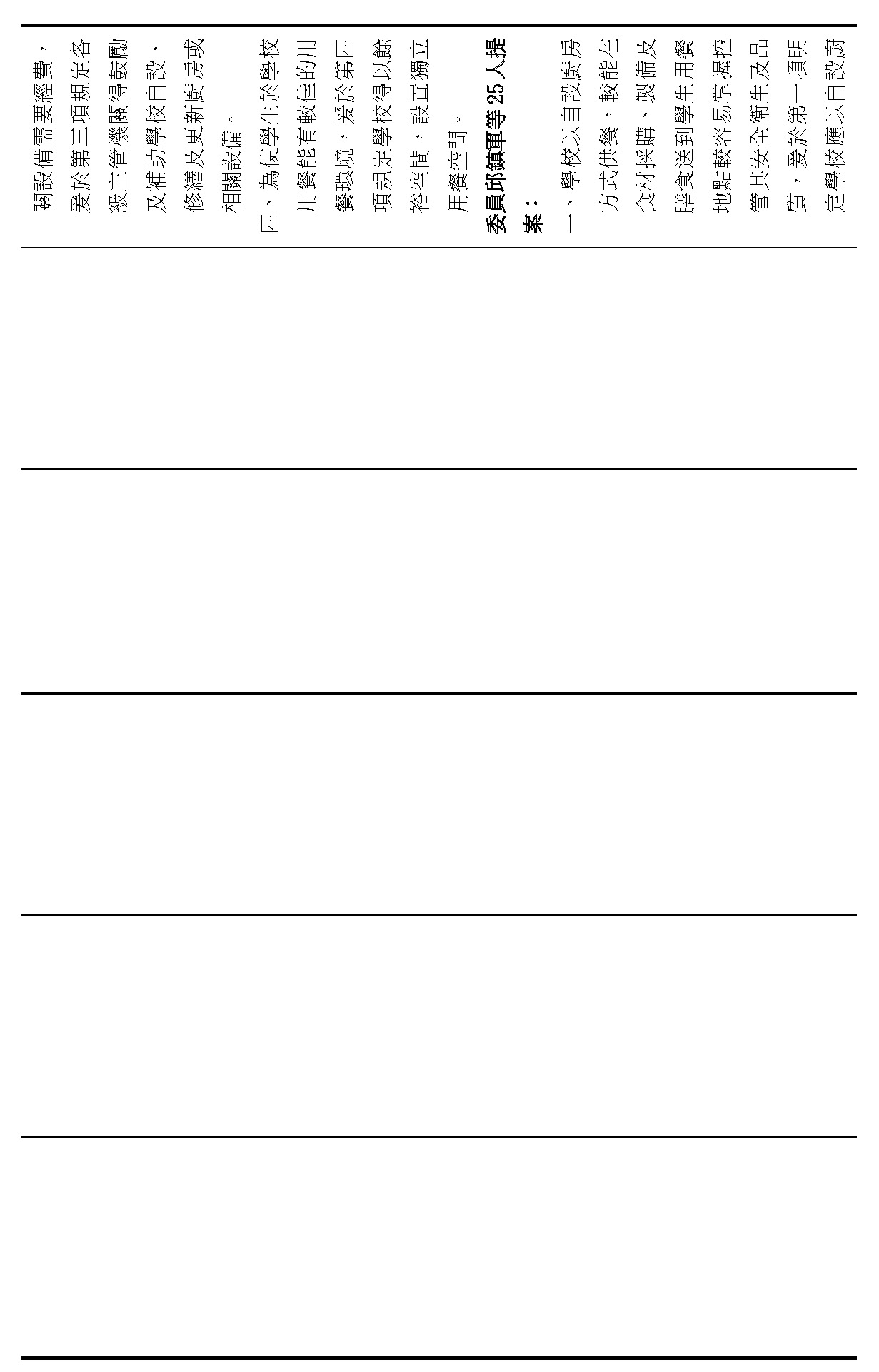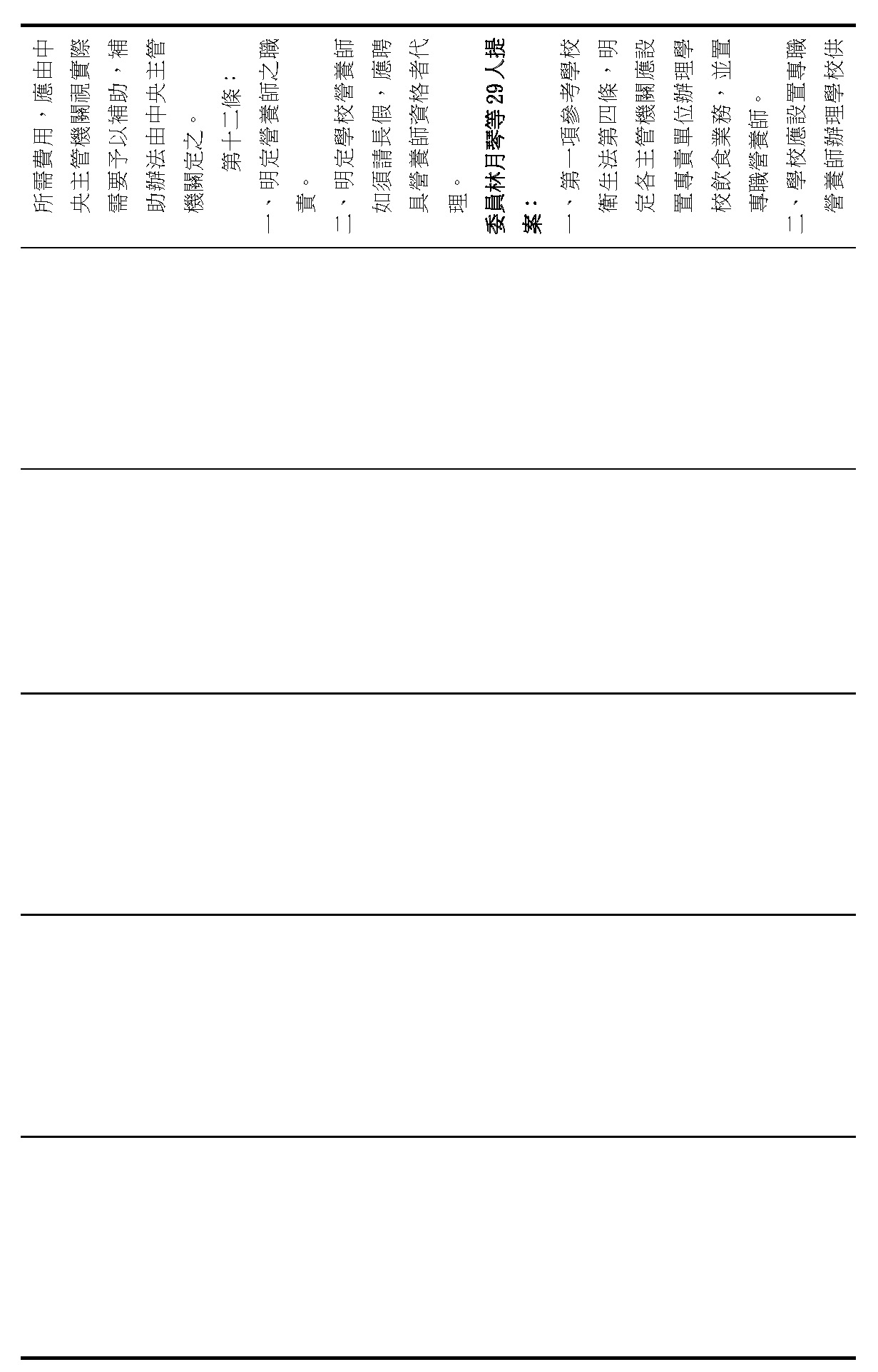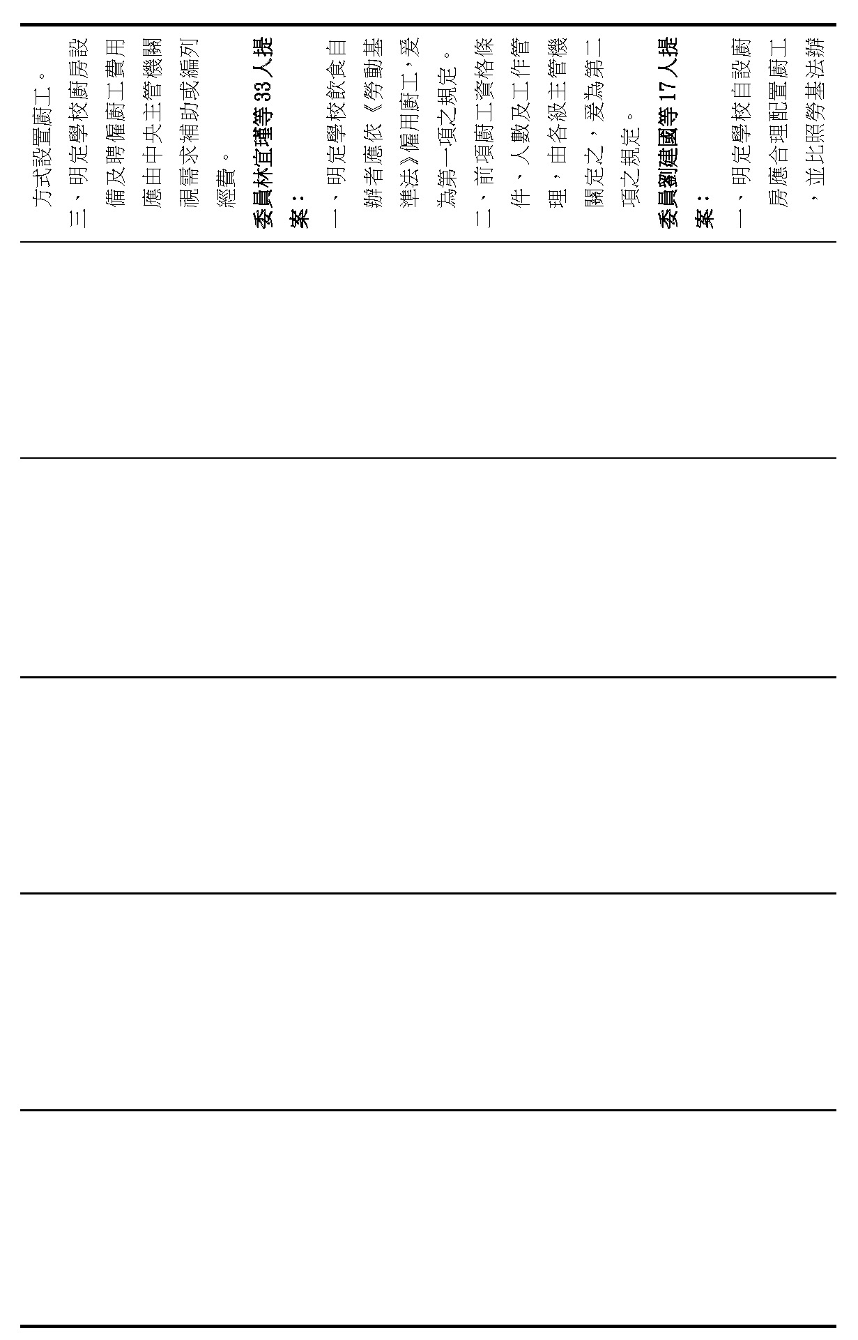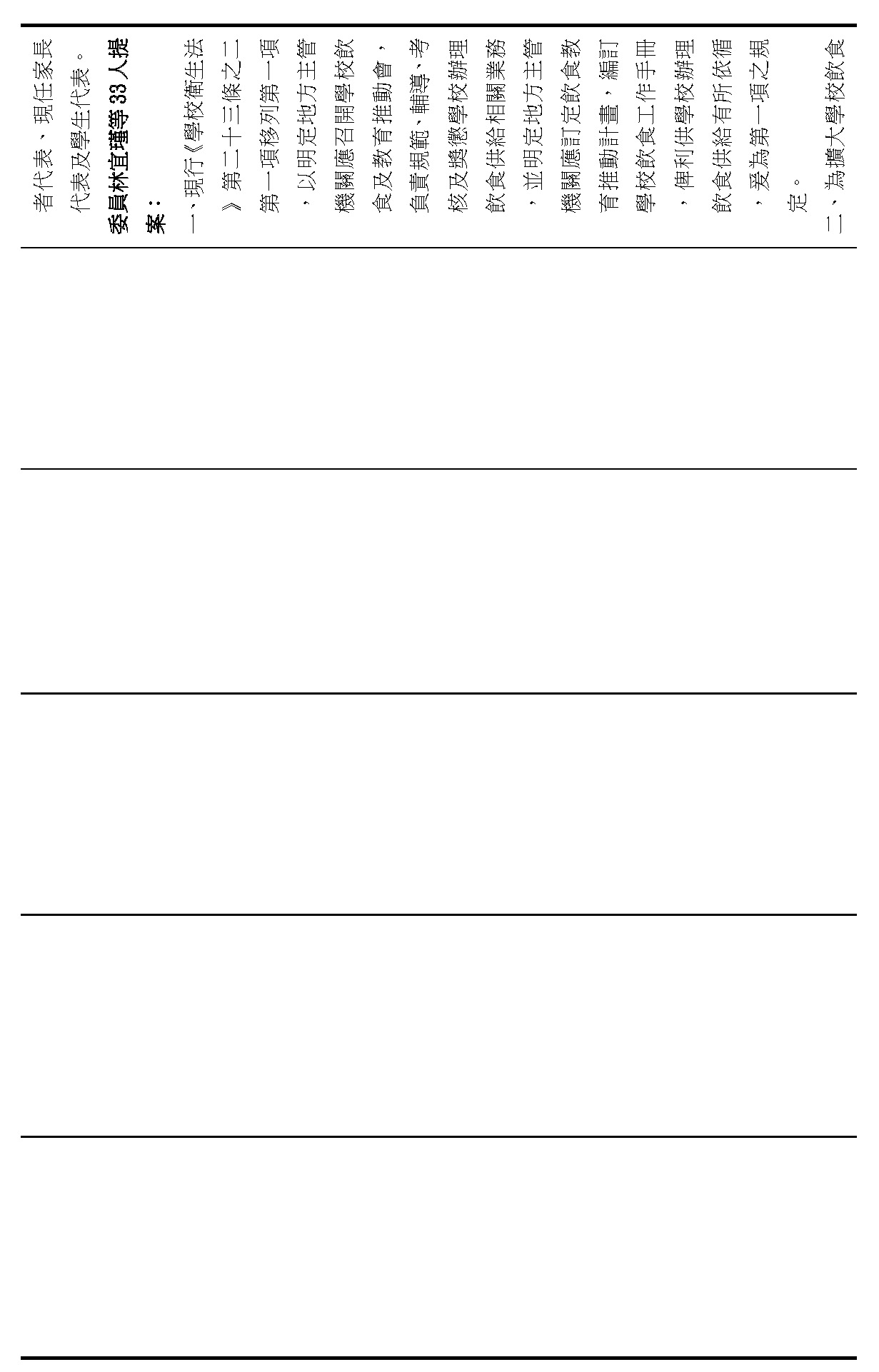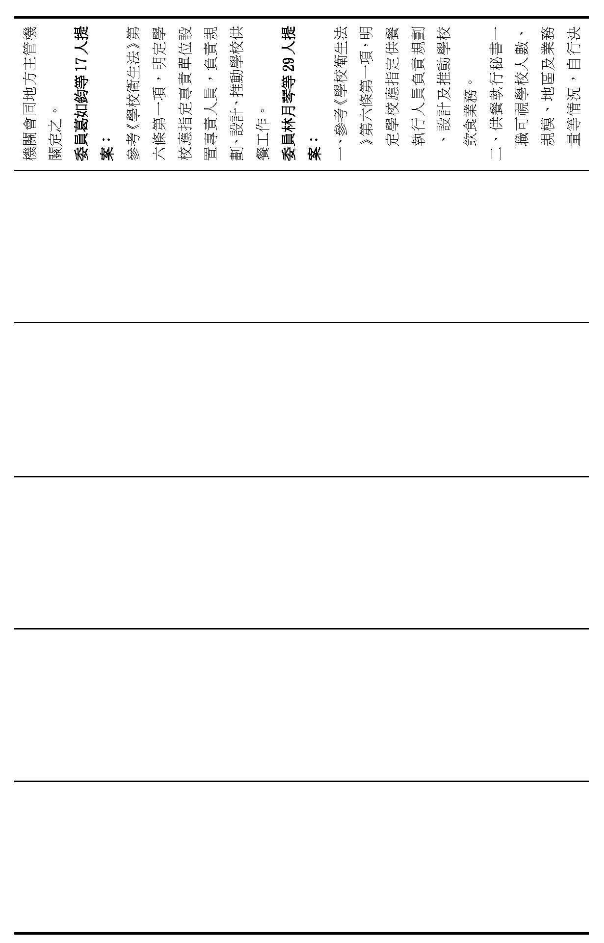 (十一)委員林月琴等29人擬具「學校供餐及飲食教育法草案」案。