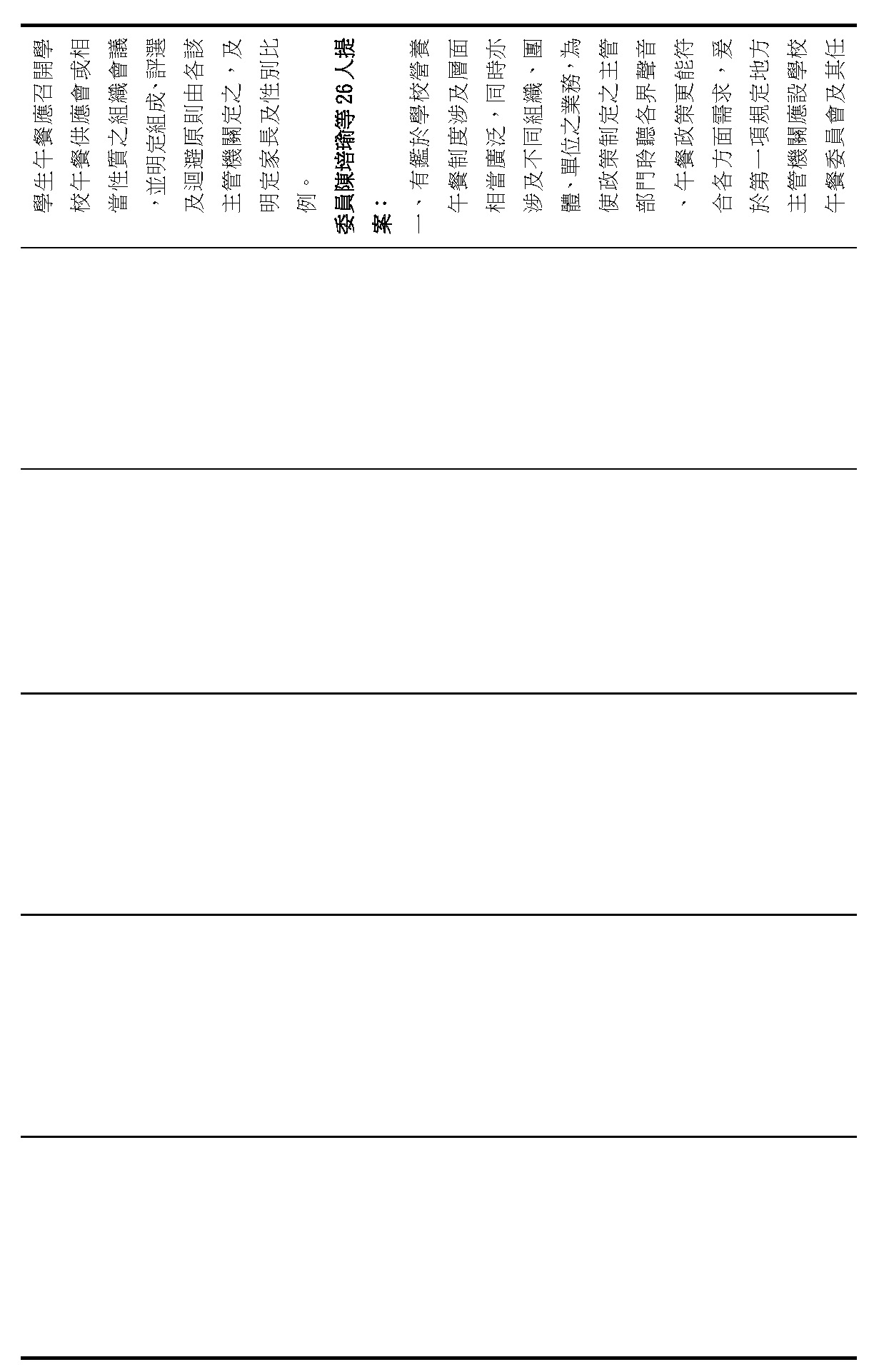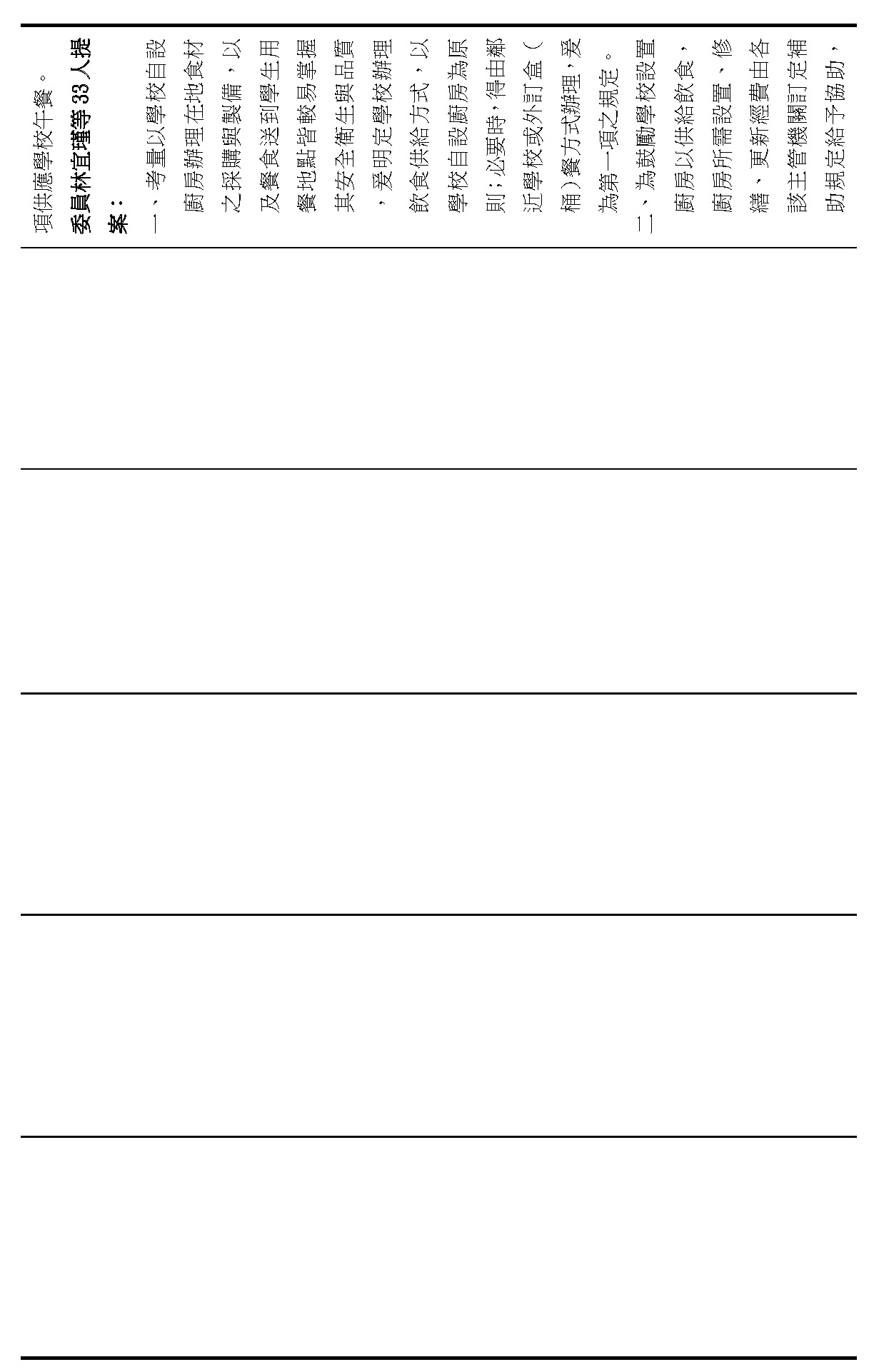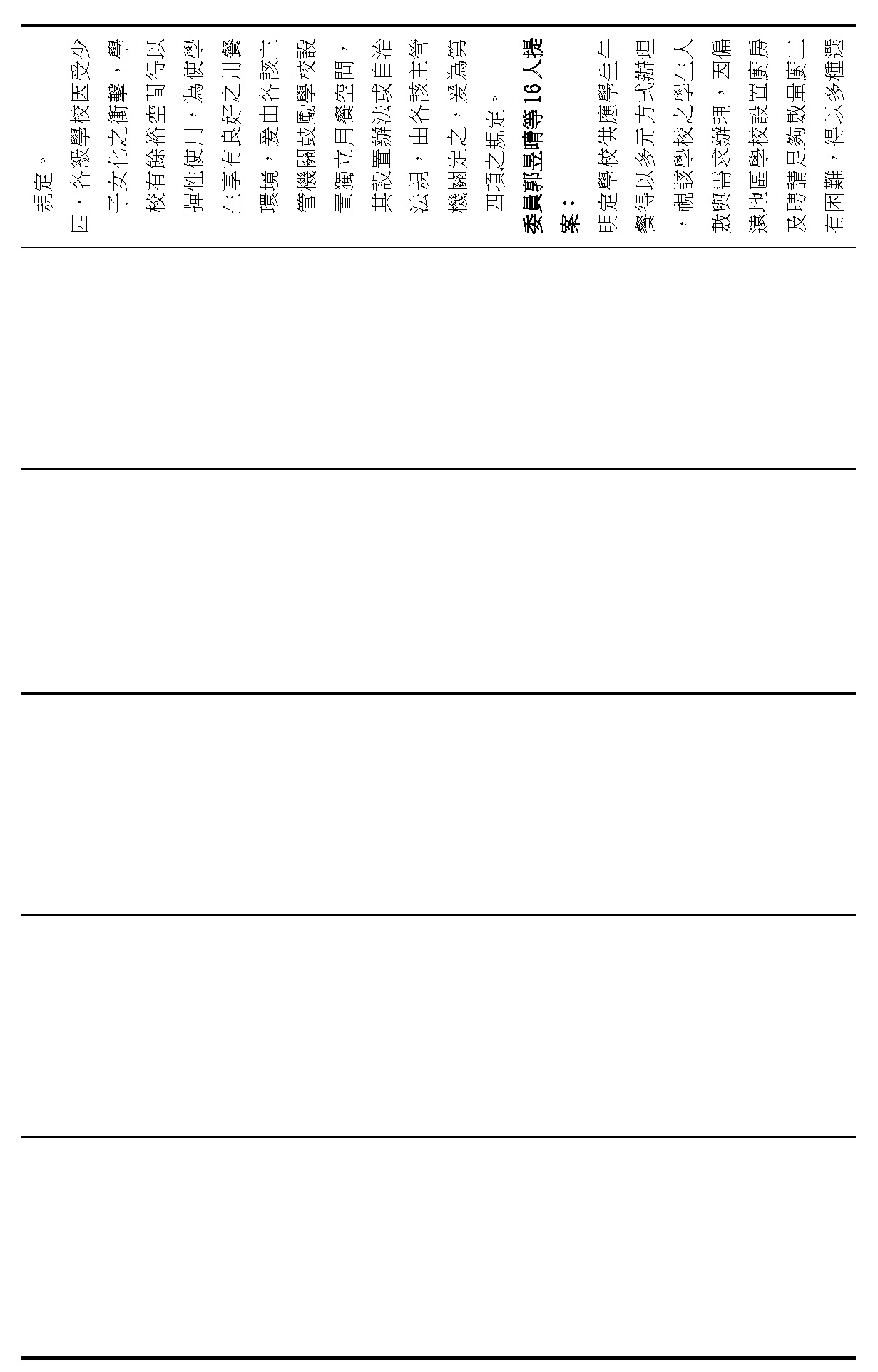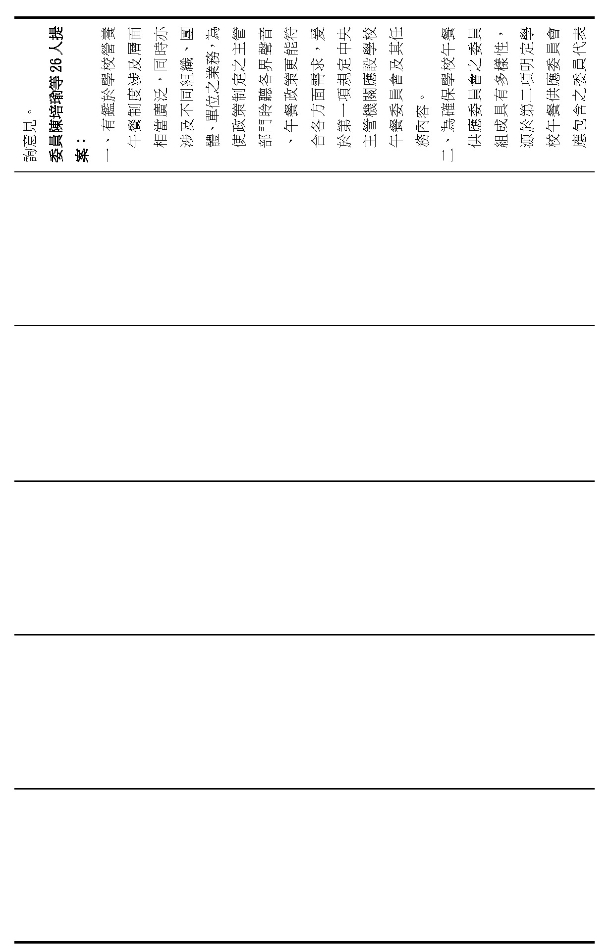 (十一)委員林月琴等29人擬具「學校供餐及飲食教育法草案」案。
