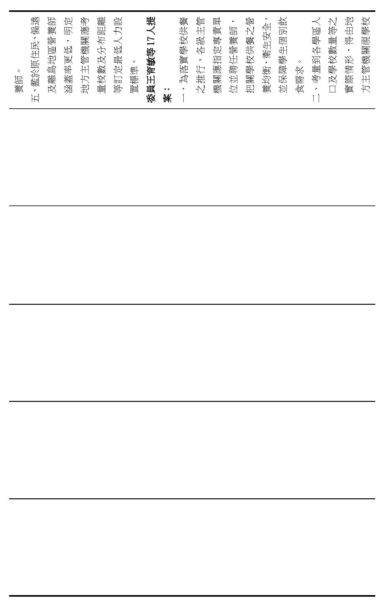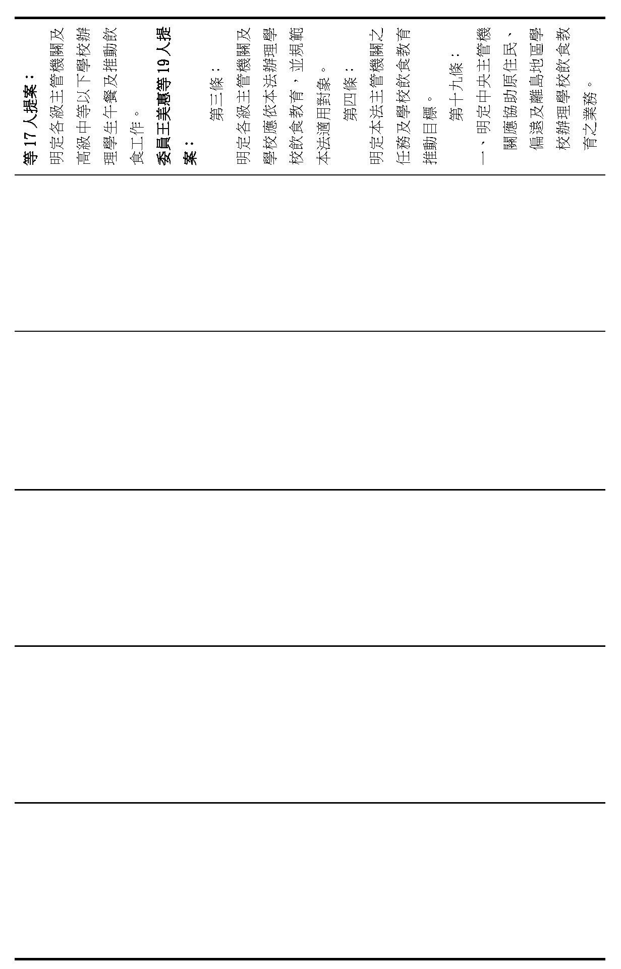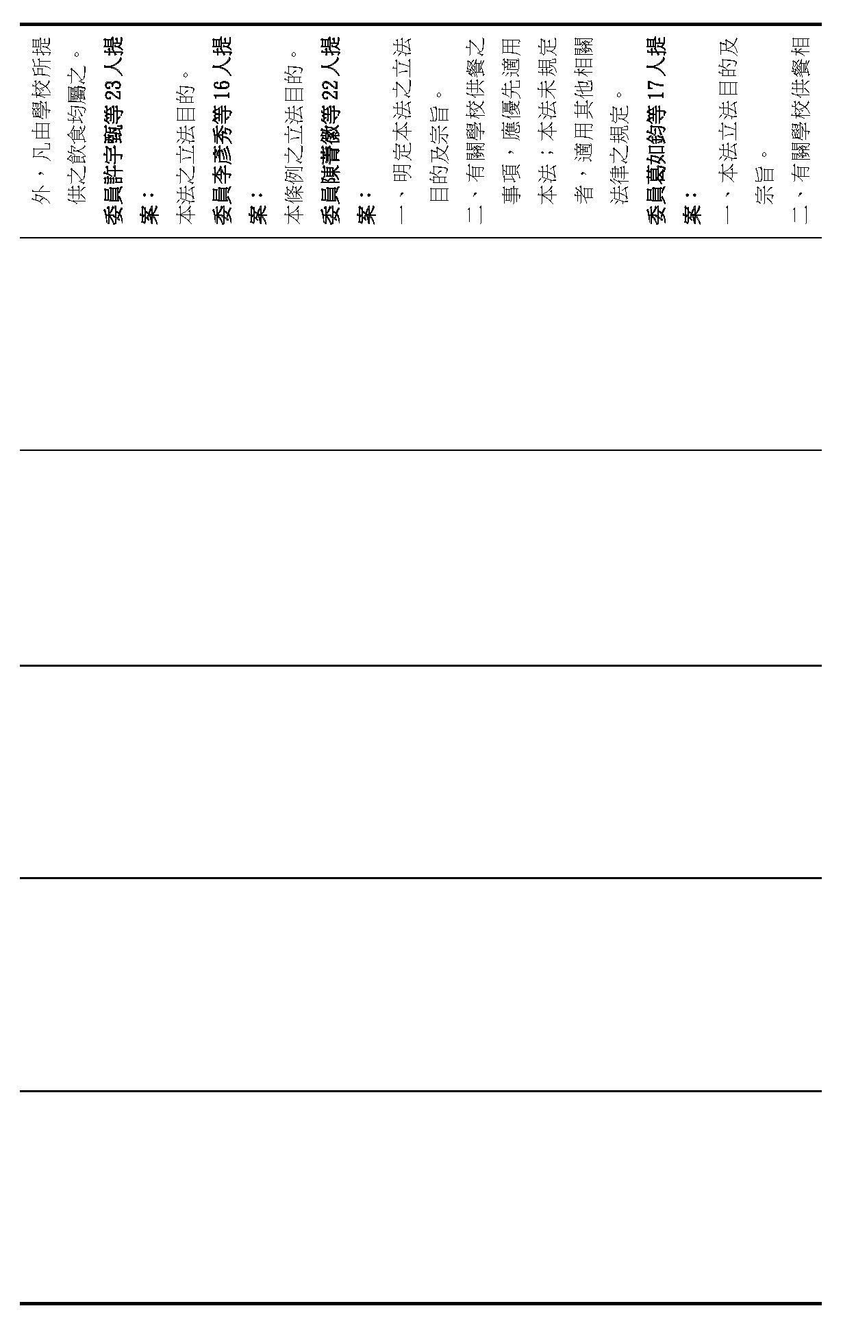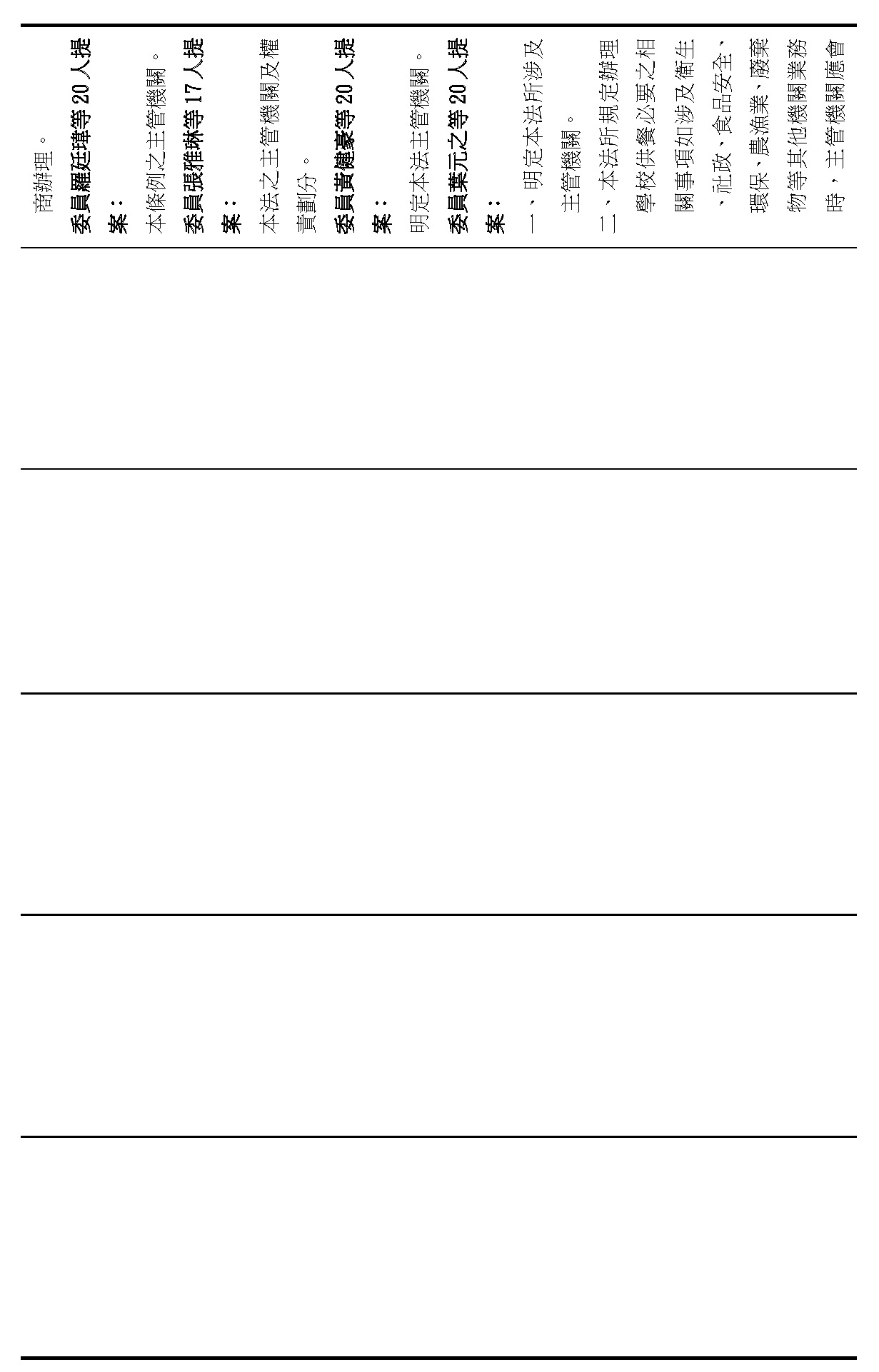 (二)委員馬文君等17人擬具「學校供餐法草案」案。