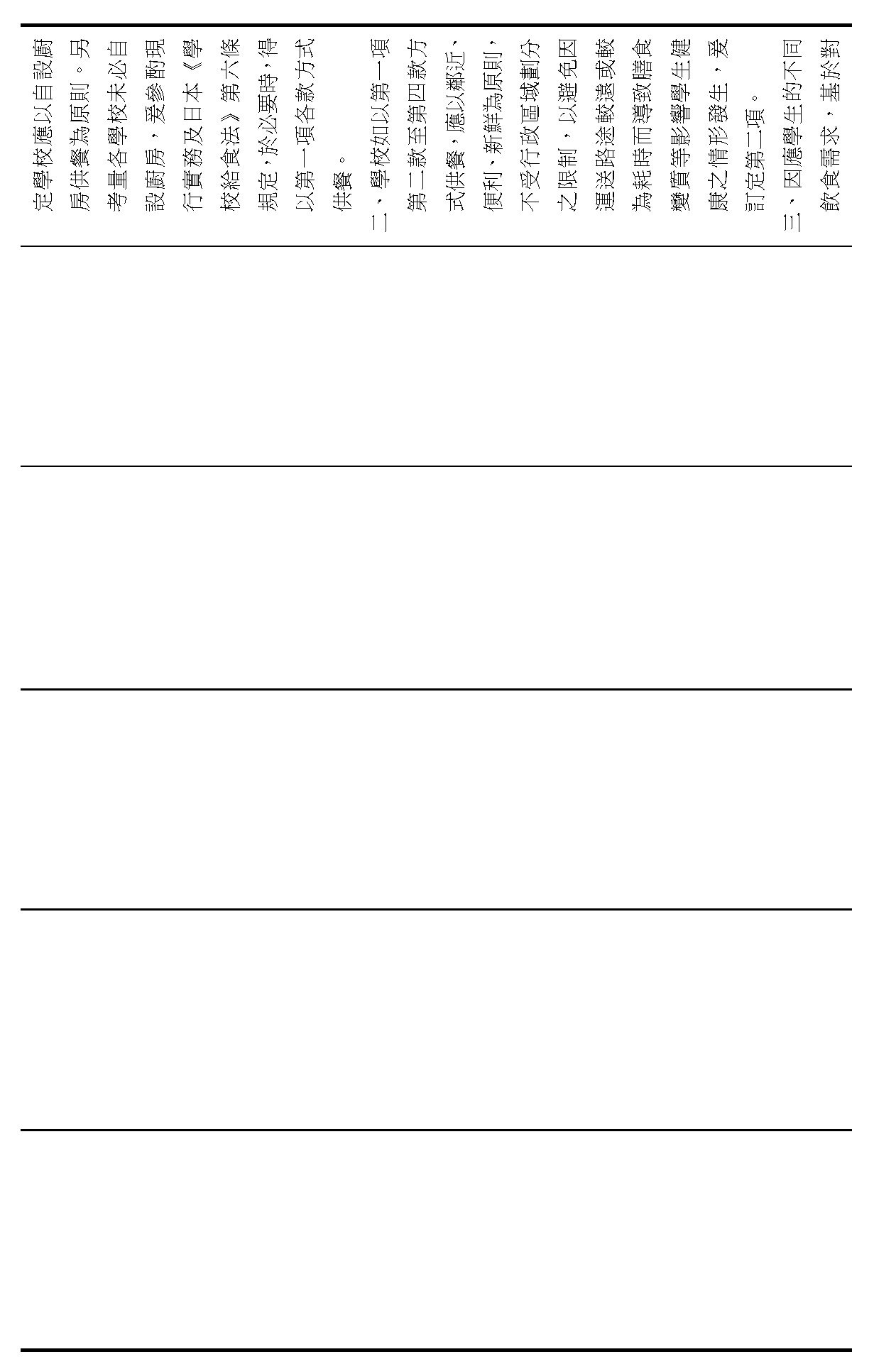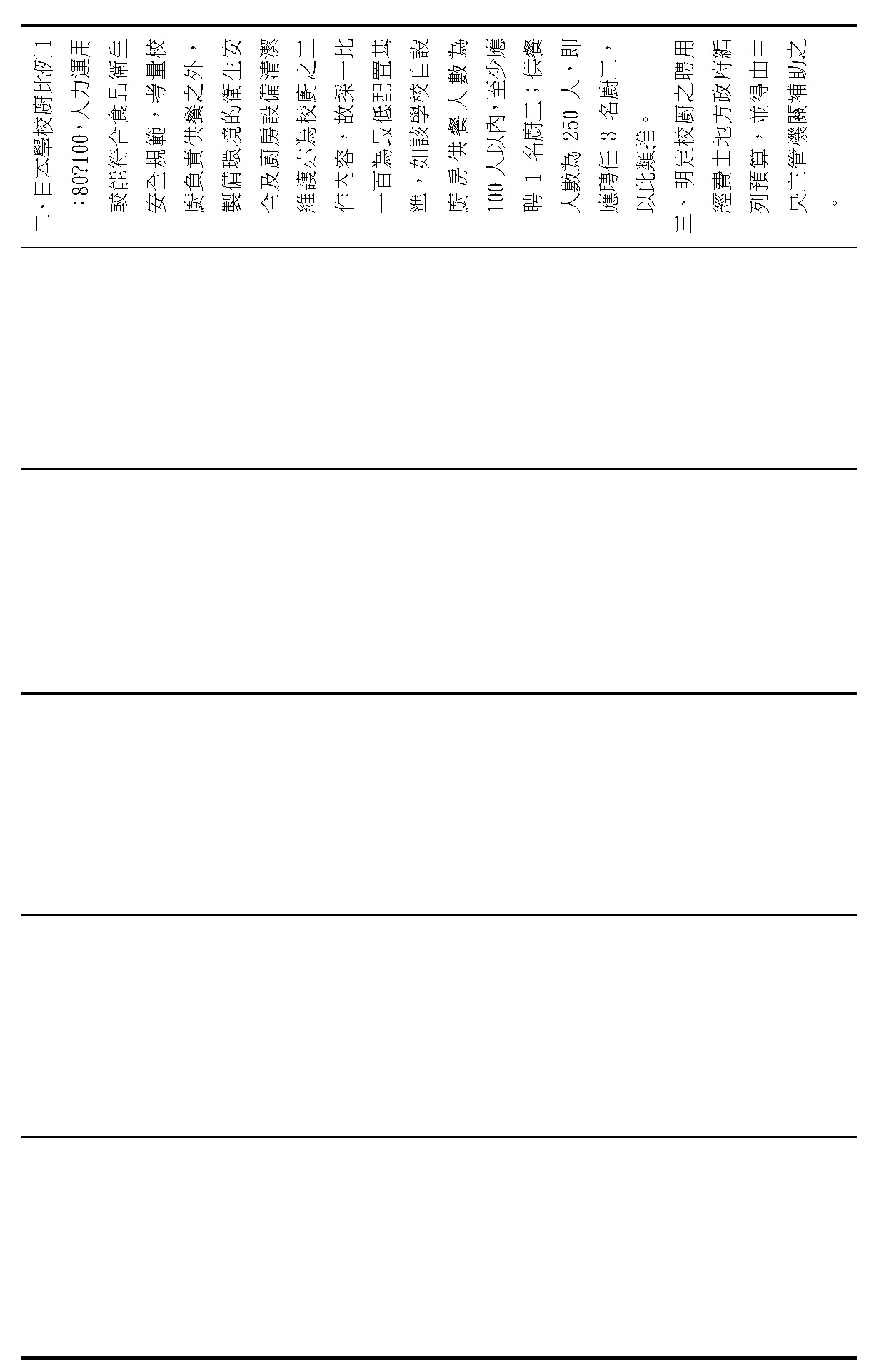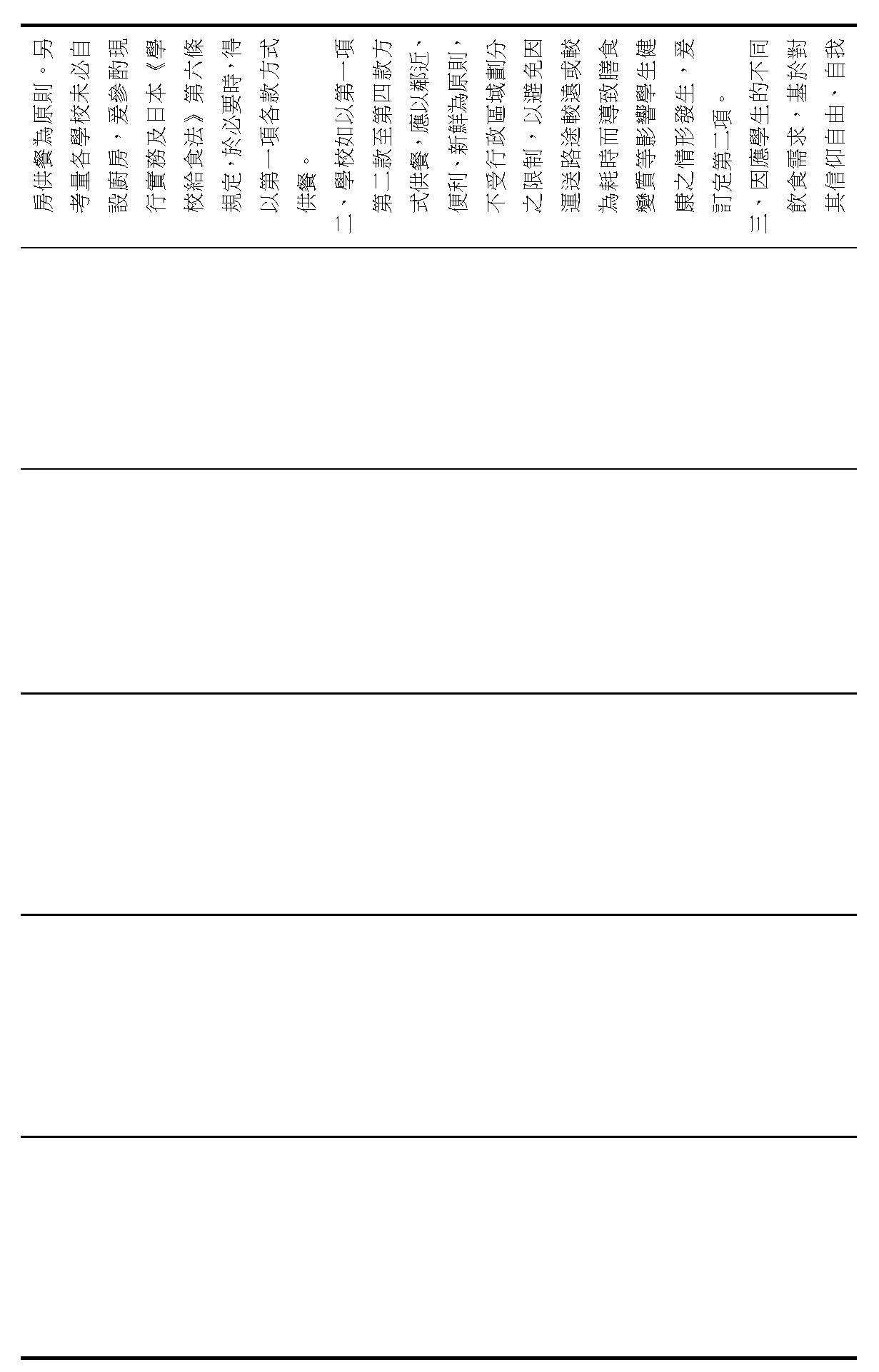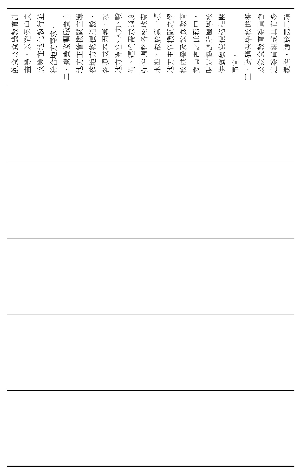 學校飲食需要針對不同的地區及學校教育的狀況來訂定及考量,本次的午餐專法有很多地方需要中央教育部跟地方討論的事項,目前並沒有很完整、充分地討論,所以希望可以讓教育部跟地方政府有完全溝通、完善溝通的時間跟機會,取得了共識之後,我們再來討論。以上,謝謝。