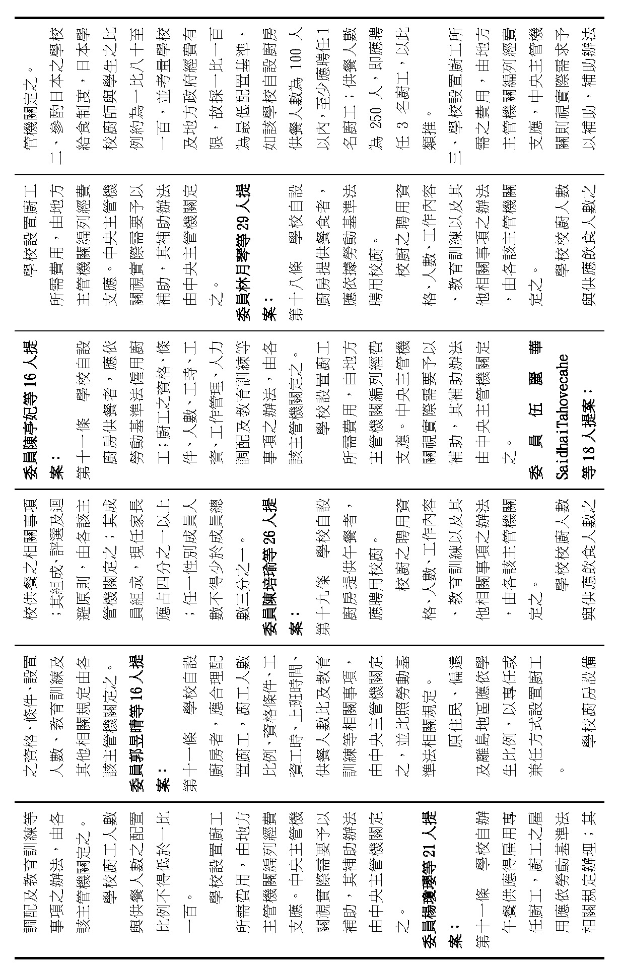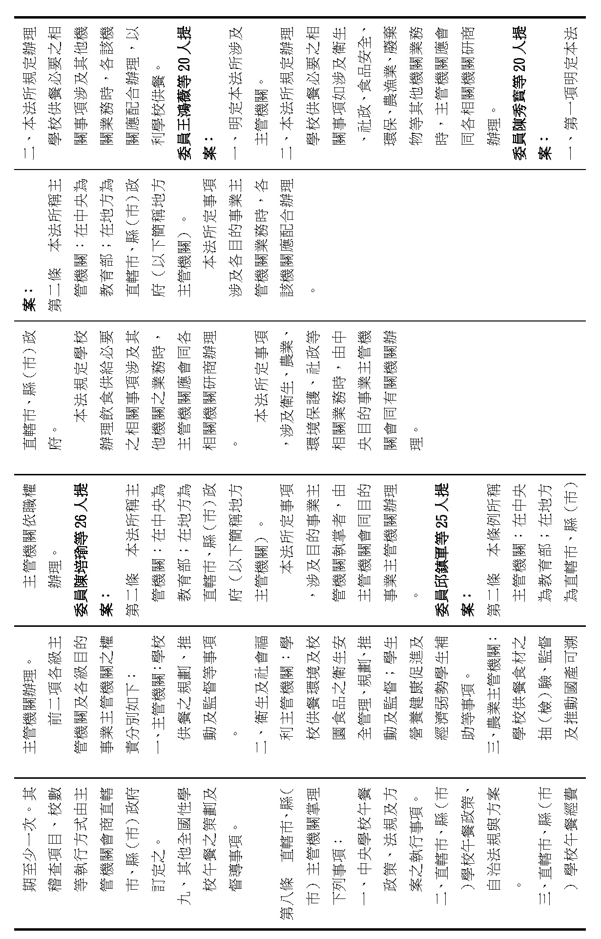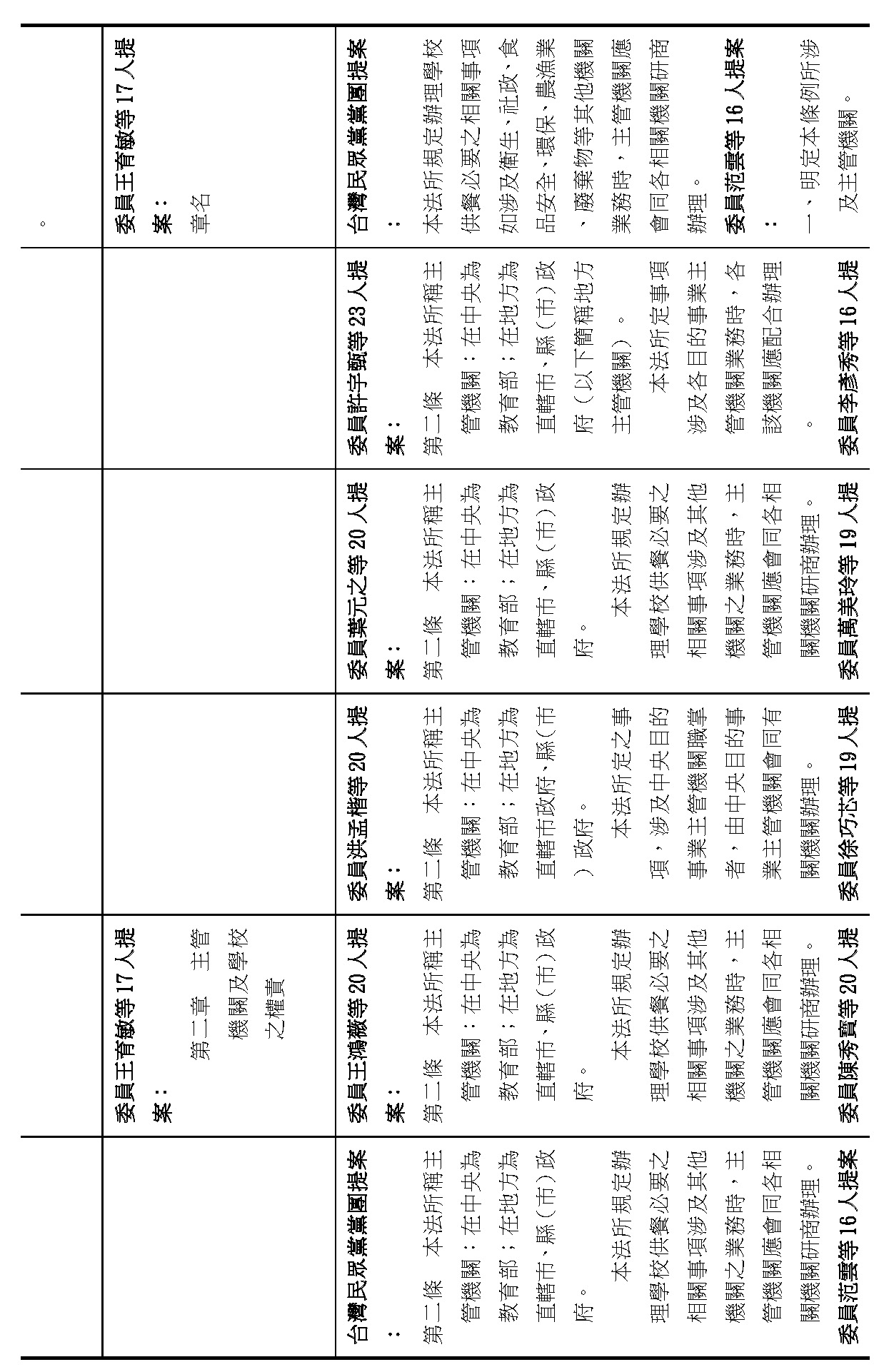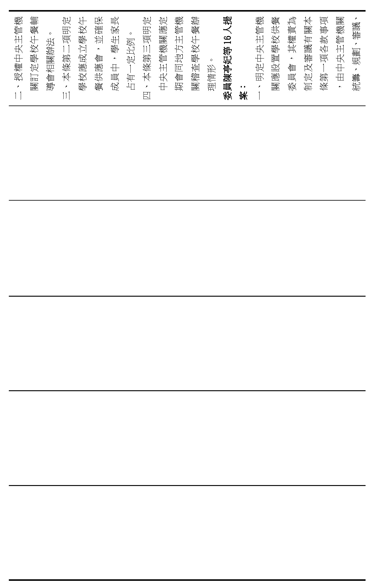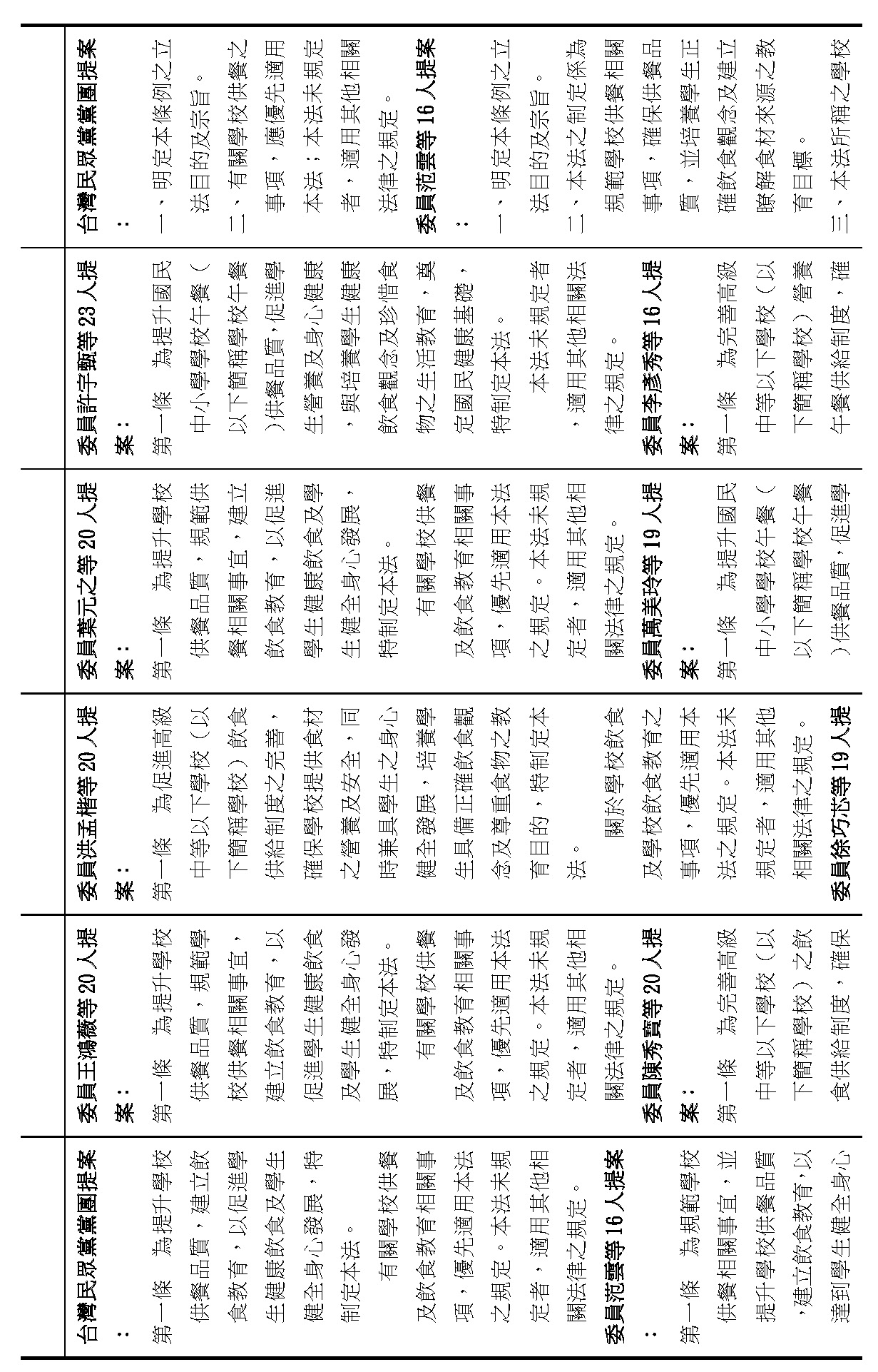 (一)委員范雲等16人擬具「學校供餐法草案」案。