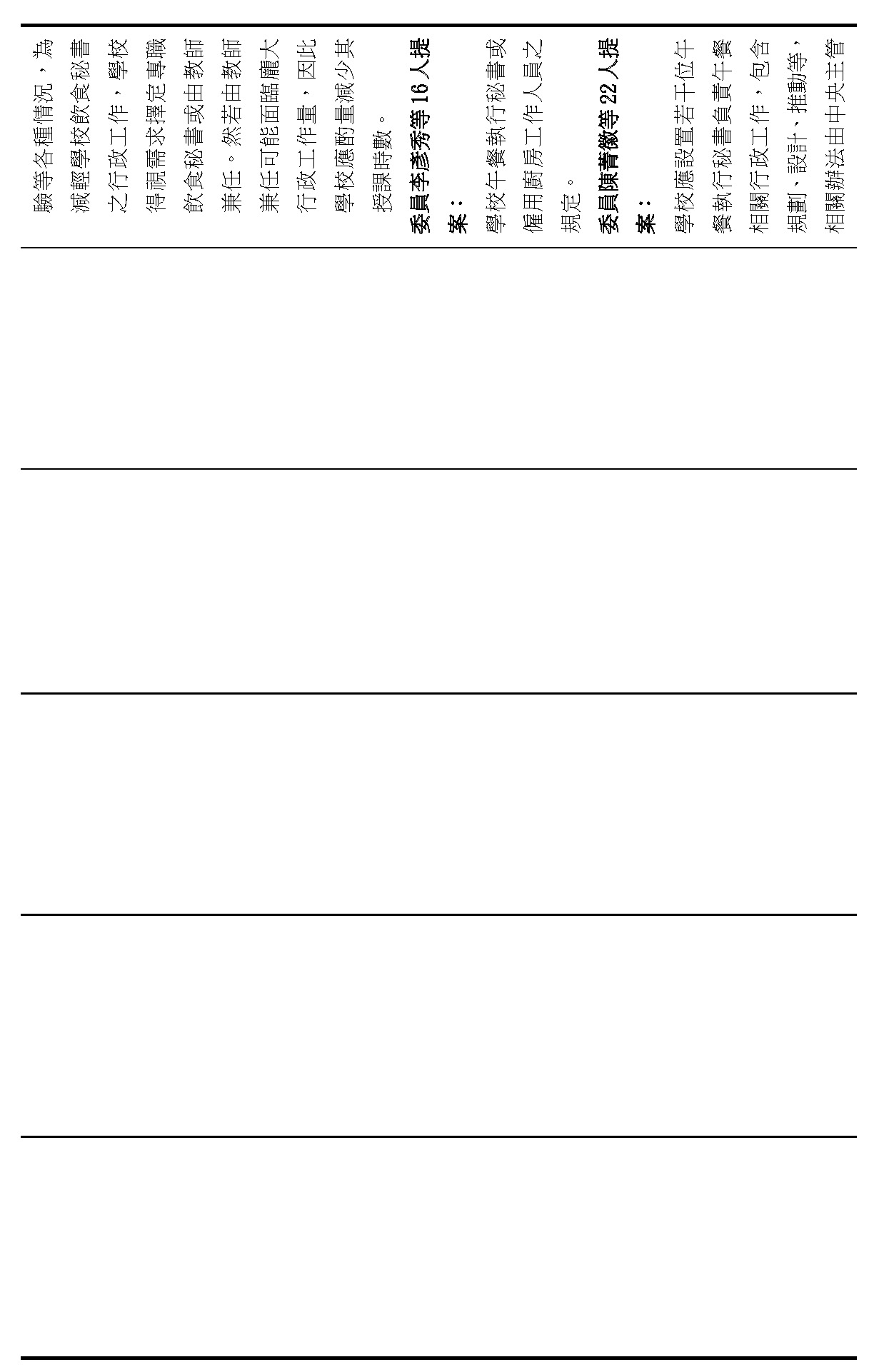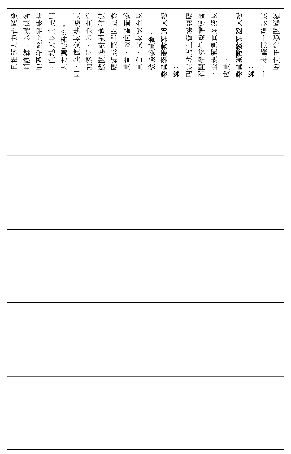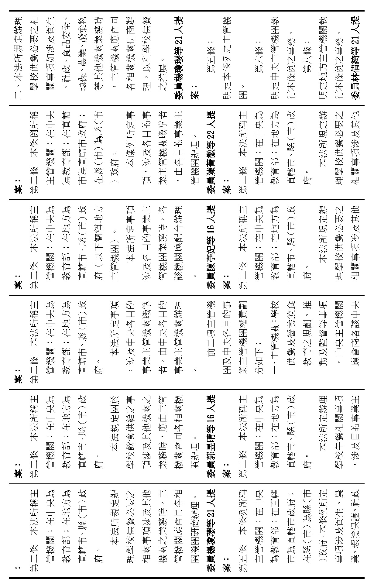 (五)委員陳菁徽等22人擬具「學校營養午餐法草案」案。