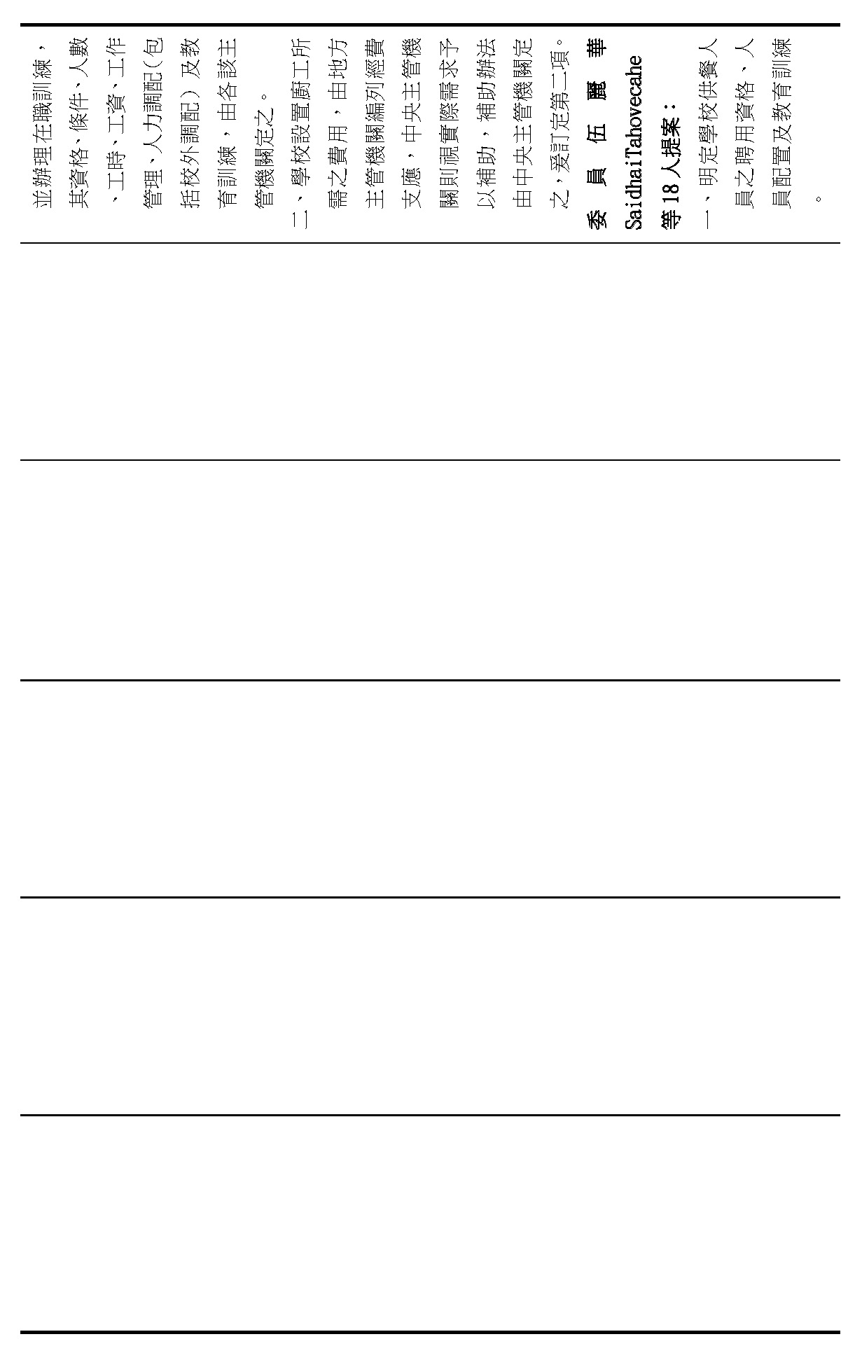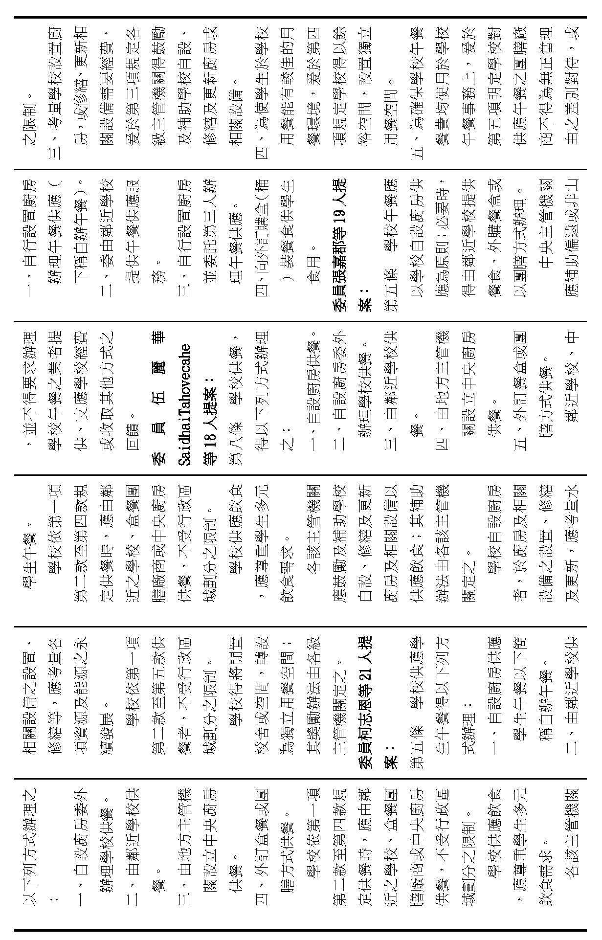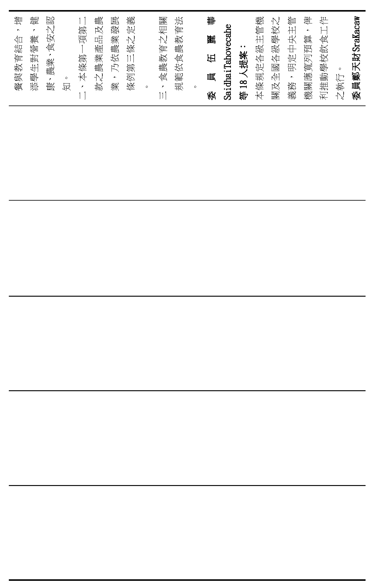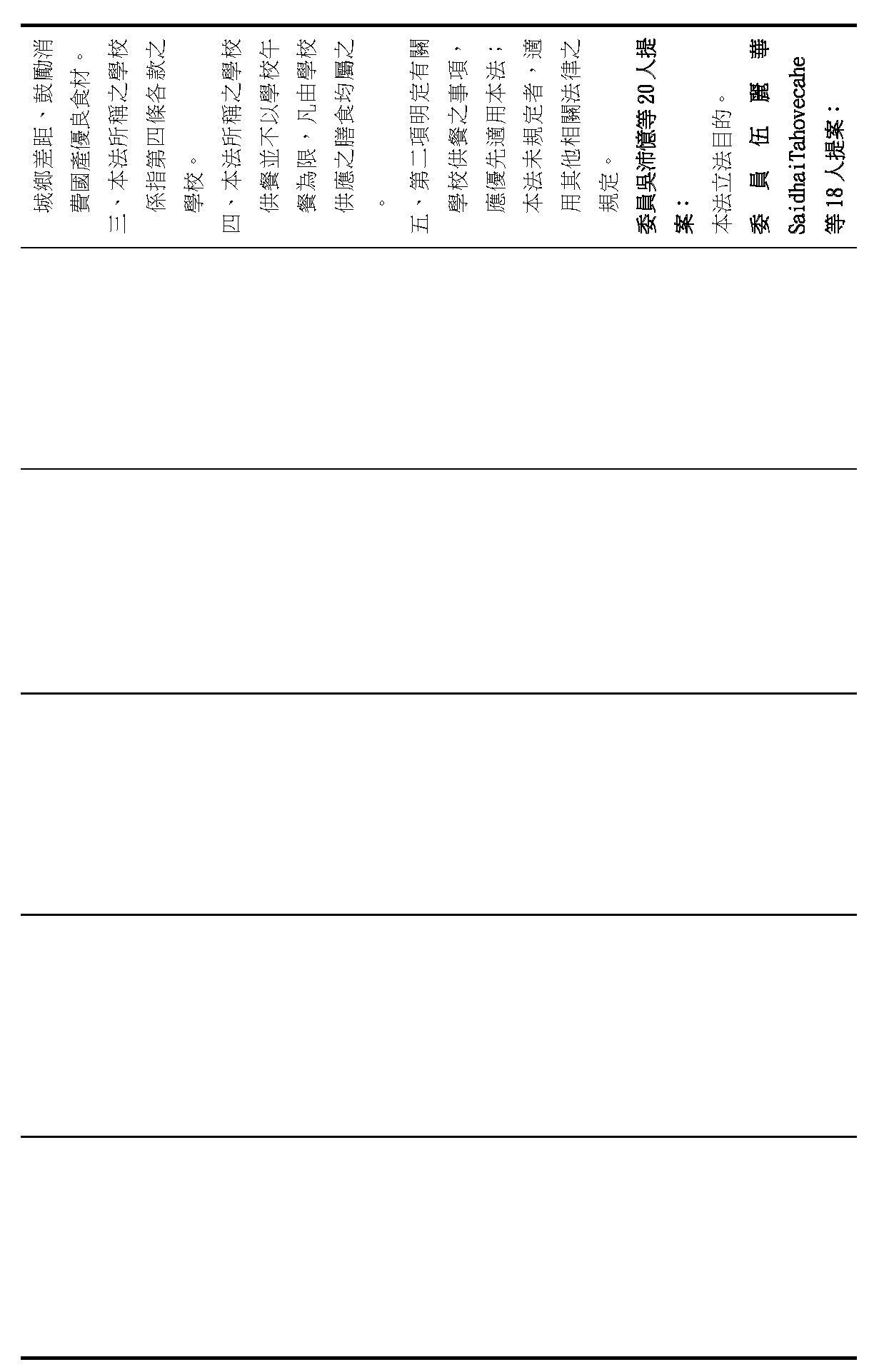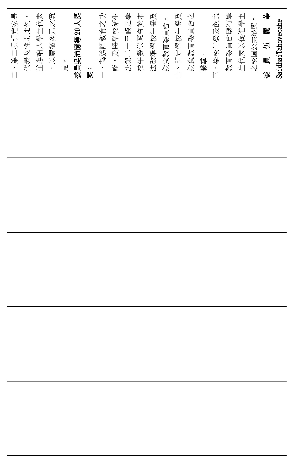 (十)委員伍麗華Saidhai Tahovecahe等18人擬具「學校供餐及飲食教育條例草案」案。