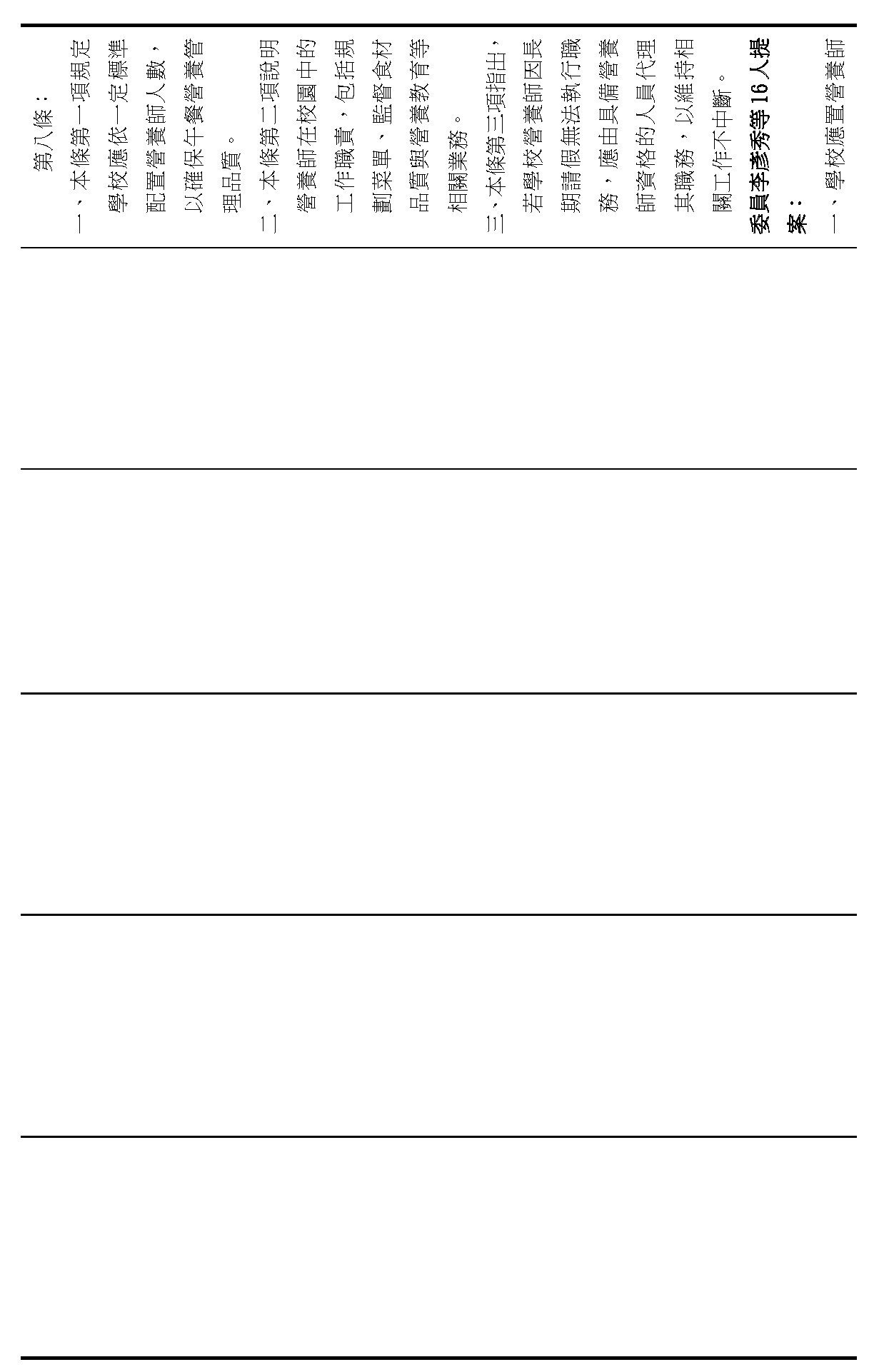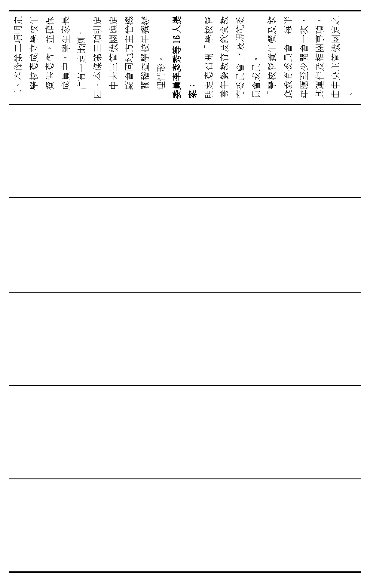 (八)委員李彥秀等16人擬具「學校營養午餐及飲食教育條例草案」案。