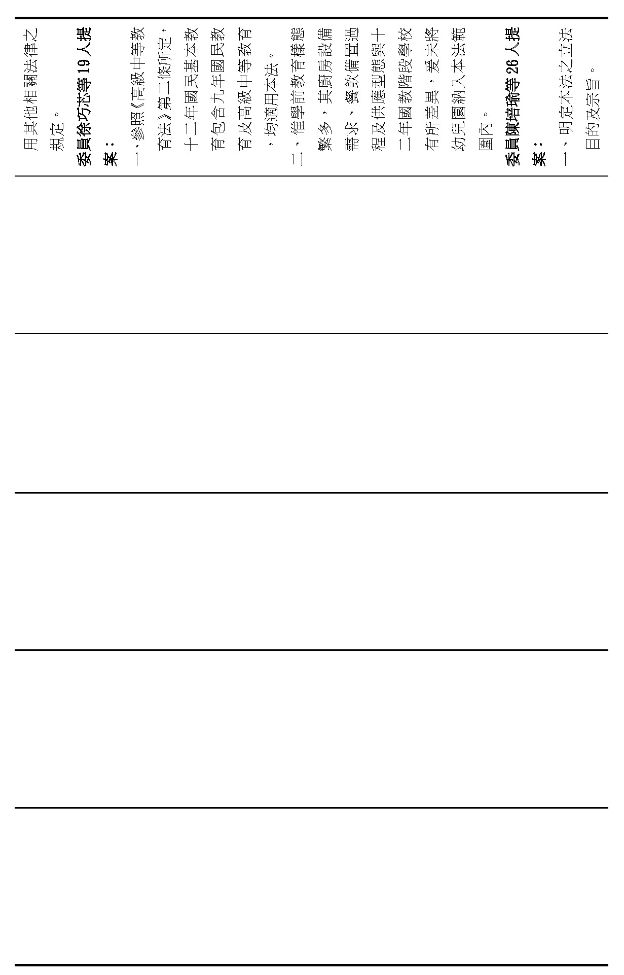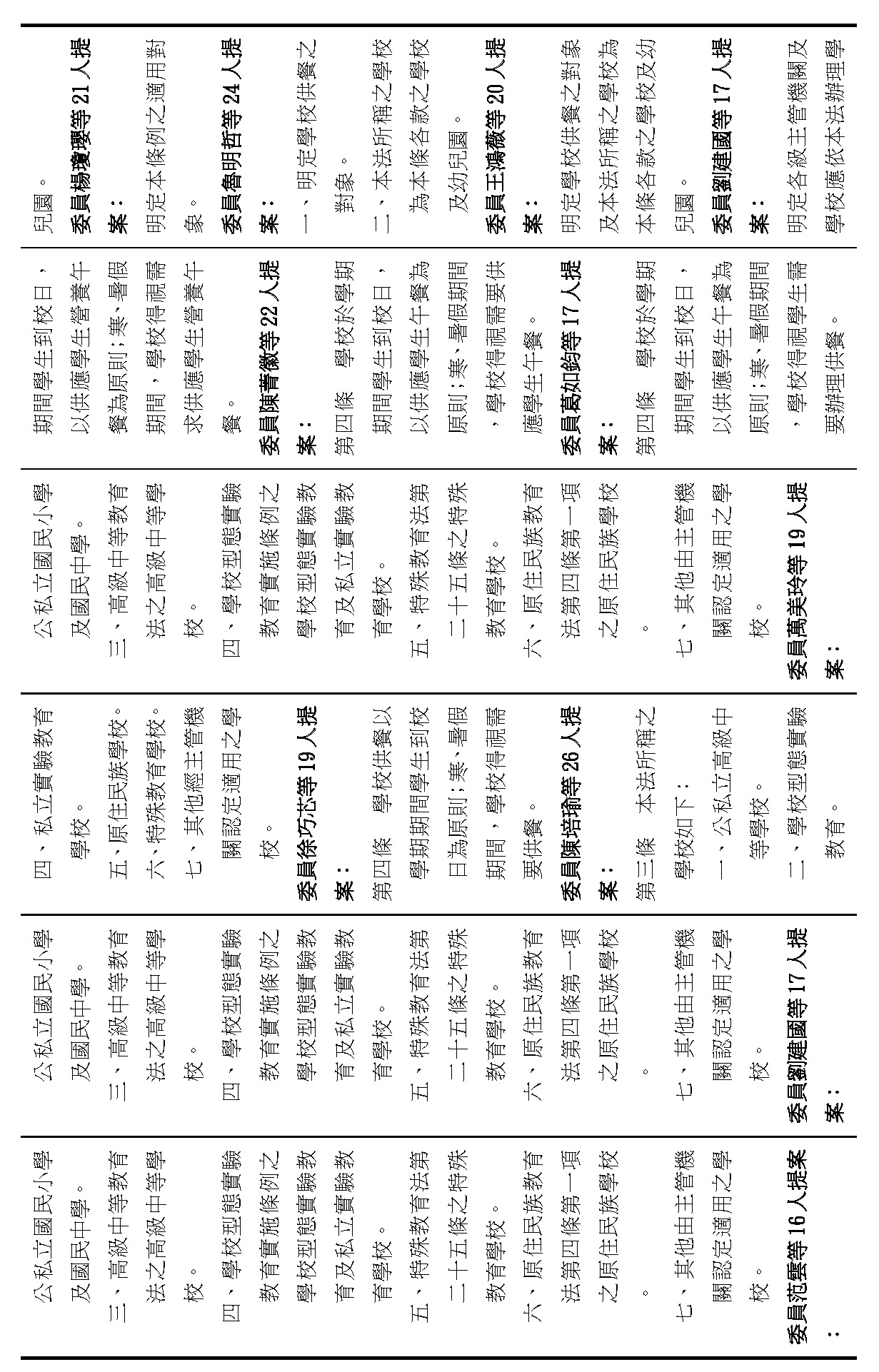 (十二)委員柯志恩等21人擬具「學校午餐及飲食教育條例草案」案。