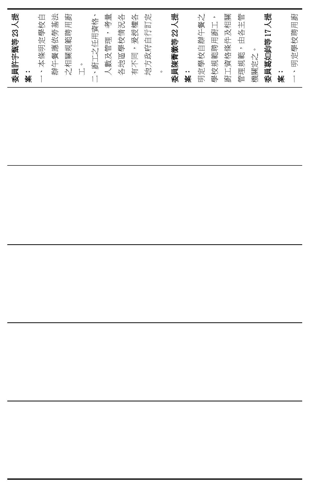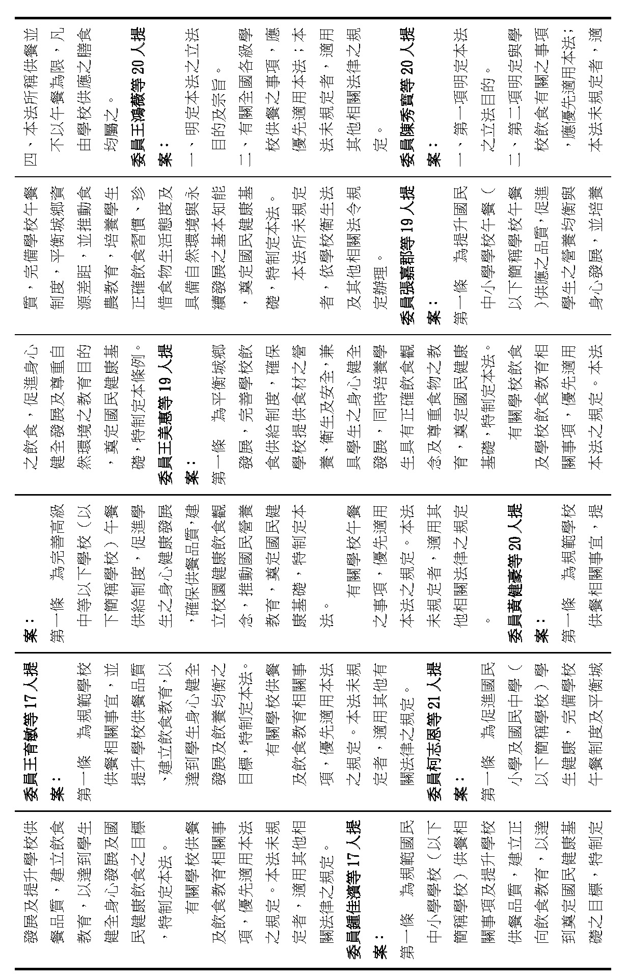 (四)委員王育敏等17人擬具「學校供餐法草案」案。