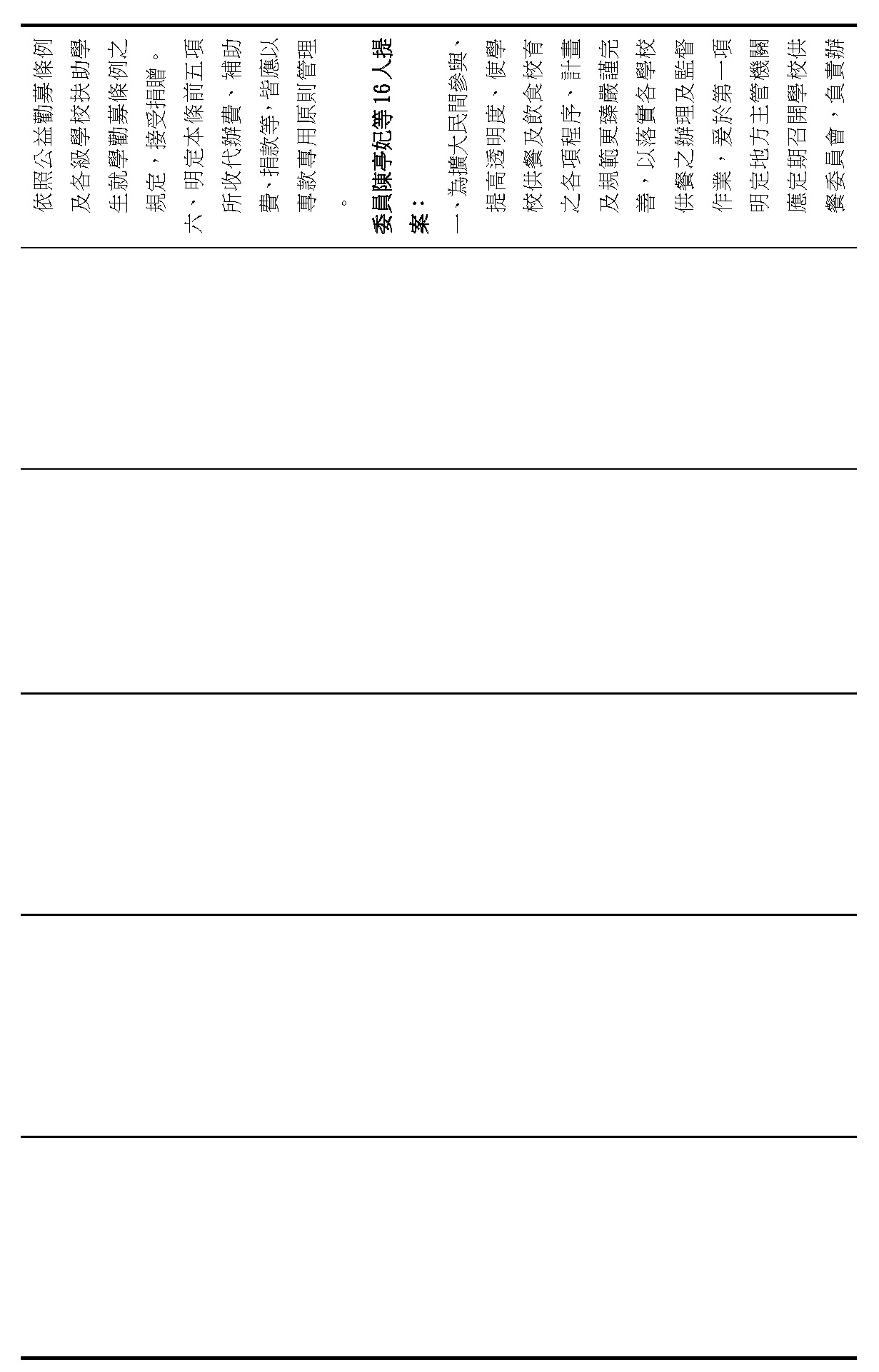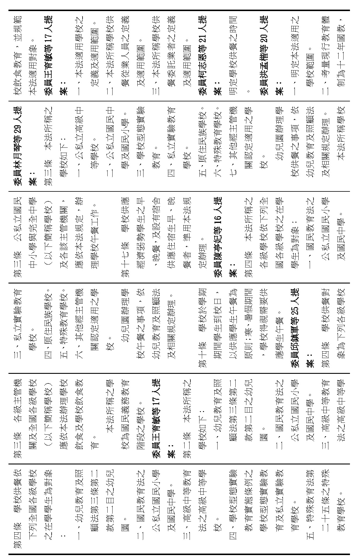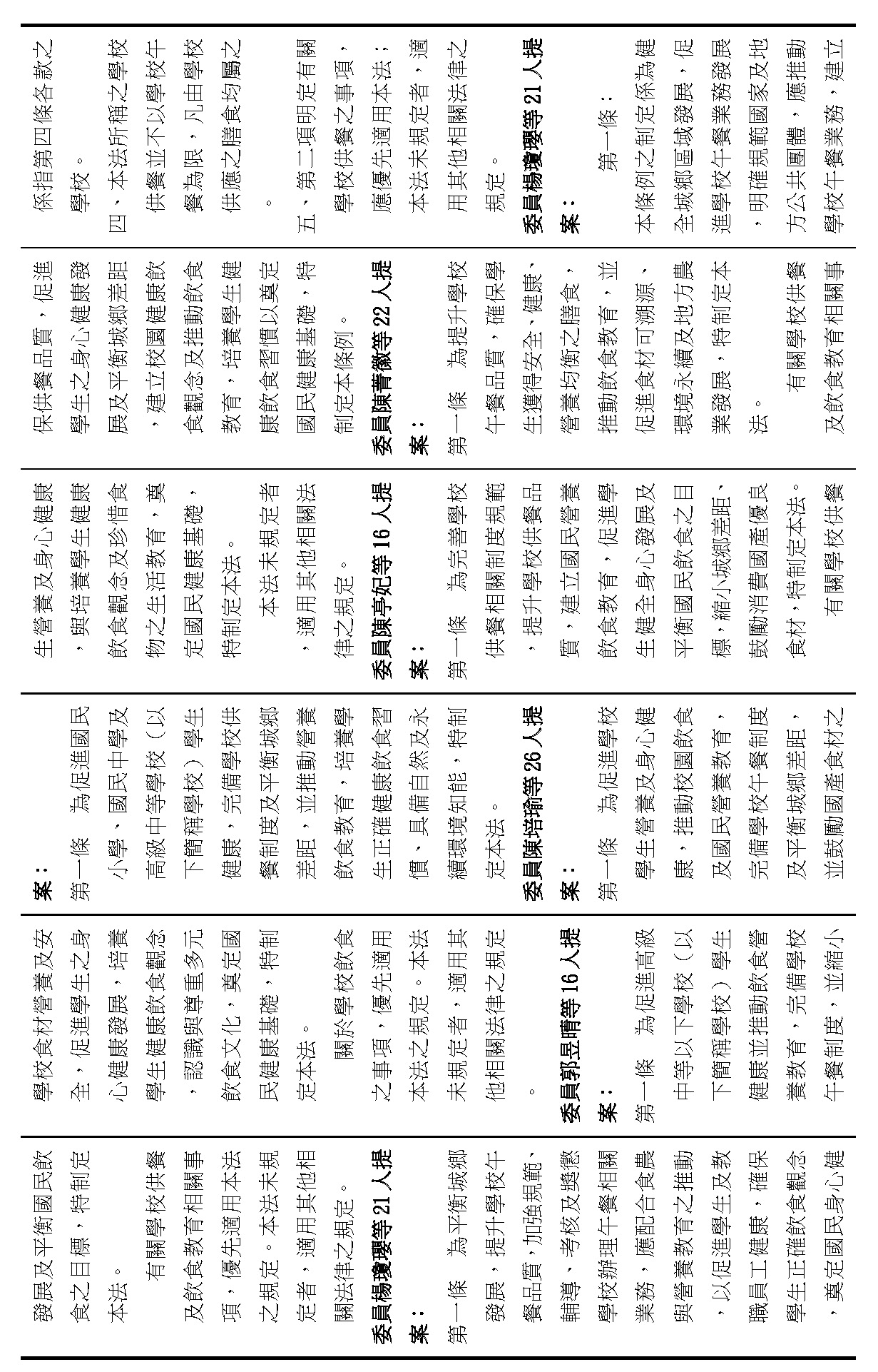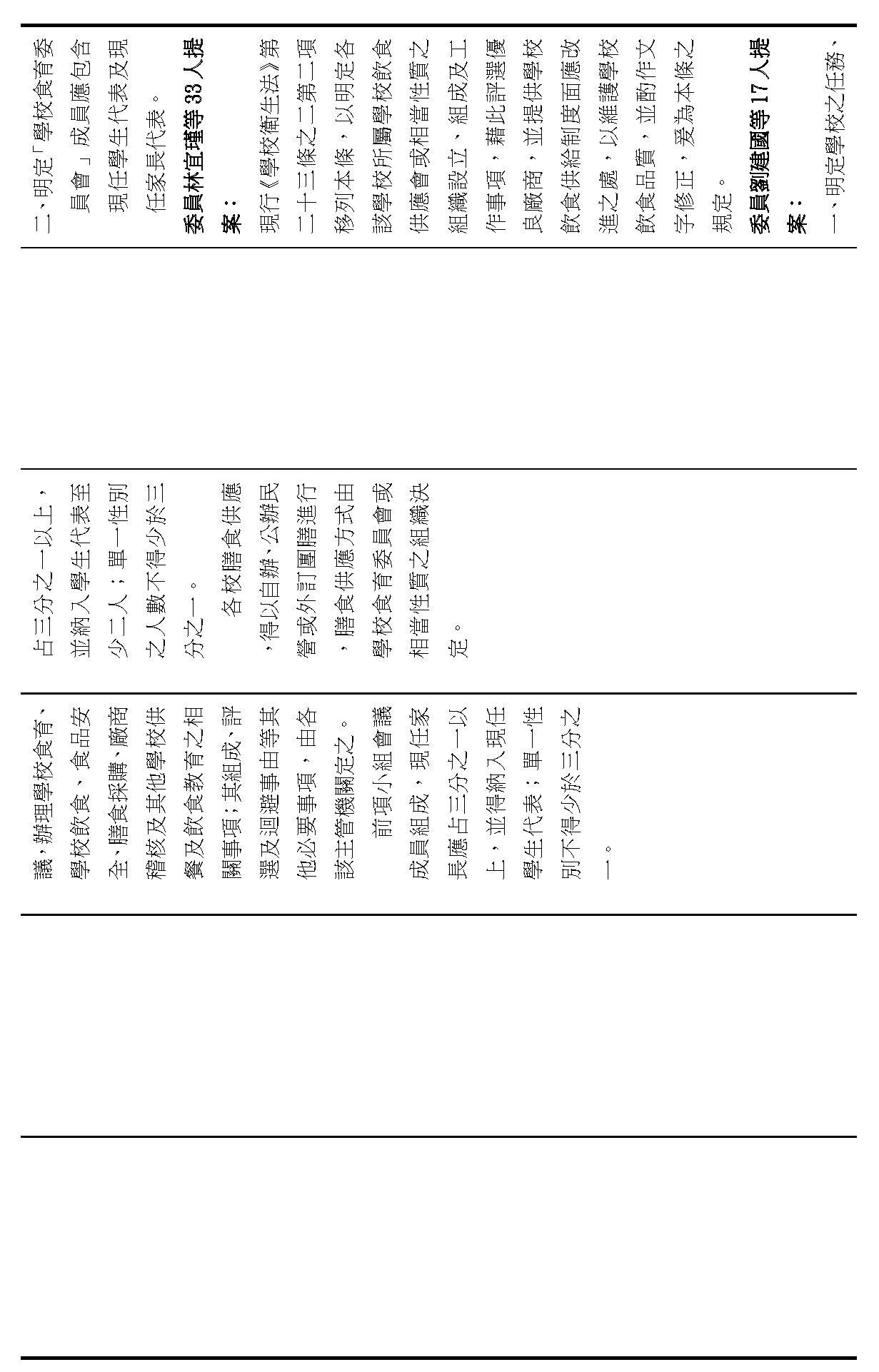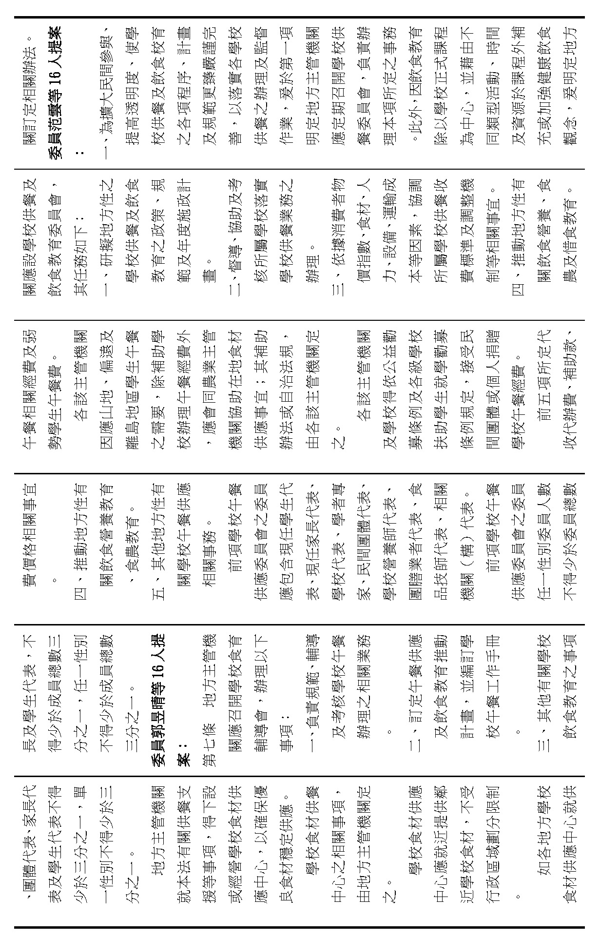 (三)委員陳亭妃等16人擬具「學校飲食法草案」案。