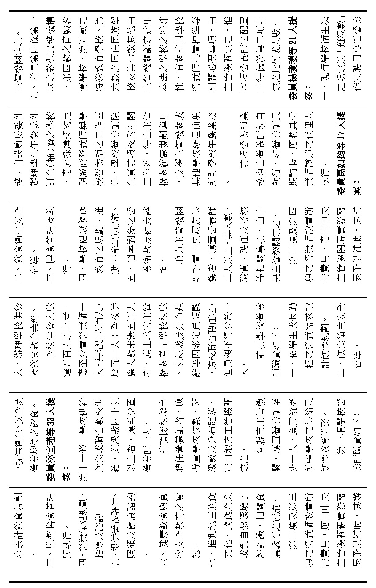 (十八)委員林宜瑾等33人擬具「學校飲食法草案」案。