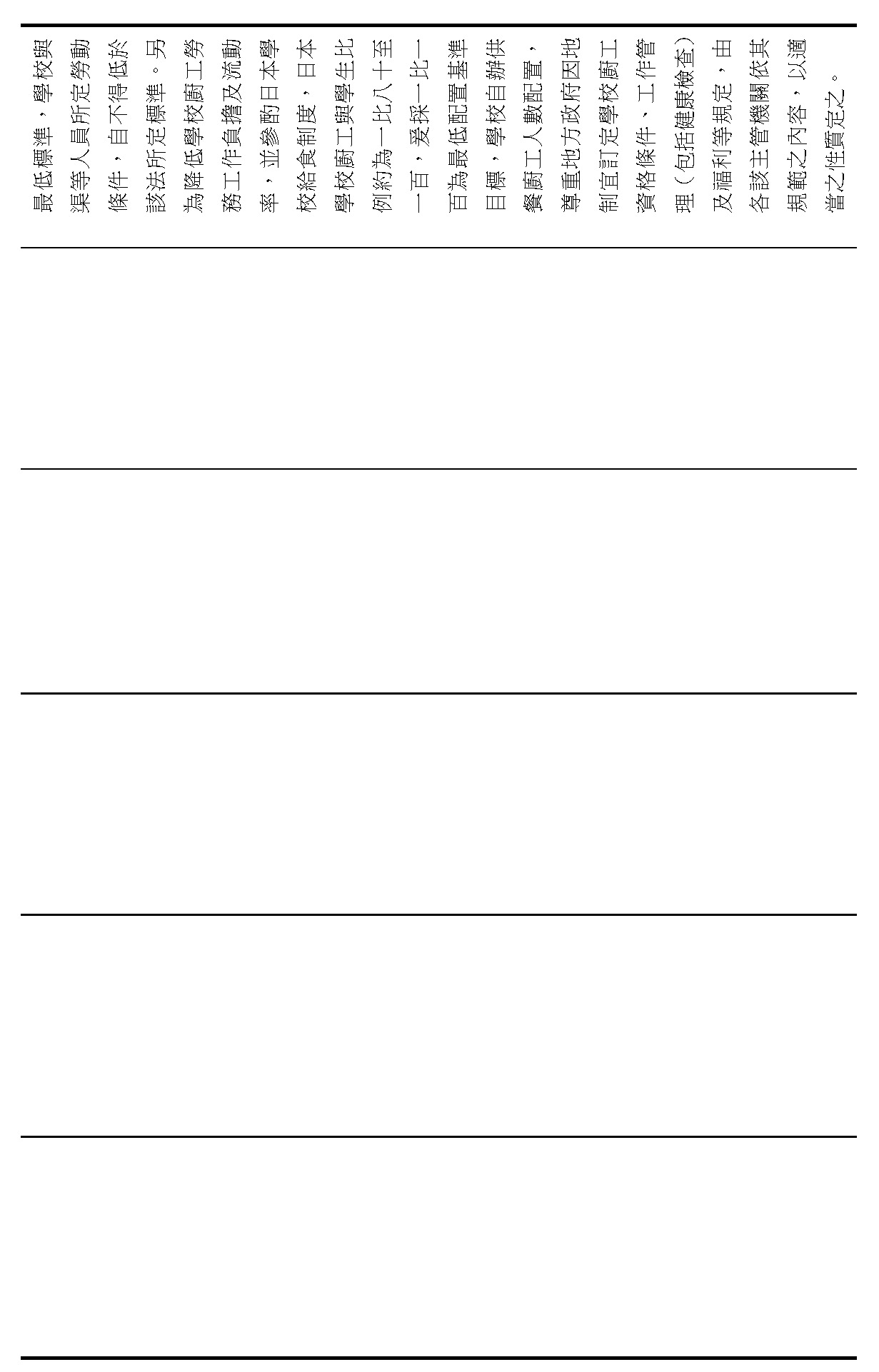 怎麼說呢?例如日本是在30年前就已經立法,所以他們對於國內食材的重視,還有廚工、營養師、學校教師、家長各自的分工,其實在當時的時空背景跟現在臺灣的困境截然不同,因此我也希望在後續的逐條討論當中,我們不要把日本跟韓國的東西拿來全本照抄。尤其臺灣現在跟其他亞洲國家一樣都面臨人工不足的困境,所以如果人工不足的問題反映在團膳料理孩子們營養午餐的現場,或者是反映在營養教育的現場,甚至反映在學校食農教育的現場,我們都會發現不同的人力困境,這是第一個。