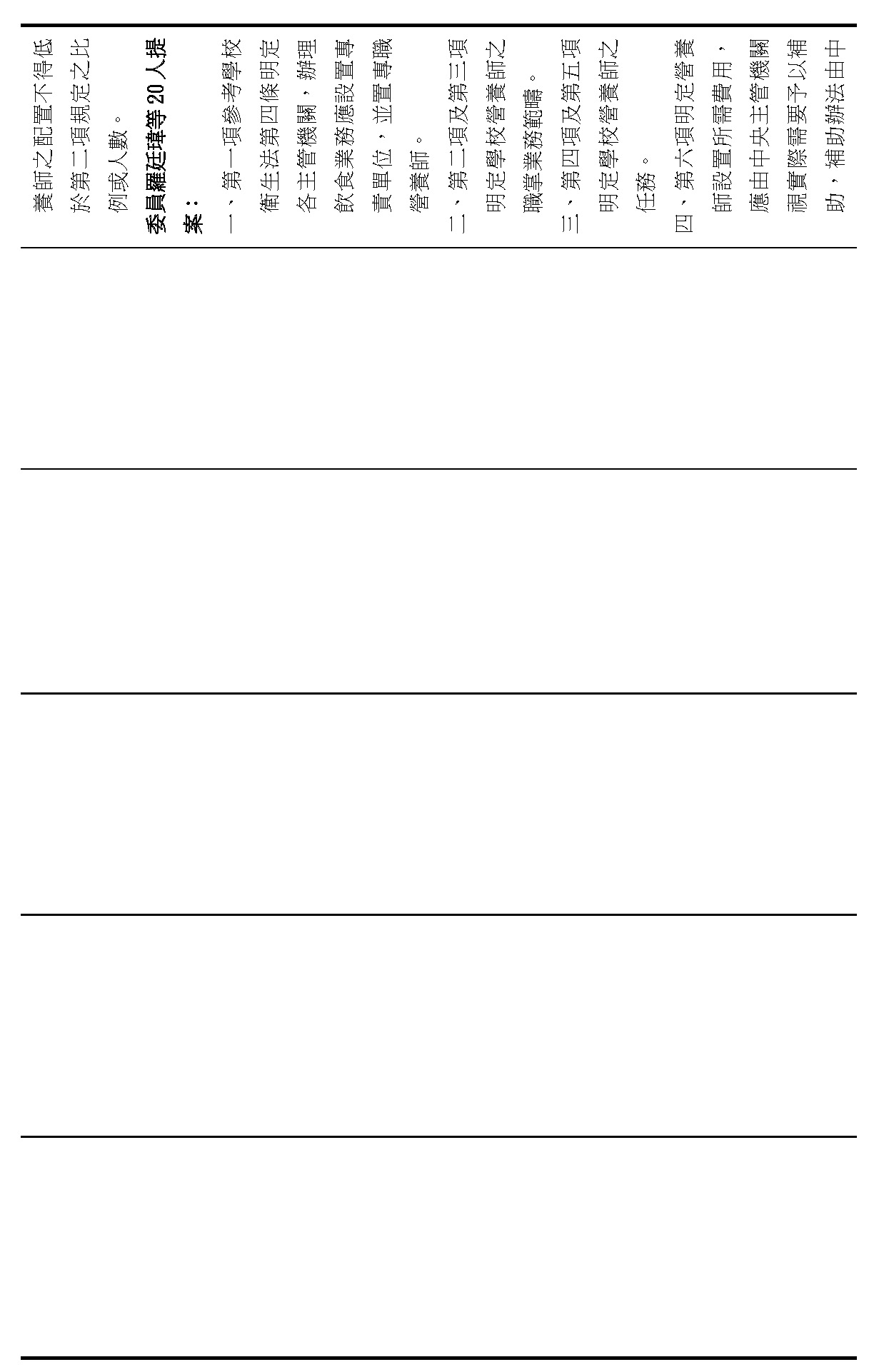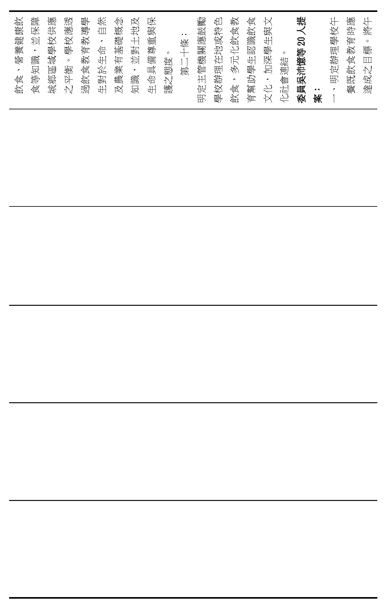 (二十二)委員羅廷瑋等20人擬具「高級中等以下學校午餐及飲食教育條例草案」案。