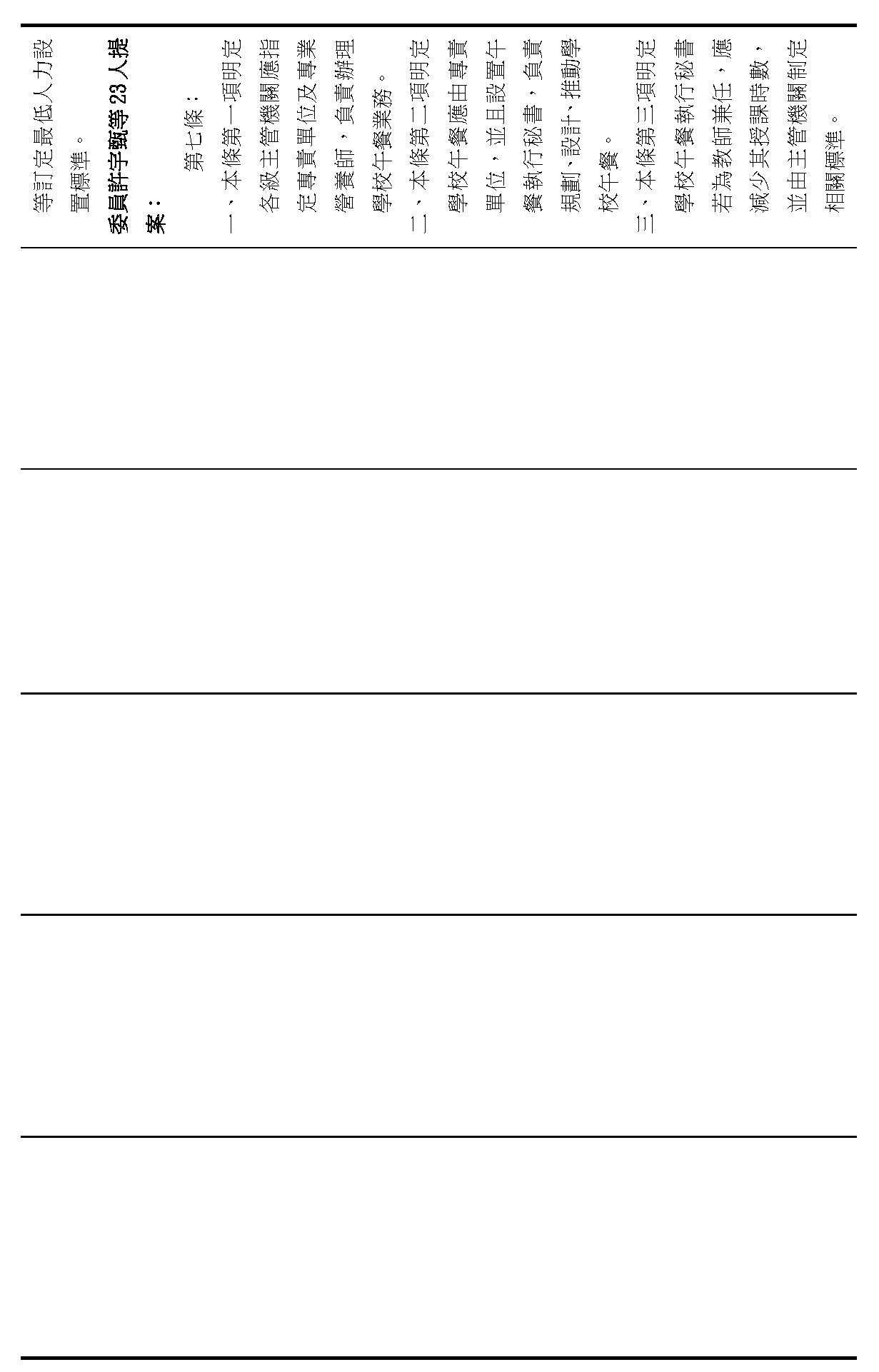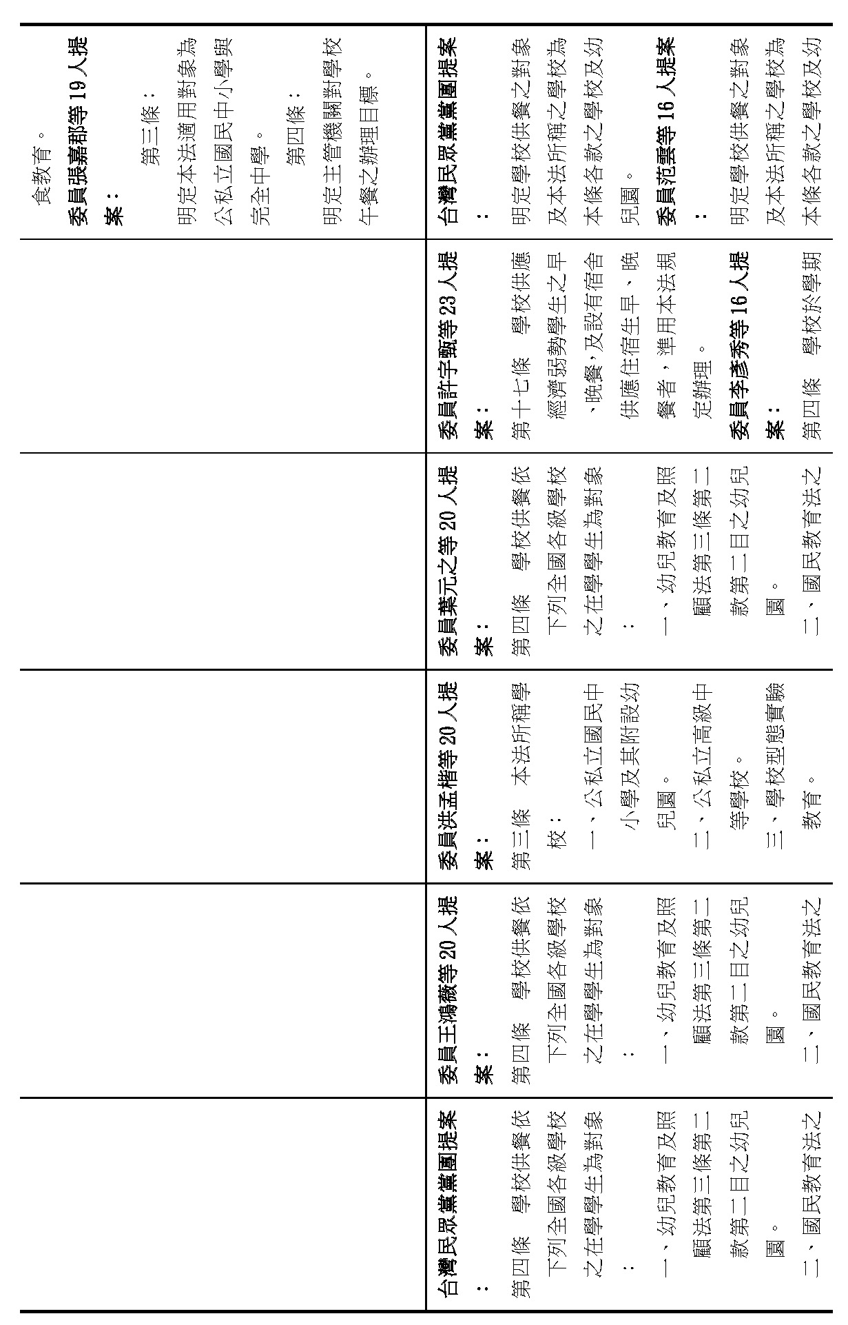 (六)委員許宇甄等23人擬具「學校營養午餐法草案」案。
