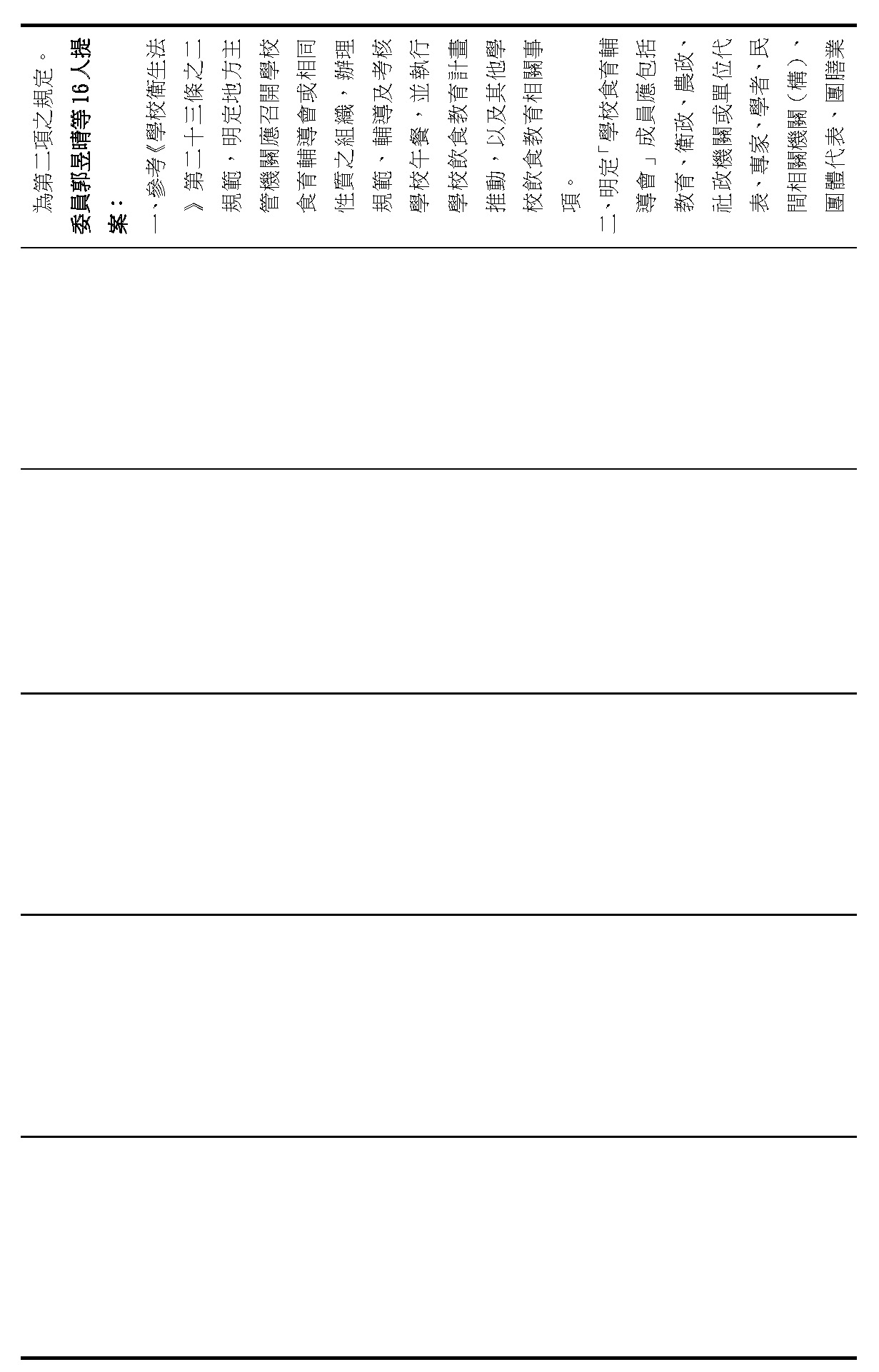 (十)委員郭昱晴等16人擬具「學校午餐及飲食教育法草案」案。