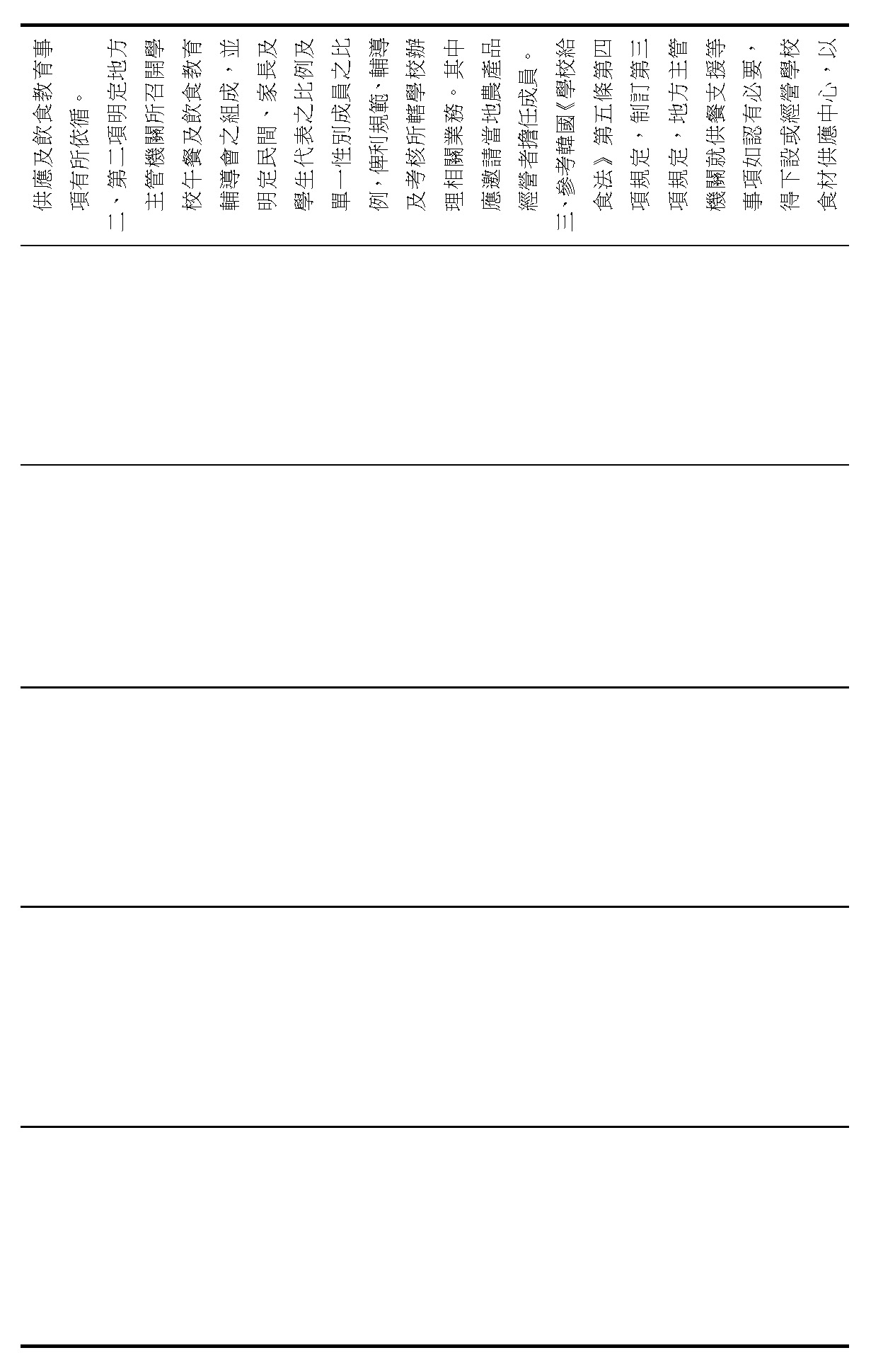 我們辦公室從2023年遞補進入立法院之後,我們辦公室最關心的議題其實就是營養午餐法。剛剛有非常多委員提到,日本跟韓國都已經有立法了,可是我要拜託大家,我們在參考其他國家的立法例的時候,要把不同國家的社會環境跟民情背景一律考慮進去,不能認為其他國家有立法或是其他國家的立法樣態是怎麼做,我們就全盤照抄,這個會有問題。