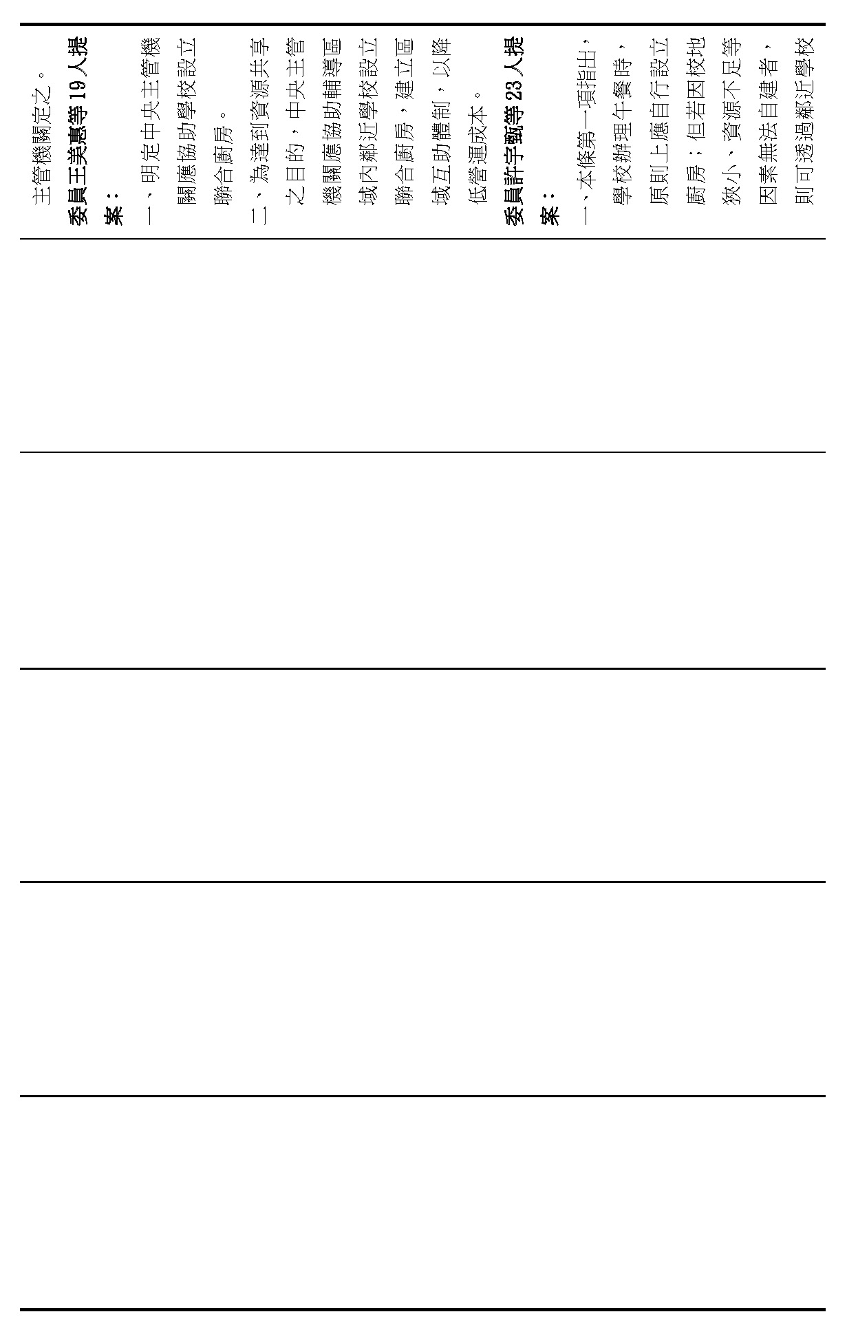 (二十三)委員萬美玲等19人擬具「學校營養午餐法草案」案。