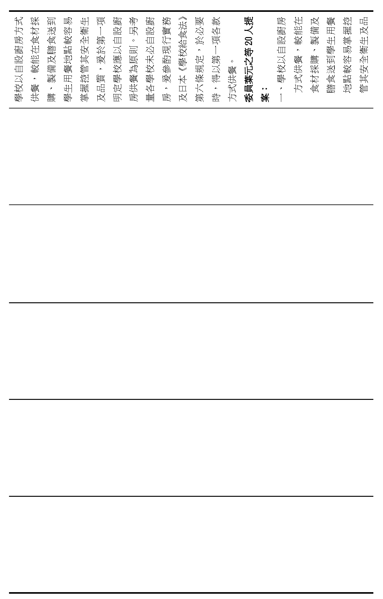 制定營養午餐法如果是各政黨的共識的話,我們非常期待今天就有機會,把這個版本大家有共識儘速地送出去,經過後續朝野協商冷凍期的時間,哪些地方需要再調整,我們可以去做微幅的調整,我覺得更重要的是,大家看在孩子吃的健康、營養,這才是更重要的。以上。