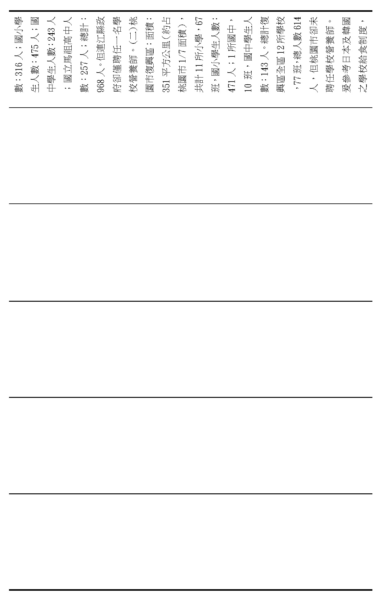 也要謝謝前行政院長蘇院長在位的時候,他提及協助偏鄉午餐的部分,所以我們有看到設置相關的廚房,或者是相關的食材登錄平臺,我們希望透過偏鄉食材的補助、相關運費、經費的補助,可以讓偏鄉的孩子們不要在營養午餐這件事情上有相對剝奪感。可是我們看到後續平臺的維運,或者是相關偏鄉經費的補助要如何讓中央跟地方分工,我認為也是後續我們在討論的時候非常重要的議題。