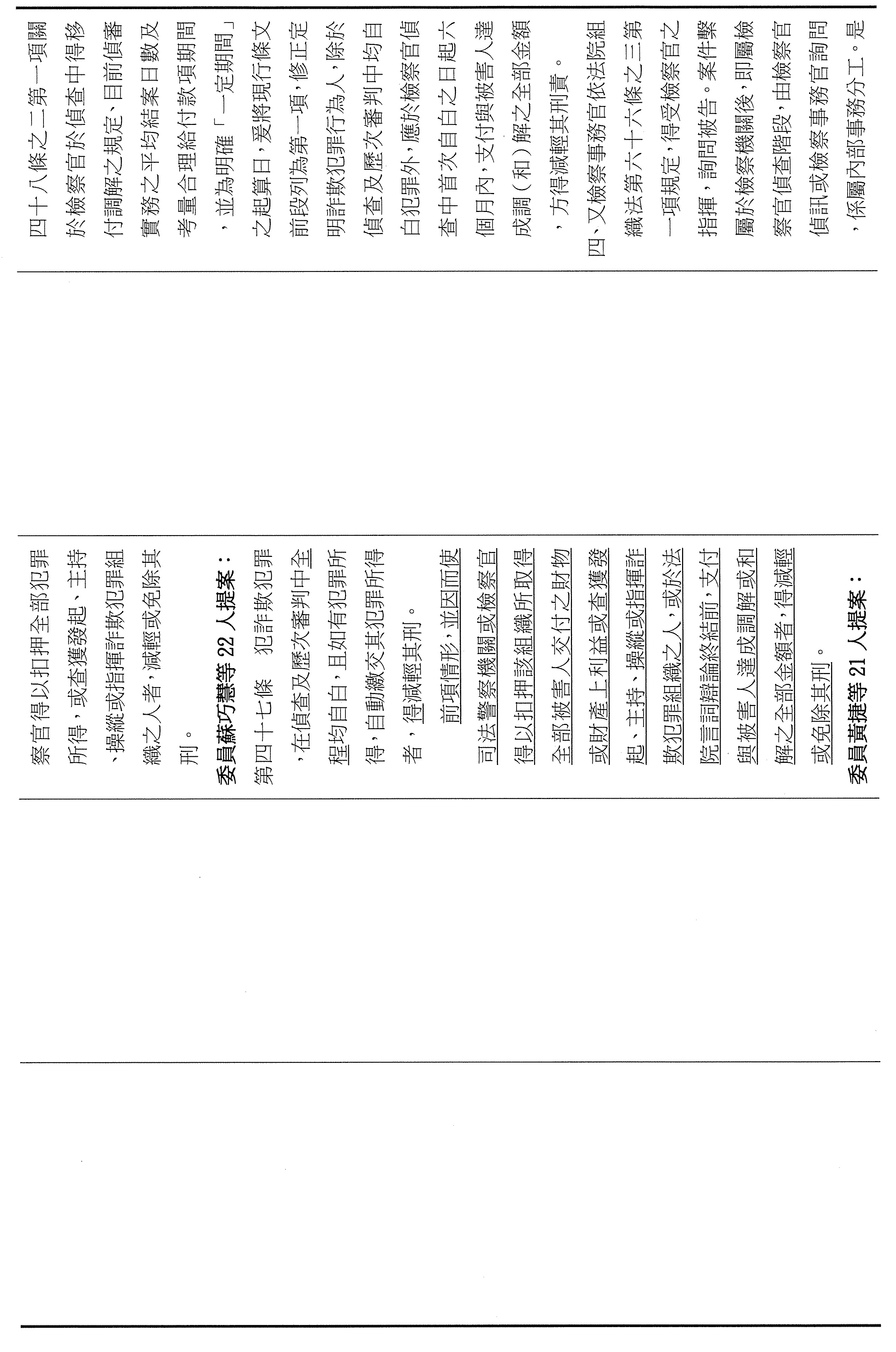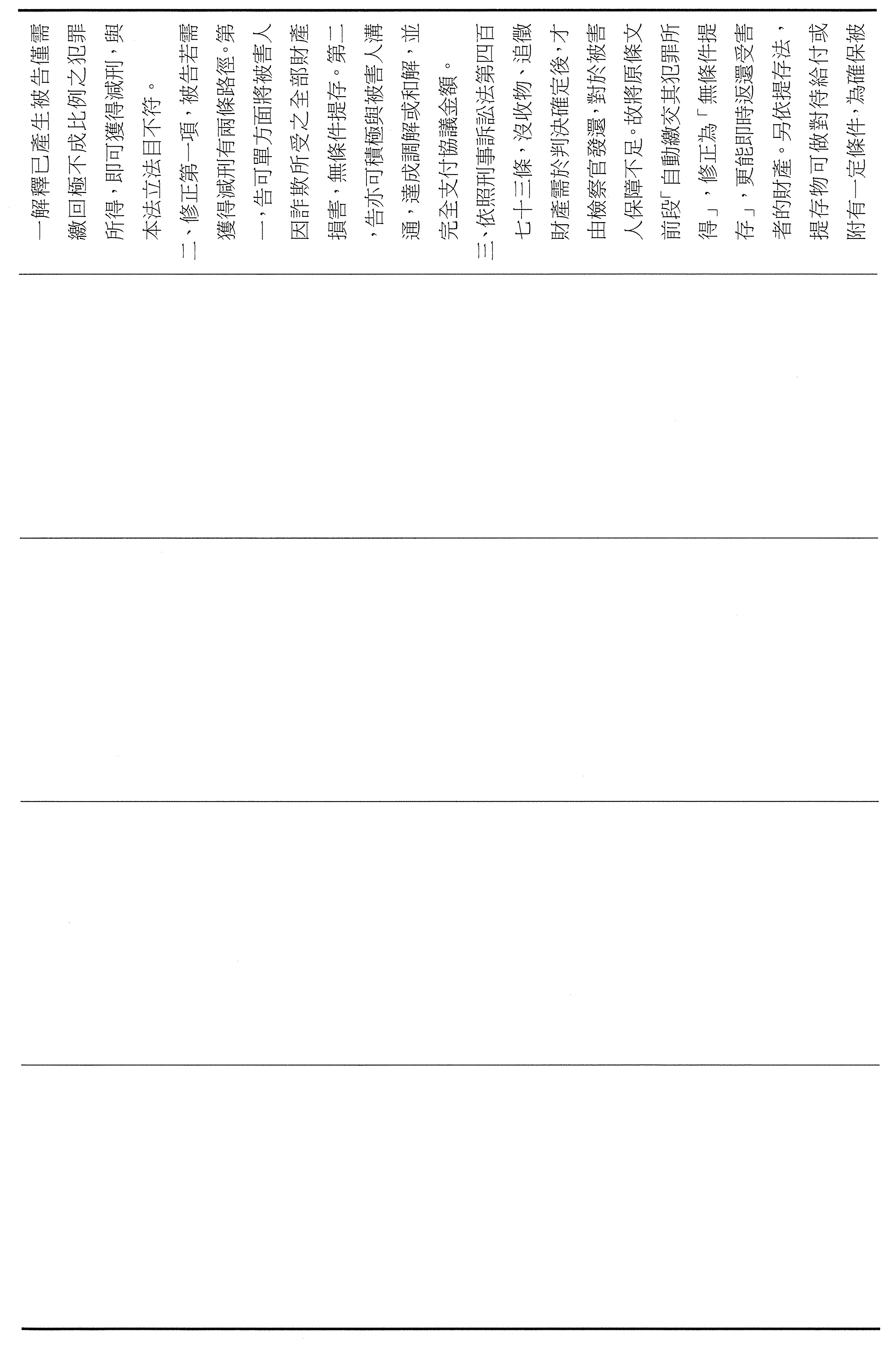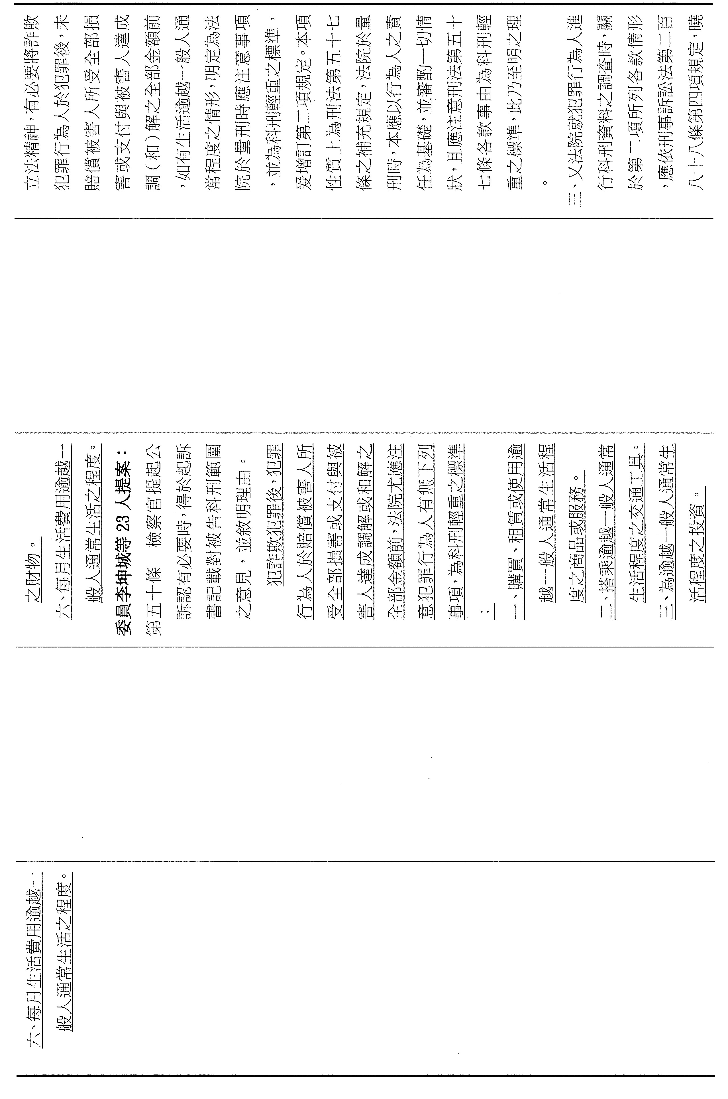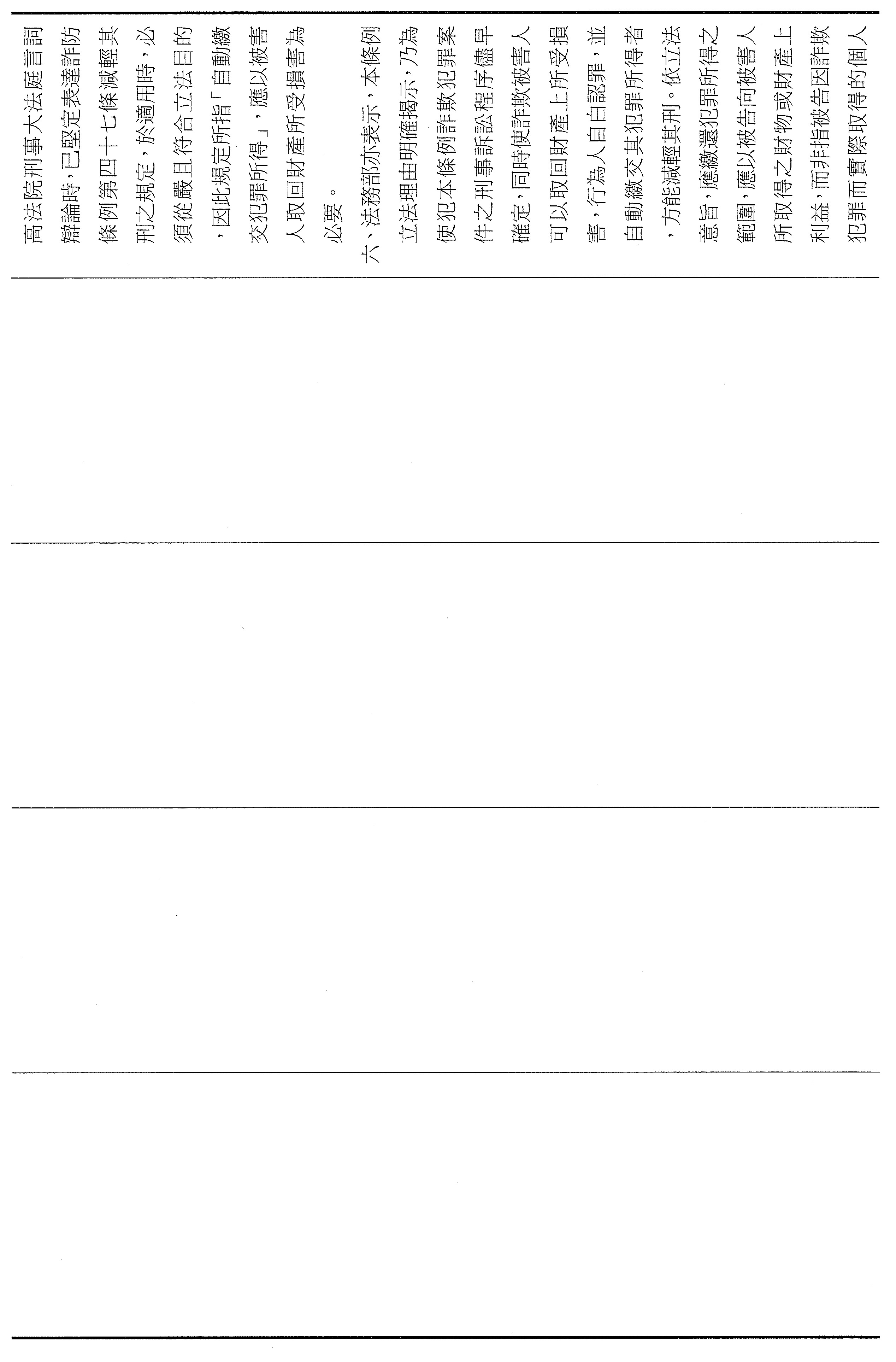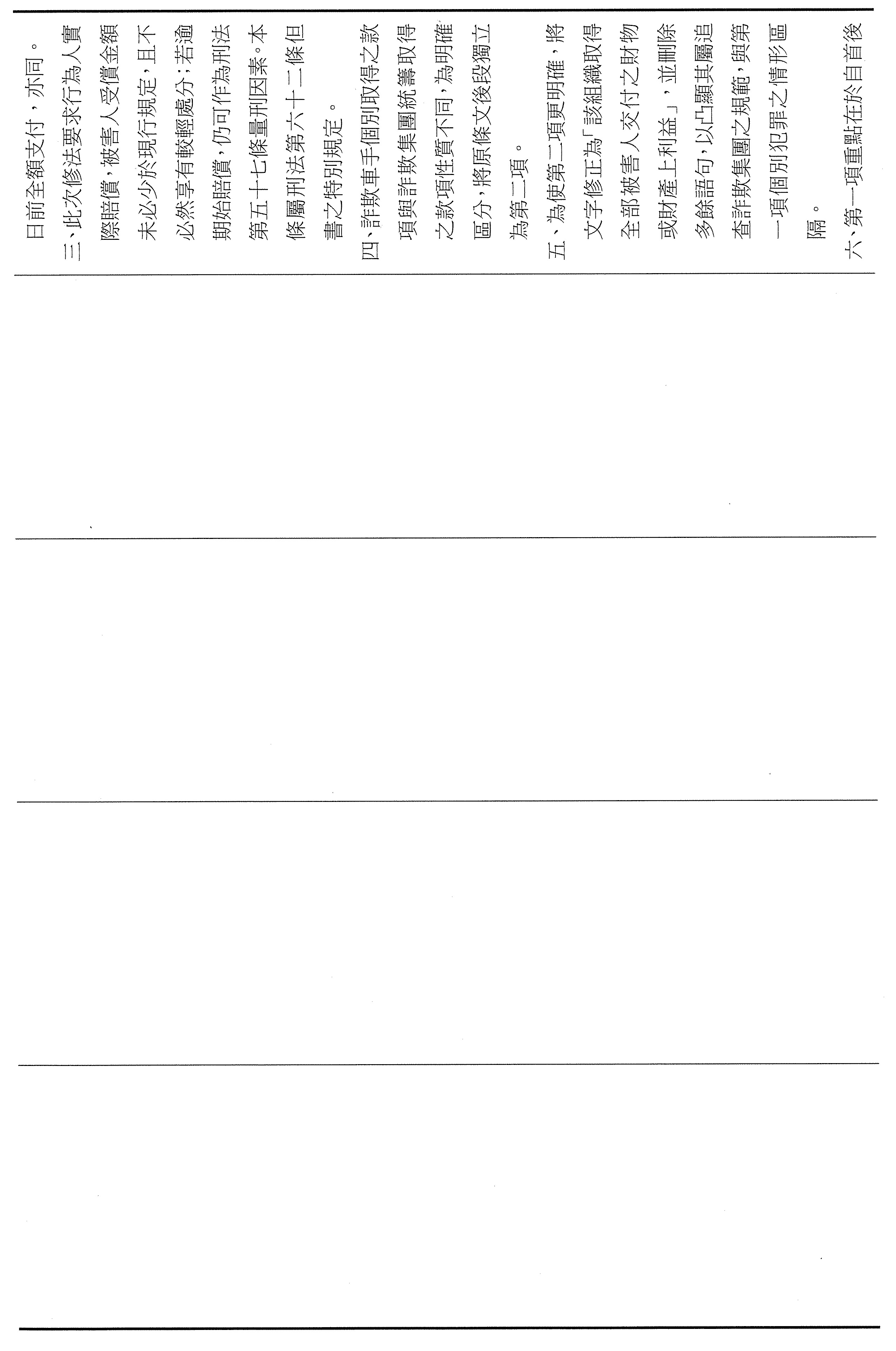 黃委員捷:謝謝主席。我提一下我的提案說明,可分成兩個部分,第一個是針對最高法院第4096號裡裁定有關詐欺犯只要繳回個人犯罪所得就可以減刑的部分,其實這件事情在社會上也引起譁然,覺得哇!原來現在不管你是車手還是詐騙產業鏈裡的任何一分子,只要你可以繳回部分所得,用非常少的錢就可以換減刑,這對被害人來說非常非常的不公平。所以,我提案修正第四十六條及第四十七條,嚴格規定如果被告要爭取減刑,必須要把被害人因本案所交付的全部財物都進行無條件的提存,或是必須支付進行調解或和解的全部金額。這是這一次修法最重要的其中一條,大家立場都很清楚,不能讓詐騙集團任何一分子,就算是車手也不能讓他輕易地脫罪。