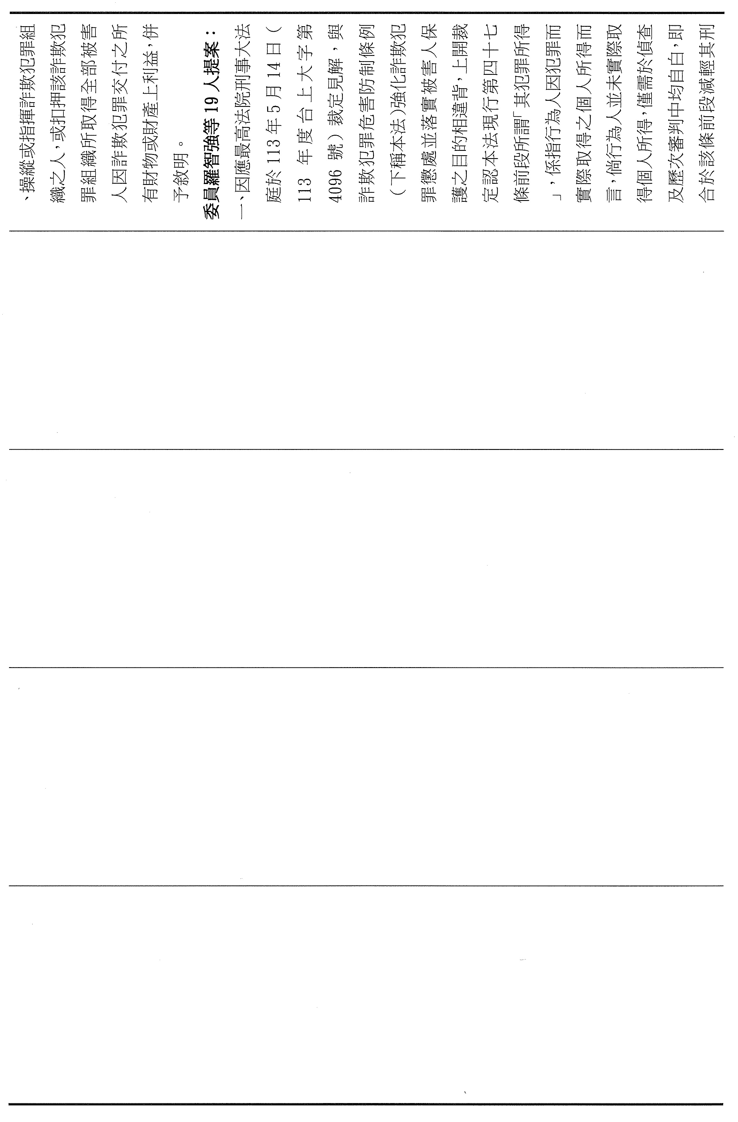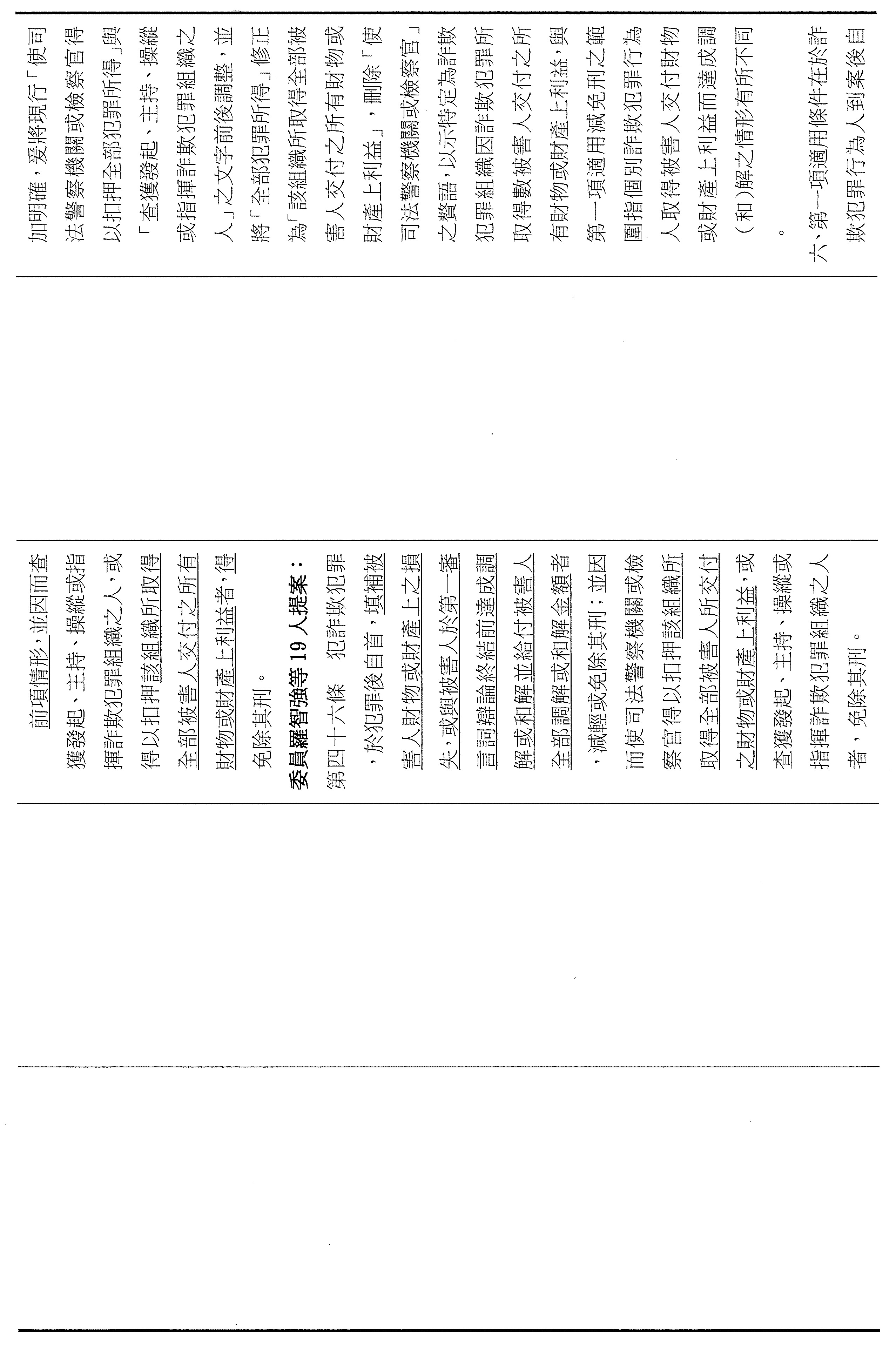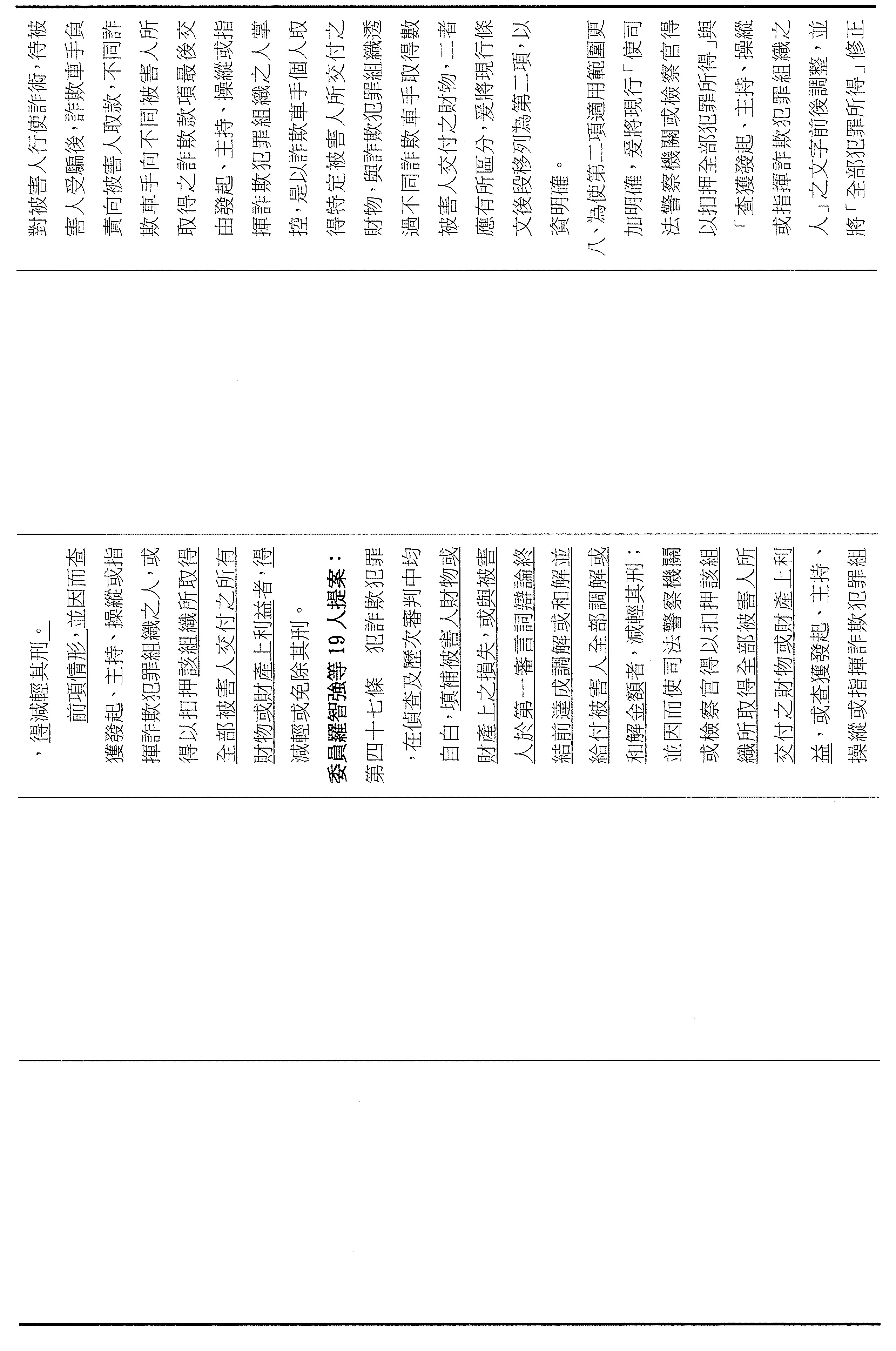 十九、審查委員羅智強等19人擬具「詐欺犯罪危害防制條例第四十六條及第四十七條條文修正草案」案。