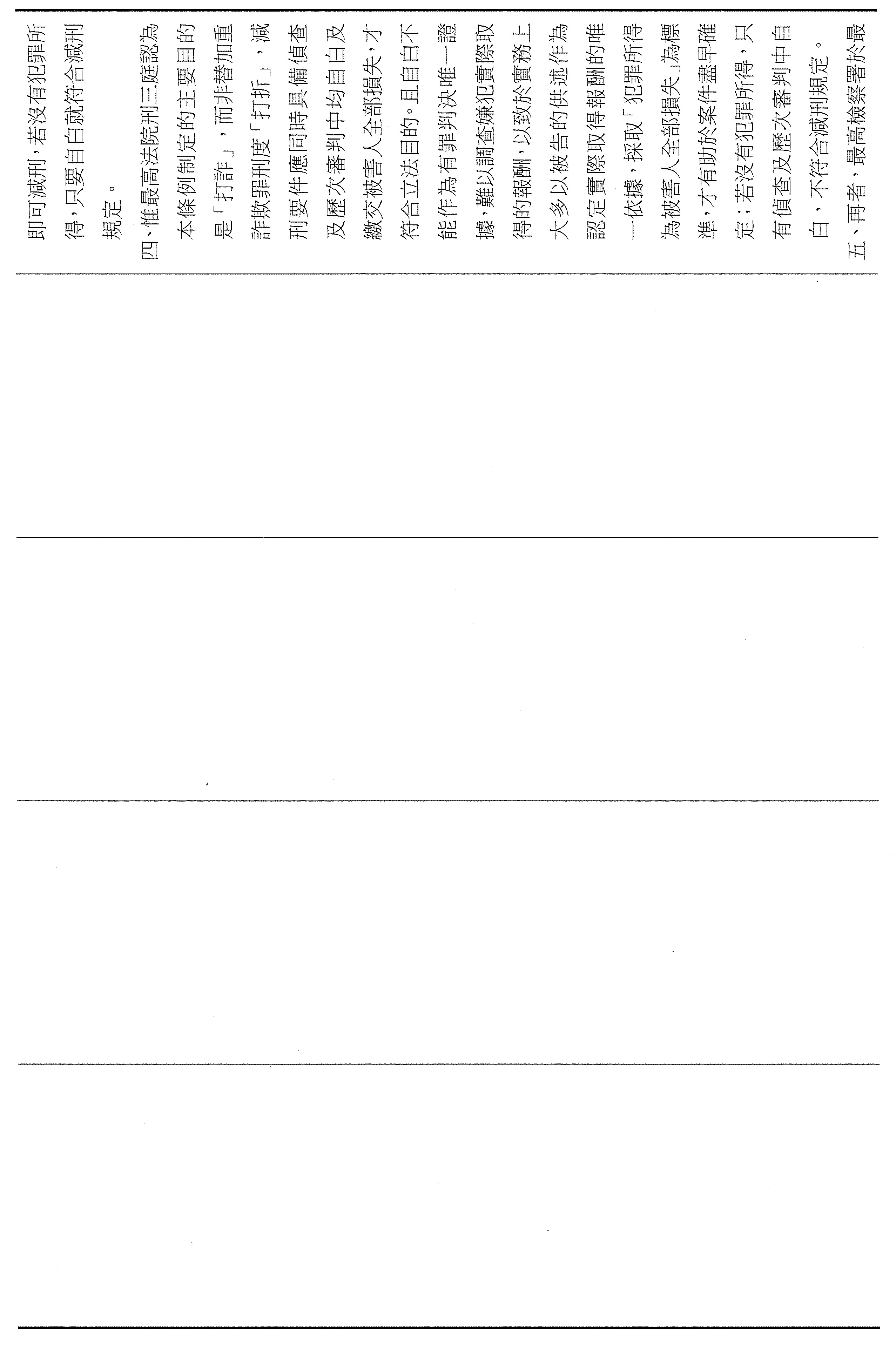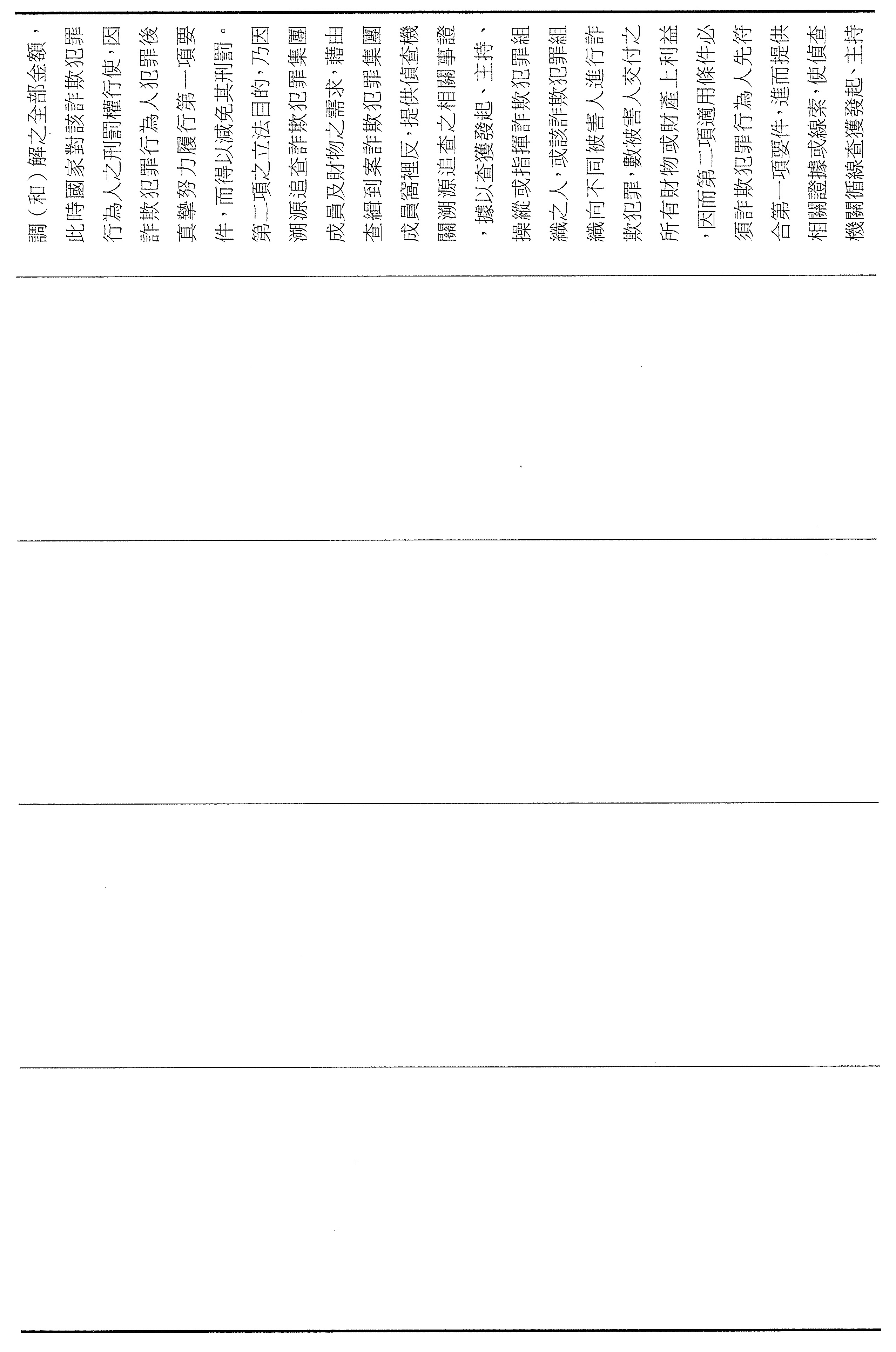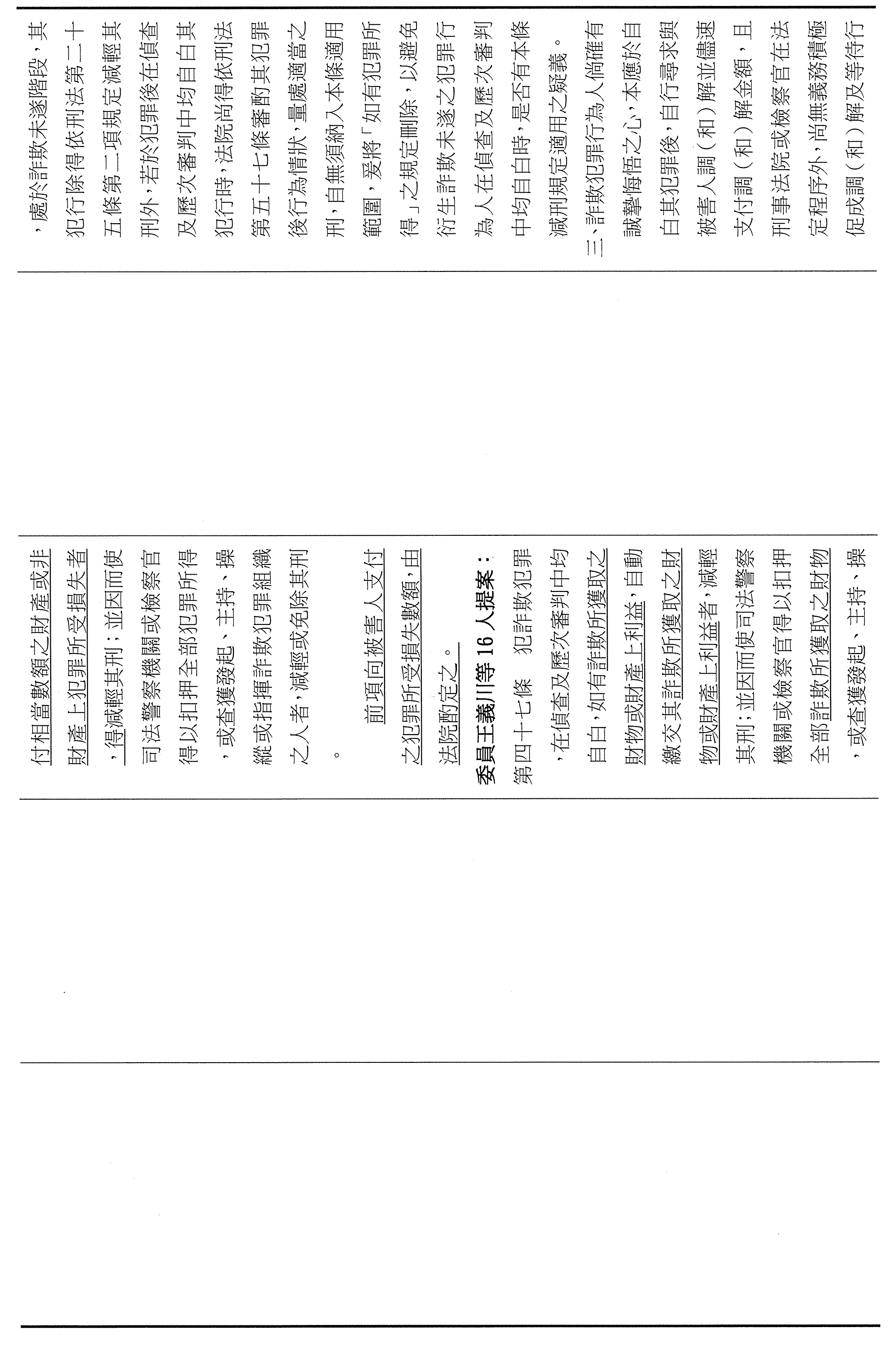 我們除了重視自首、自白對詐騙偵查以外,更應該重視對被害人權利的賠償,詐騙集團裡就算只是車手,也是殘害被害人的一分子,要有更積極的作為來補償被害人,才可以獲得減刑,否則打詐這條路上永遠會有漏洞,謝謝。