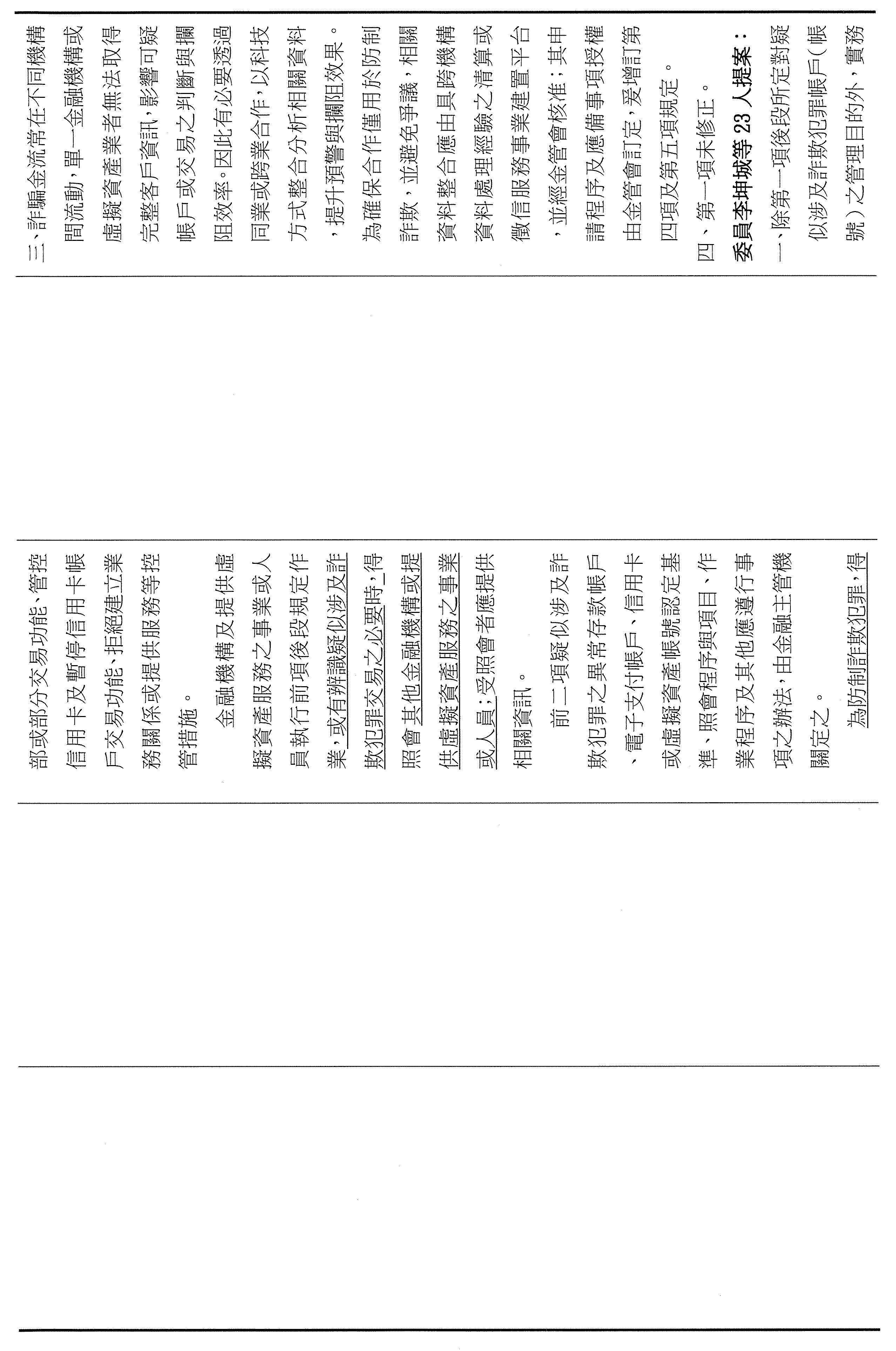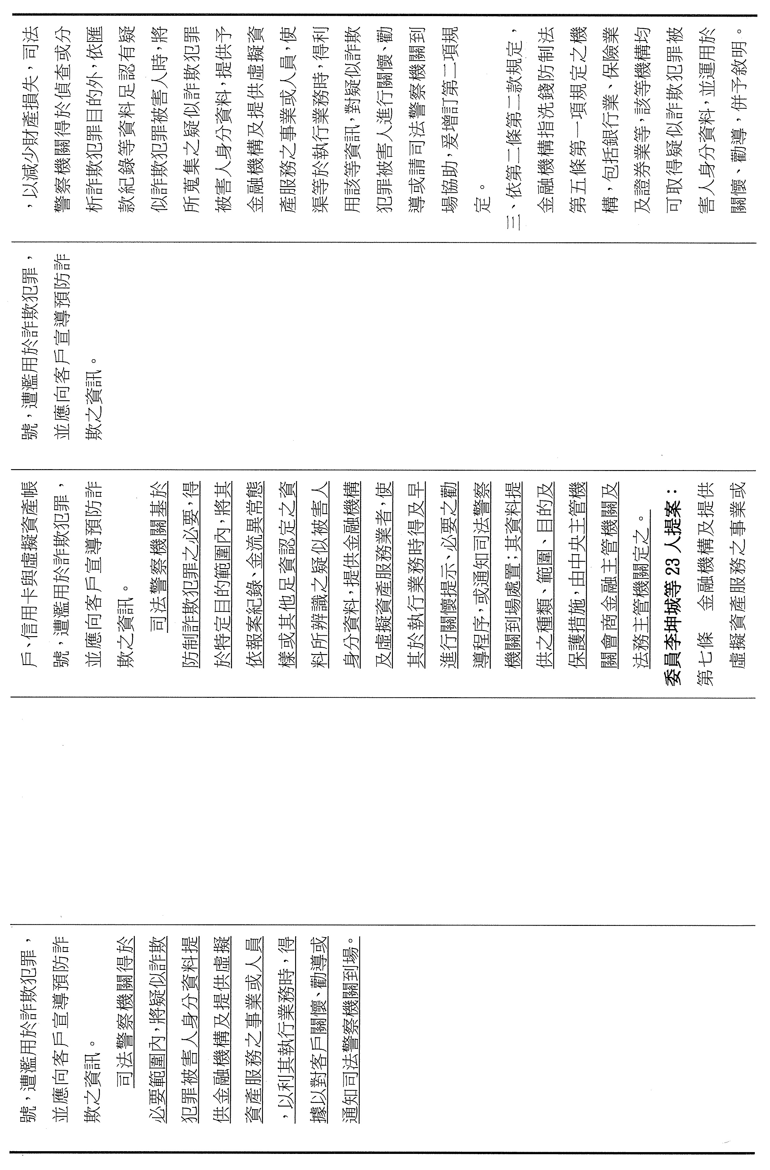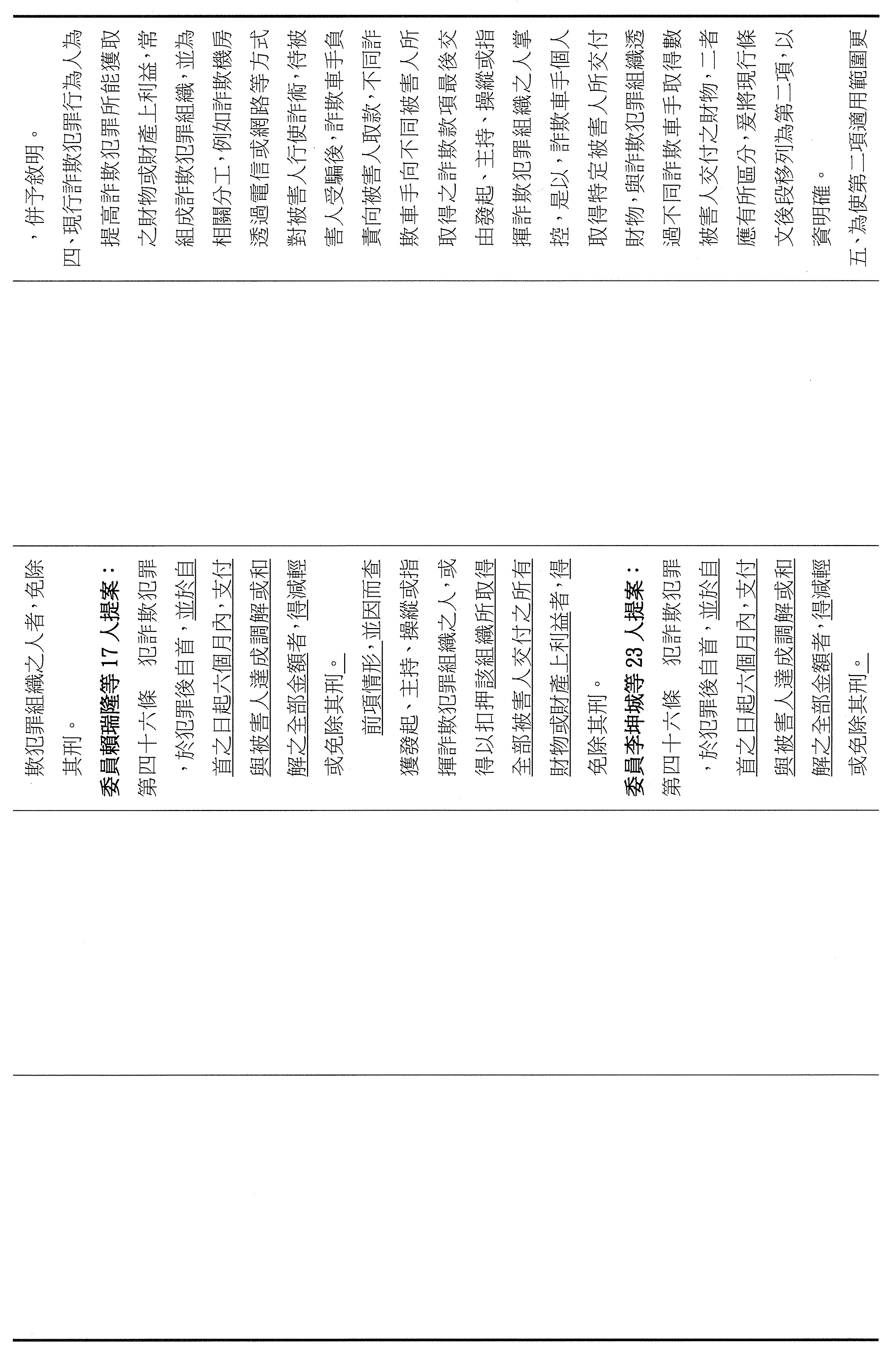 十五、審查委員翁曉玲等24人擬具「詐欺犯罪危害防制條例第四十六條及第四十七條條文修正草案」案。