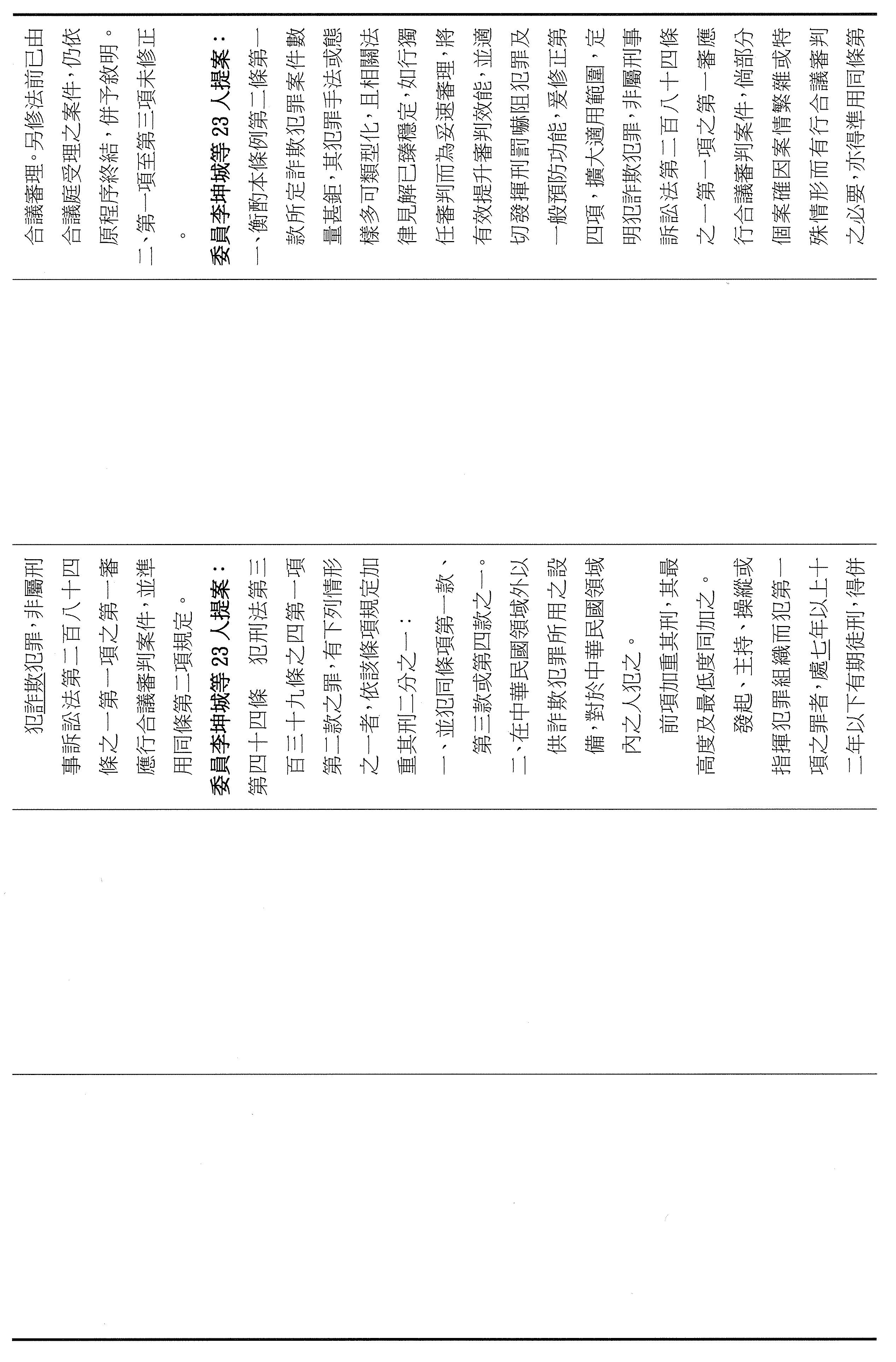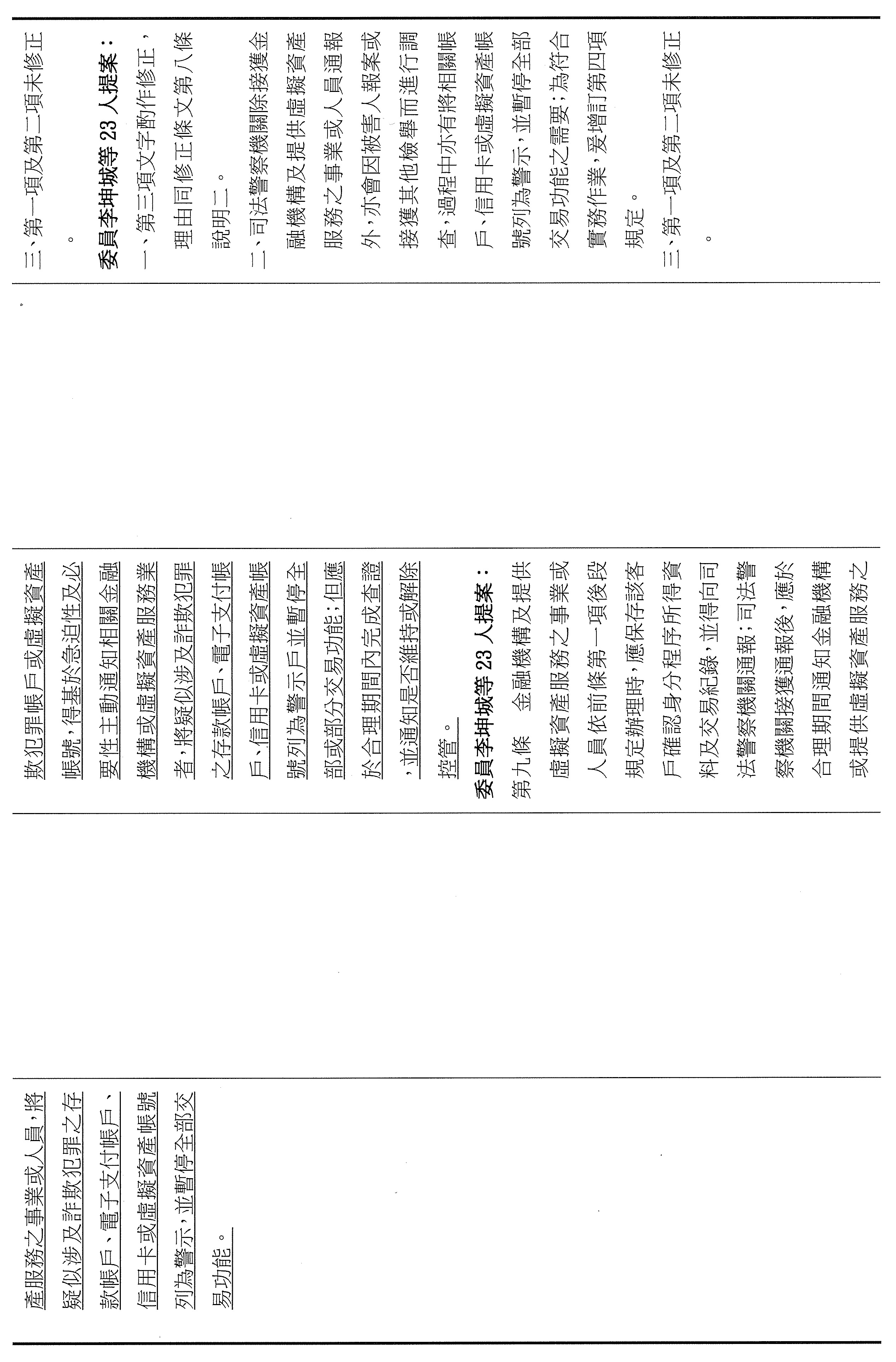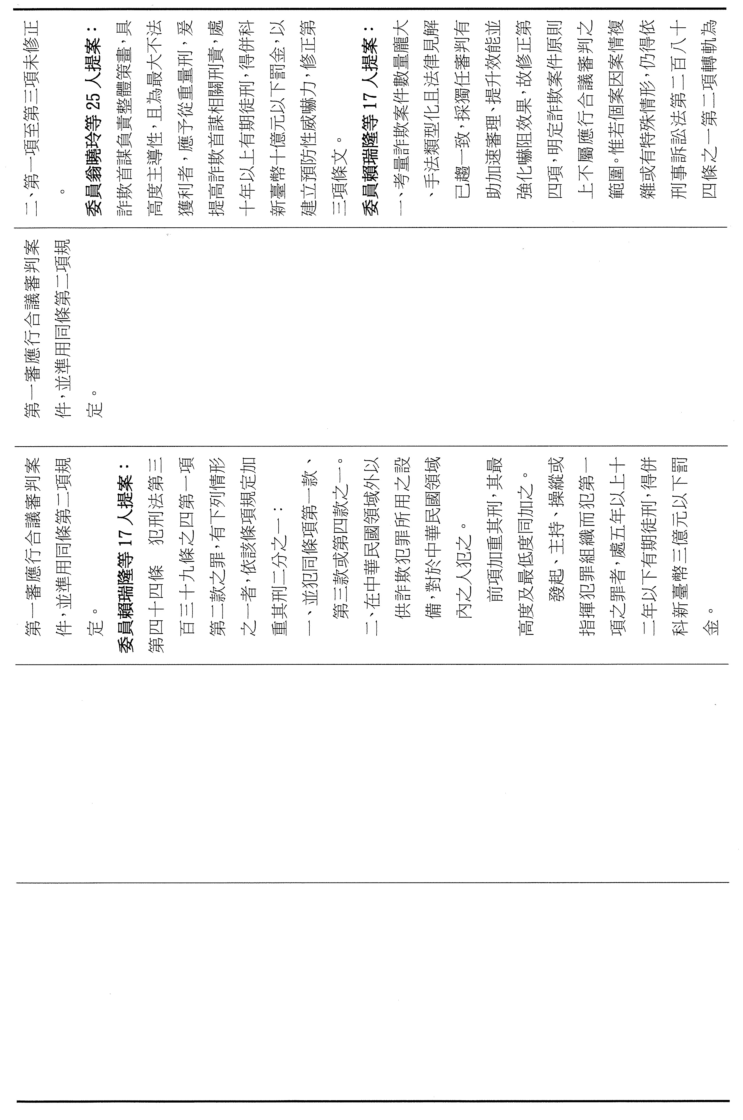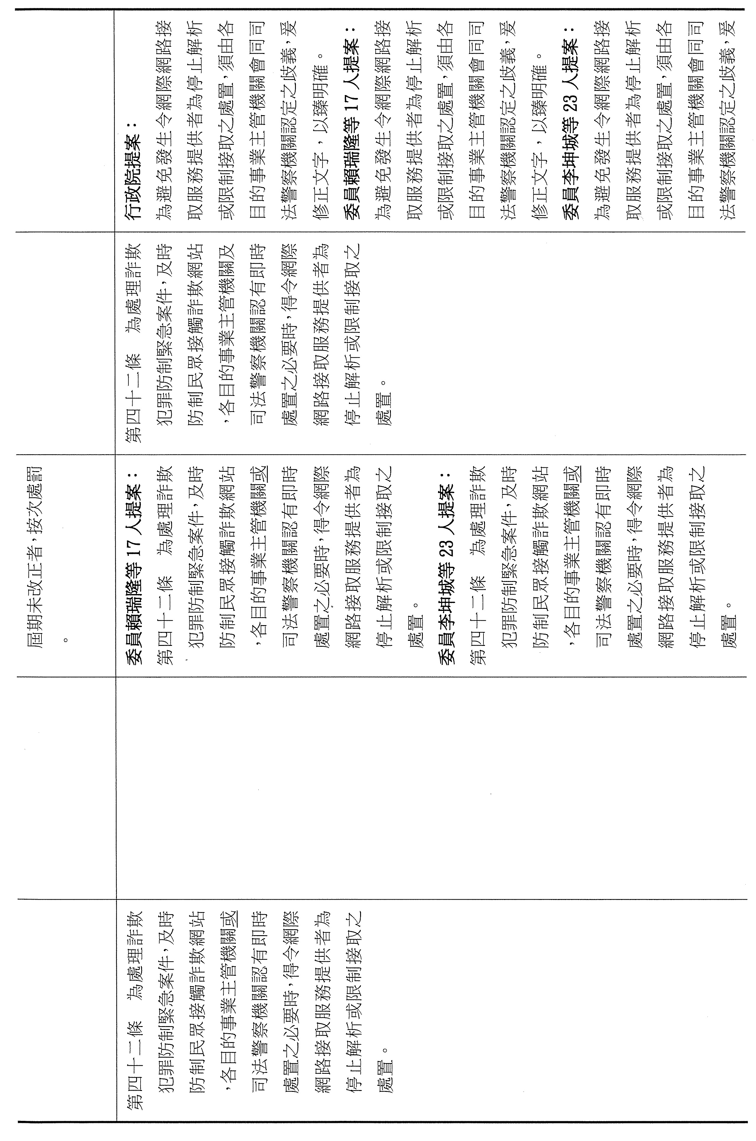 十五、審查委員翁曉玲等24人擬具「詐欺犯罪危害防制條例第四十六條及第四十七條條文修正草案」案。