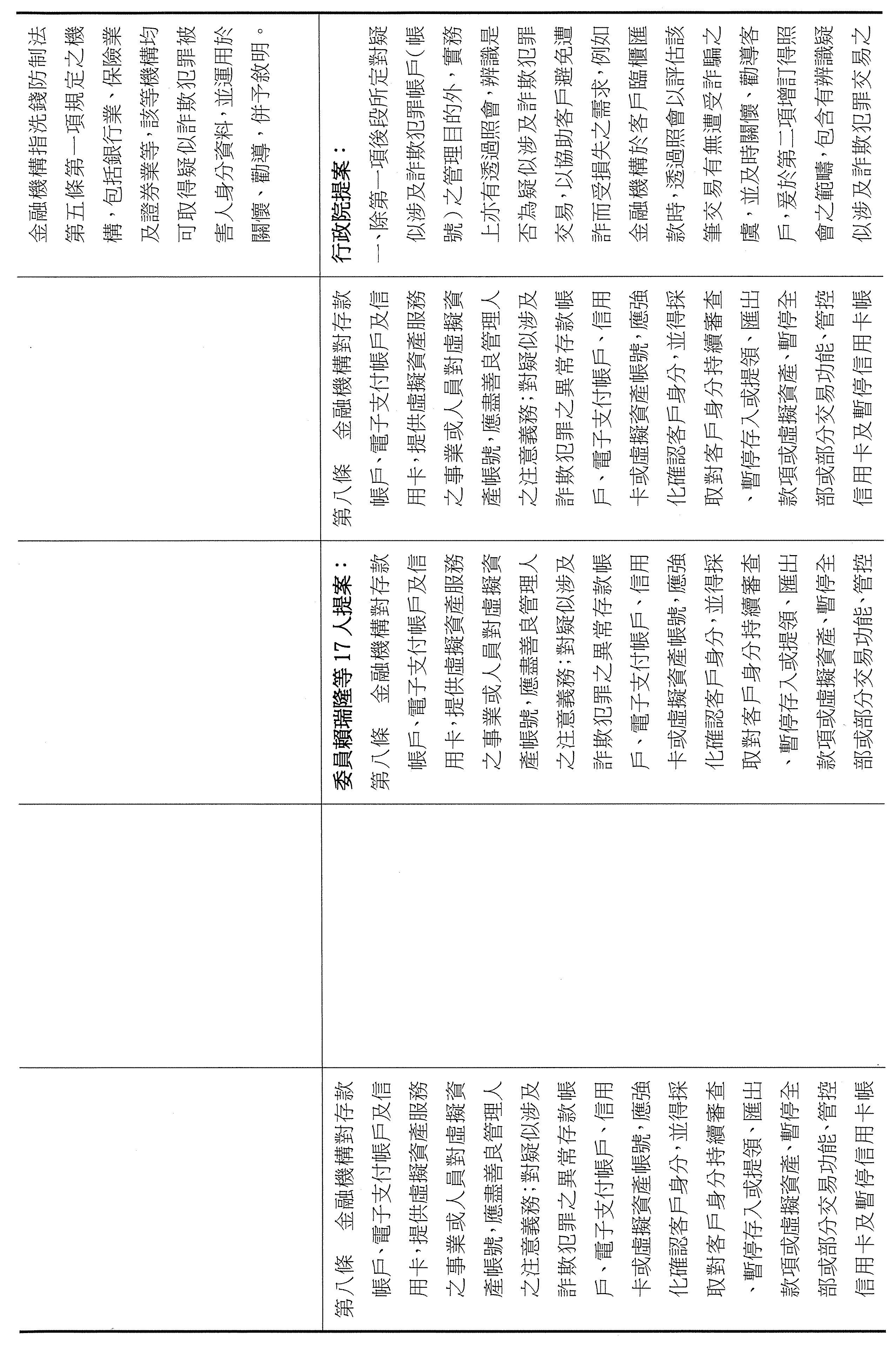這次併案審查,行政院版與各委員版互有不同。各委員的版本重點跟解決打詐的方案也各有不同。有哪些提案條文你們接受納入修法一環,有哪些提案條文你們認為建議很好,但毋須修法,可以從精進行政作為就可以處理。本席與外界都想知道你們的看法,因為現實是你們一修再修,但是詐騙卻依舊猖獗,你們究竟是閉門造車,還是有廣納意見認真處理?