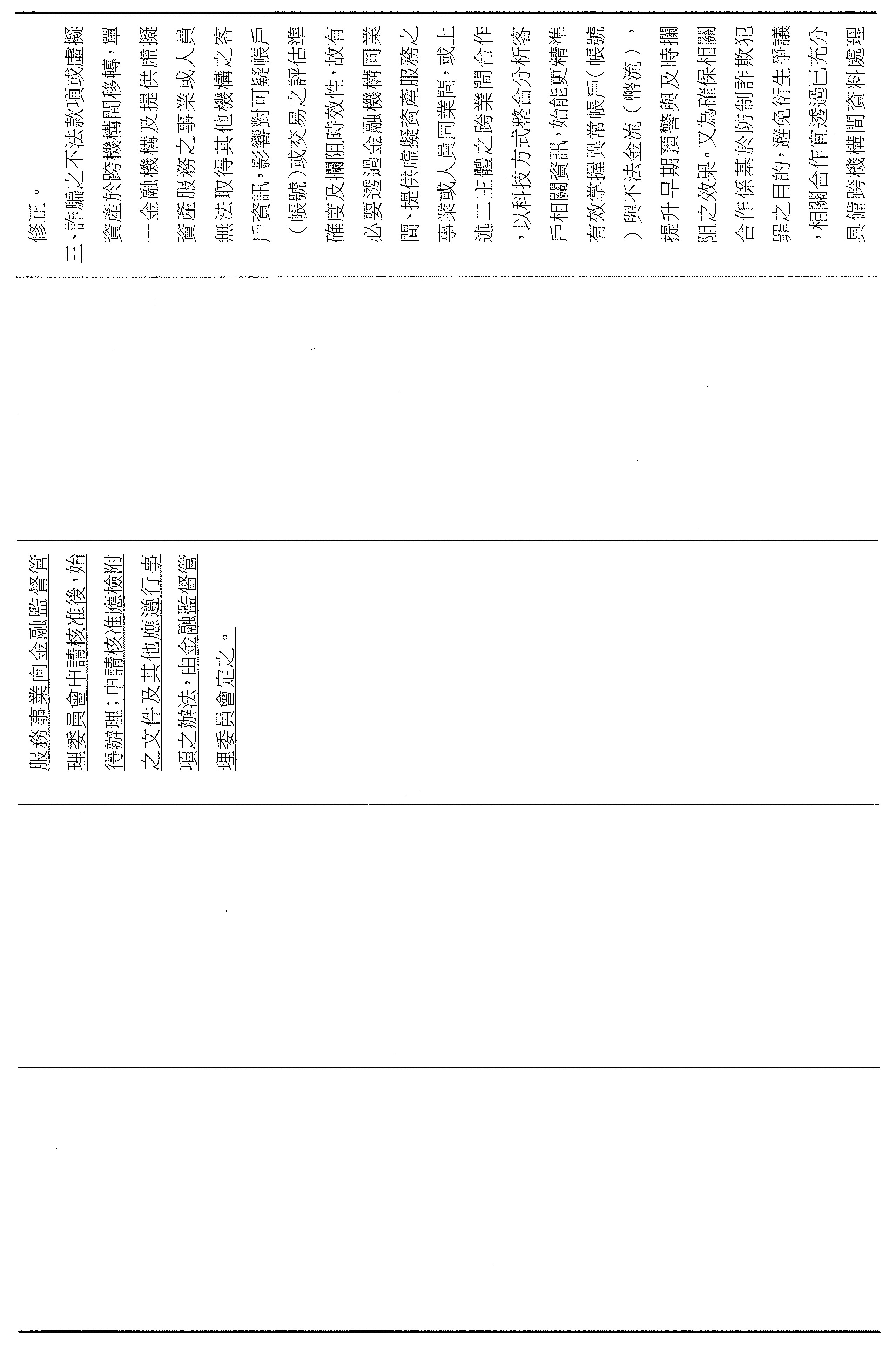徐次長錫祥:還有一點就是這個不是完全封鎖他帳戶的使用,他可以臨櫃,這只是對他有些限制。