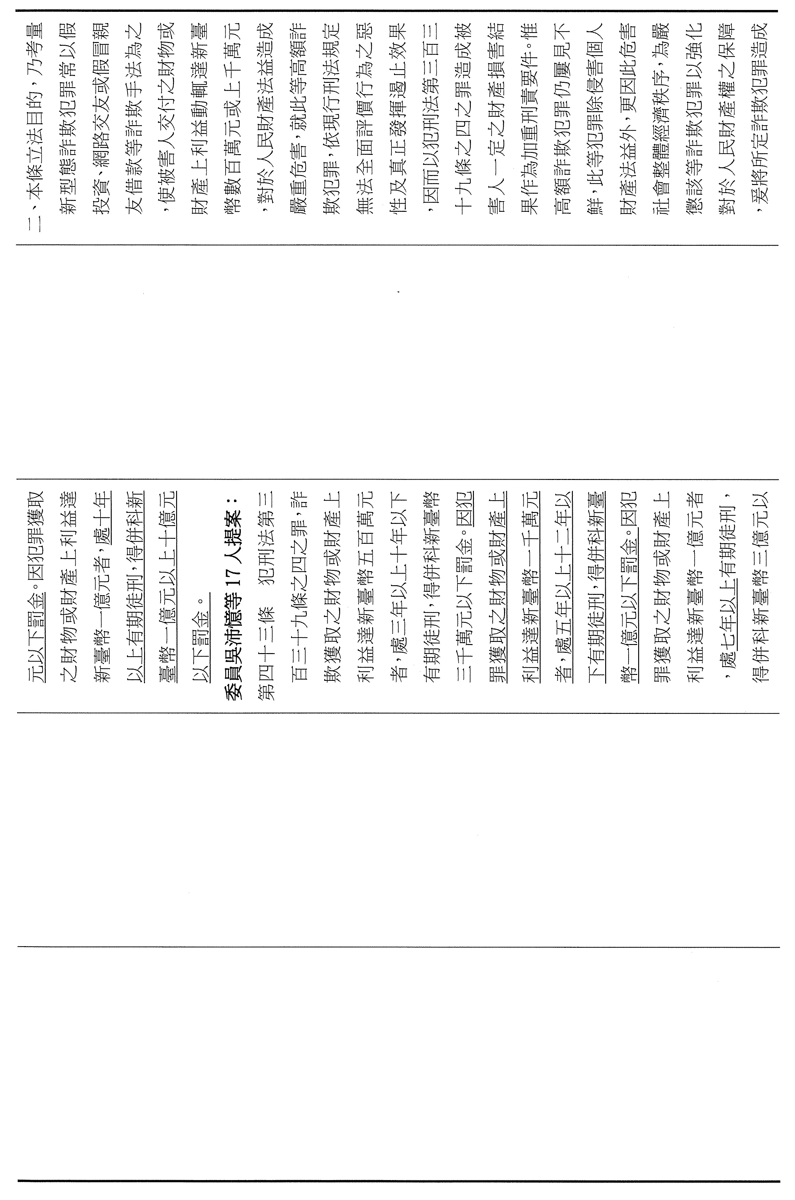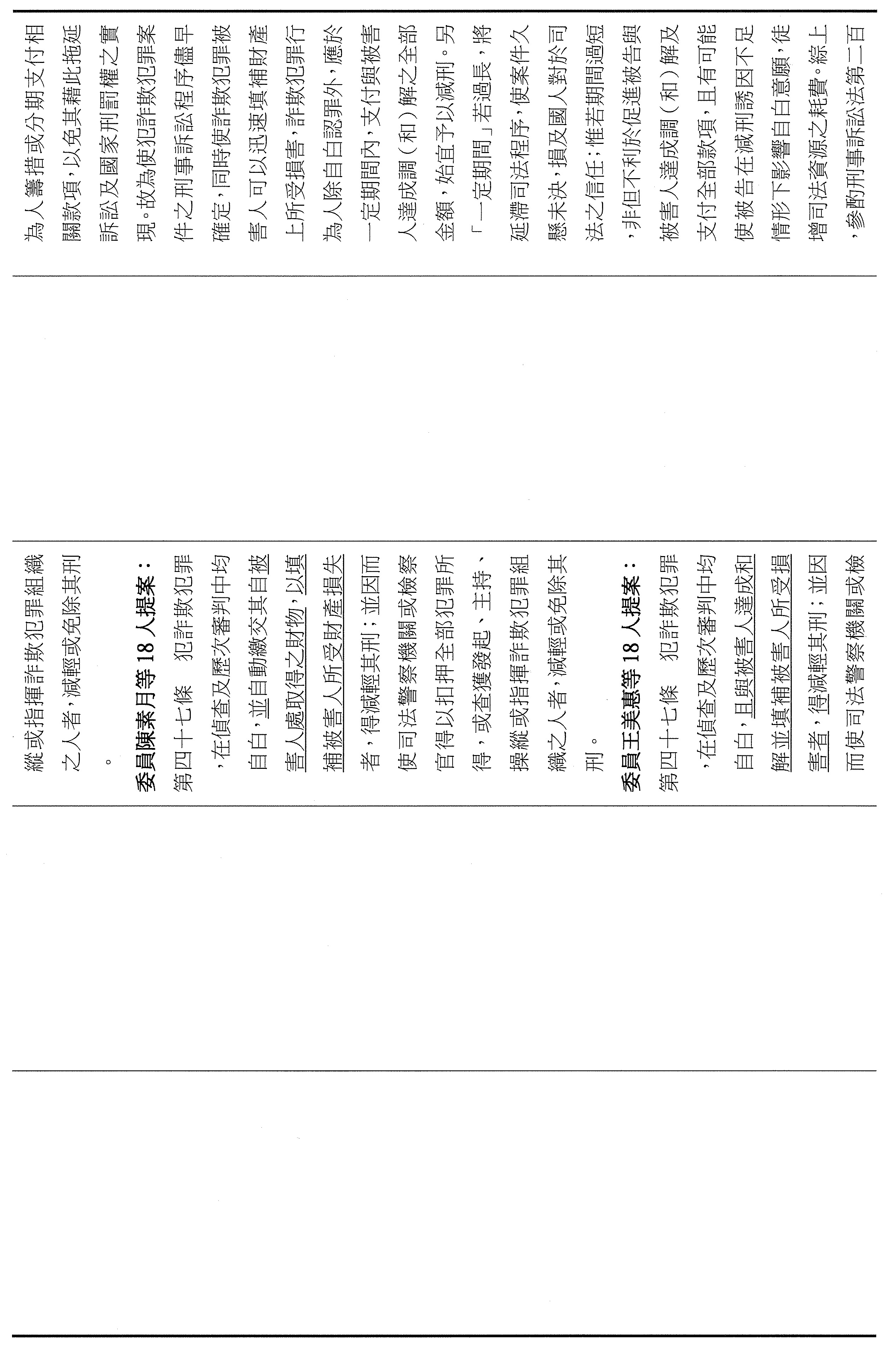九、審查委員王美惠等18人擬具「詐欺犯罪危害防制條例第四十七條條文修正草案」案。