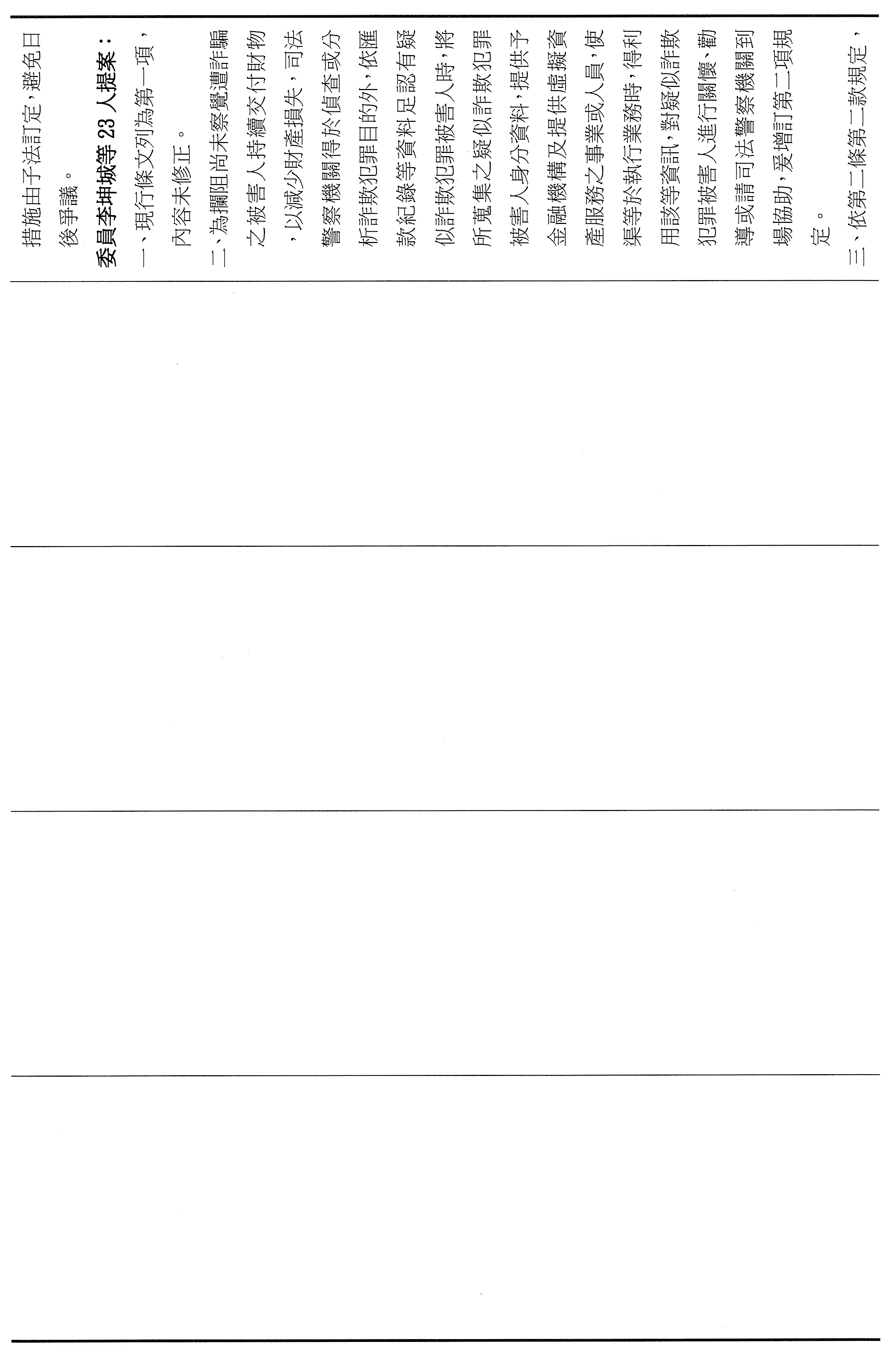 十八、審查委員李坤城等23人擬具「詐欺犯罪危害防制條例部分條文修正草案」案。