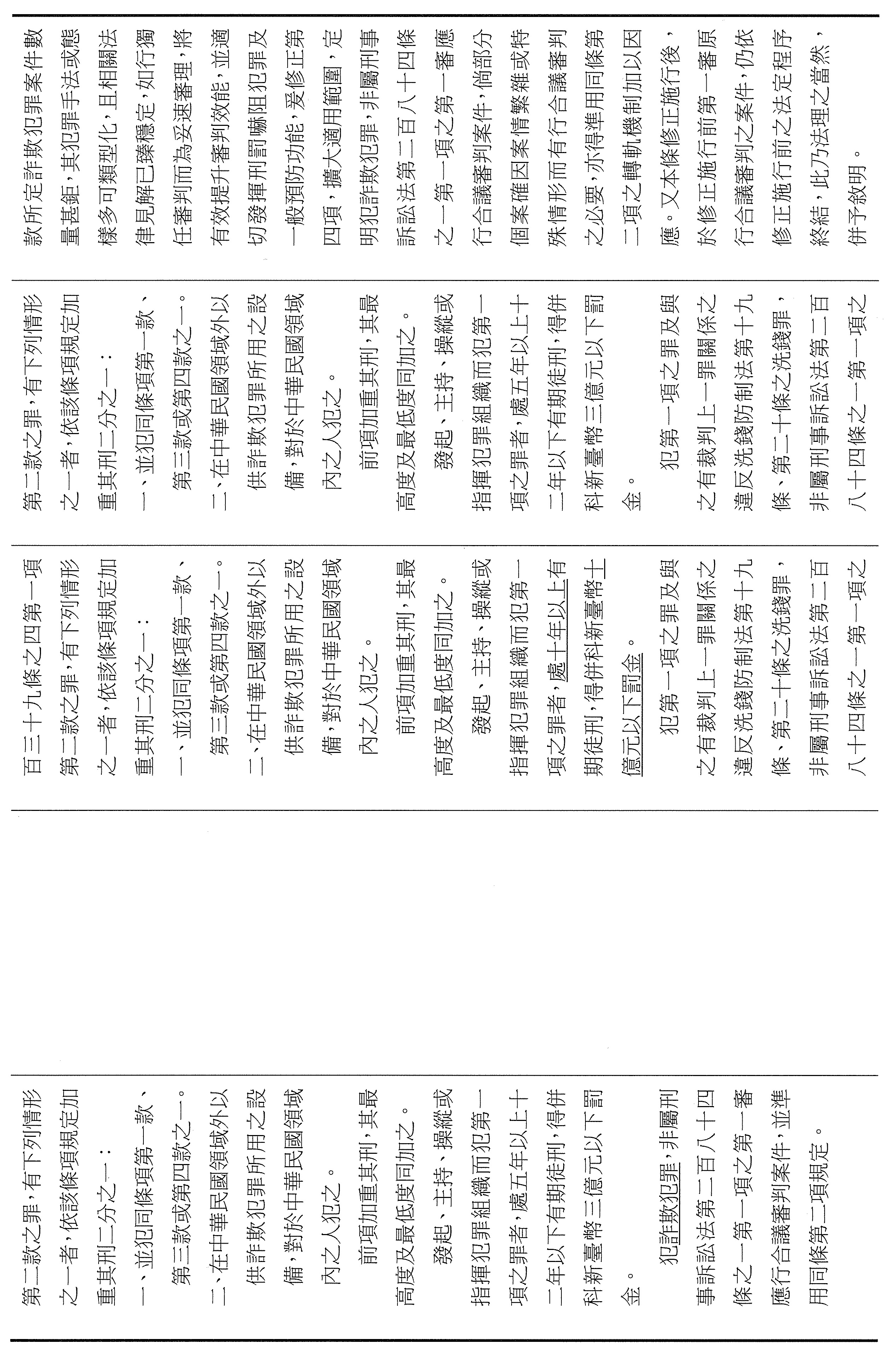 我們透過層級與提高刑罰密度的設計來傳達一個清晰且堅定的訊號:國家絕不容許以任何不法手段來獲取暴利的詐騙行為!中華民國絕對不是化外之地,任何詐騙犯與詐騙行為我們都絕對嚴正拒絕。