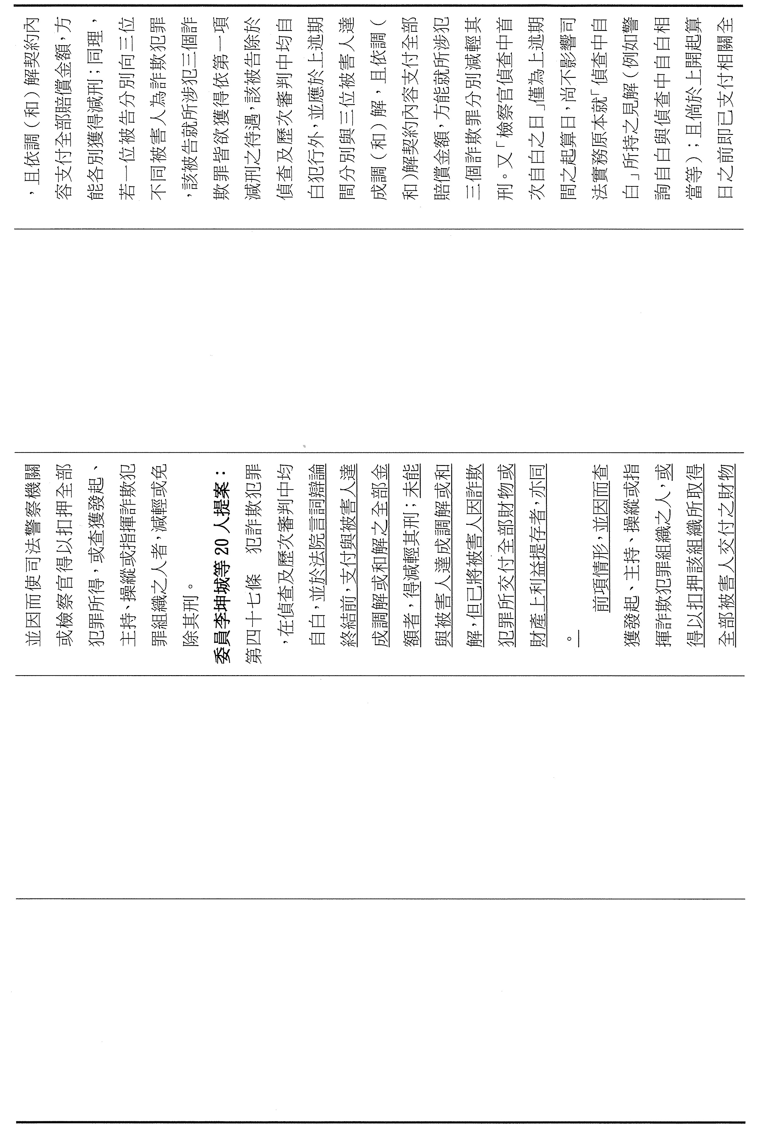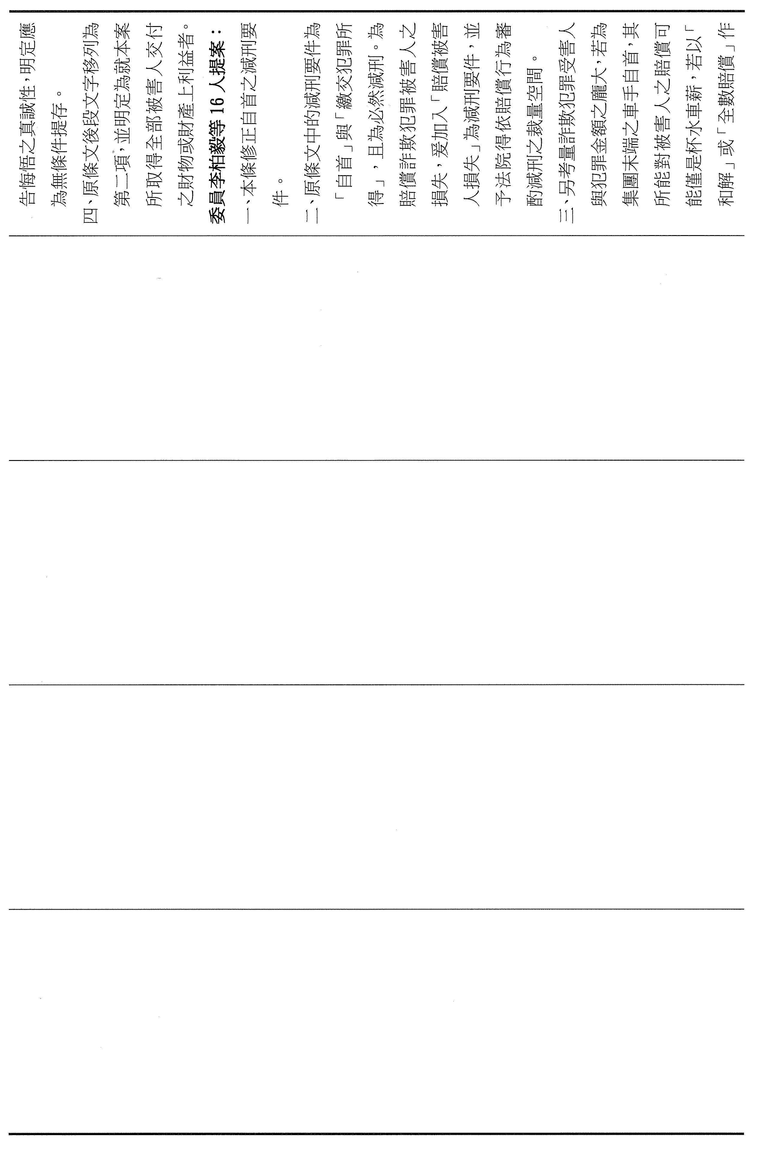 李委員柏毅:全民打詐及防詐是一條永遠不會停下來的路,所以我今天特別為被害人對於防詐條例第四十六條及第四十七條提出修正草案說明。原本草案裡是針對詐欺犯罪行為人的減刑跟免刑要件,只有自首或自白及自動繳交犯罪所得,並沒有對於被害人的賠償要件,所以我提案內容裡包含第四十六條自己去自首的,除了要繳交犯罪所得以外,更應該要積極賠償被害人所受的損害,並由法院審酌其賠償,才可以得到減刑或免刑;第四十七條是針對已經被抓到了他才認罪的,必須要全額填補被害人所受的損害,或者是跟被害人達成和解才可以減刑。