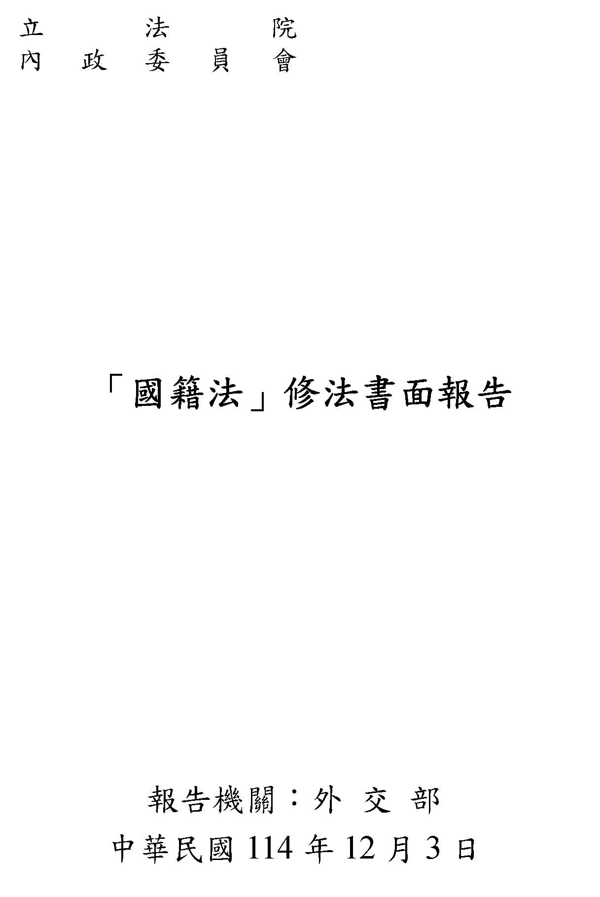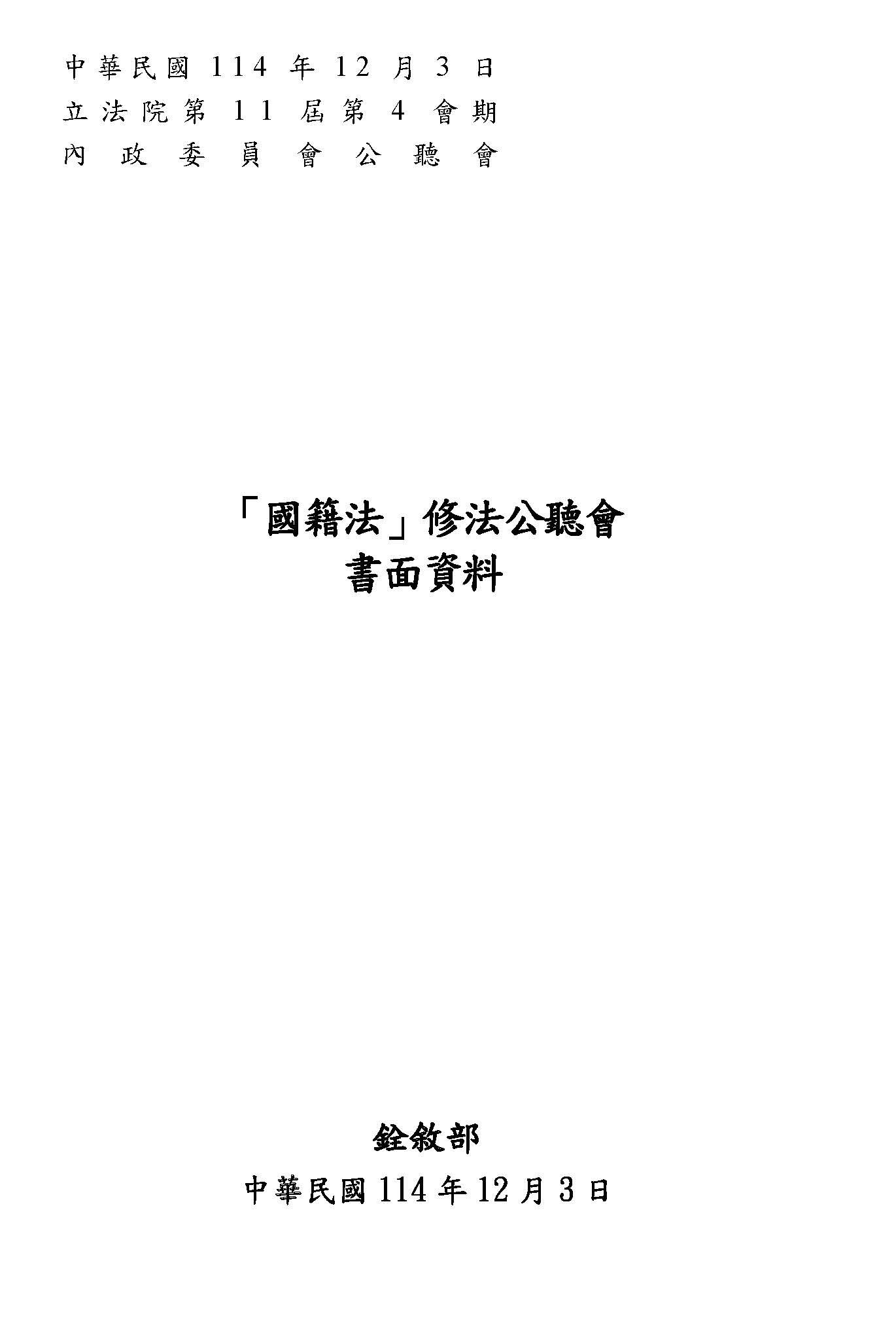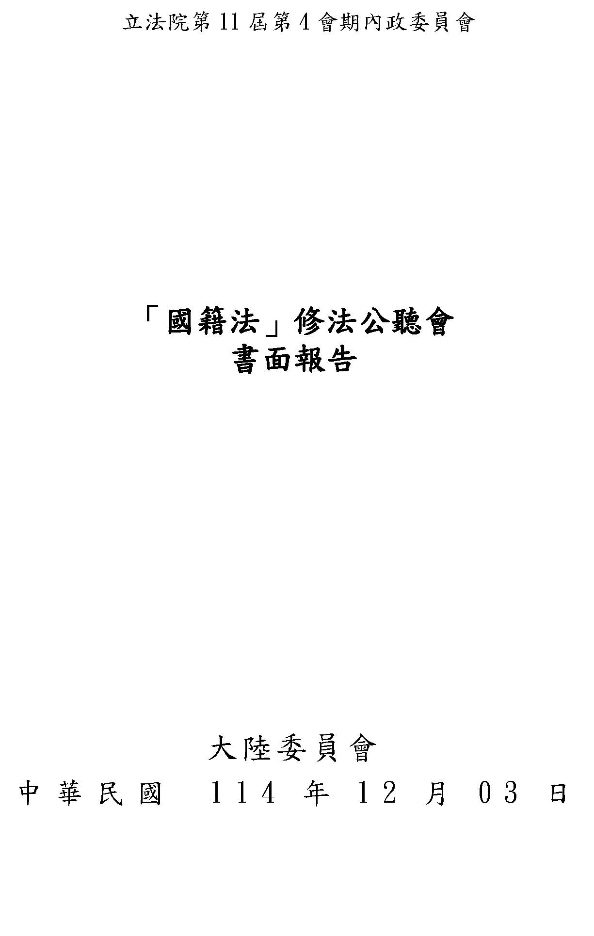 立法院第11屆第4會期內政委員會「國籍法」修法公聽會紀錄