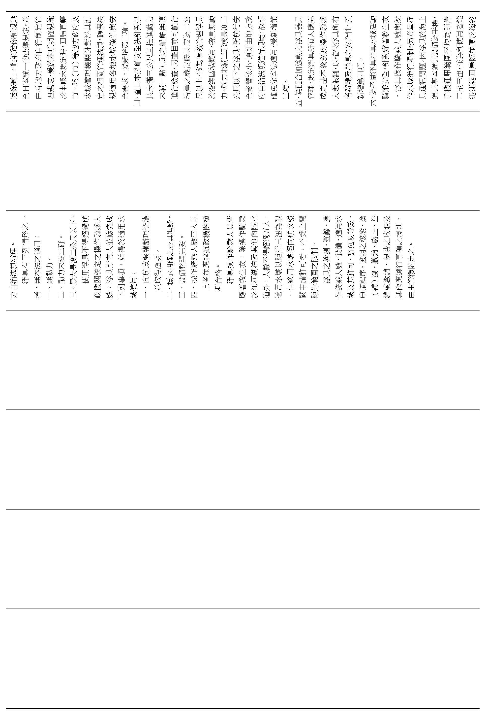 第八十二條 小船,除本章、第一章、第十五條之一、第二十七條第一項、第二十八條、第二十八條之一第一項與第三項、第二十八條之二第一項、第二十八條之三、第四十條第一項、第四十一條第一項與第二項前段、第八十九條第一項、第八十九條之一、第九十條、第九十二條第一項與第三項、第九十三條、第九十四條、第九十七條第一項第一款及第九十八條至第一百零二條規定外,不適用本法之規定。