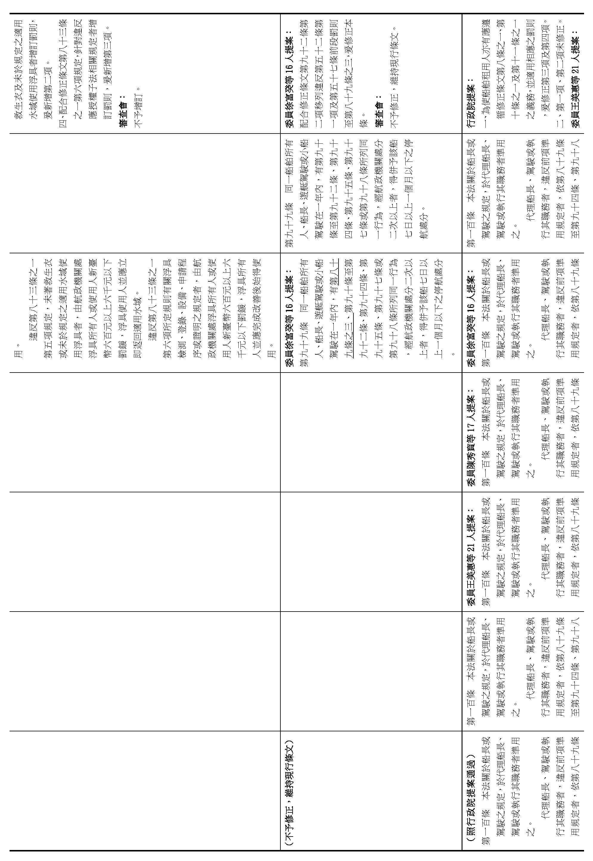 船舶法增訂第八條之一、第十條之一、第十一條之一及第八十九條之一條文;並修正第七十二條、第八十二條及第一百條條文(三讀)