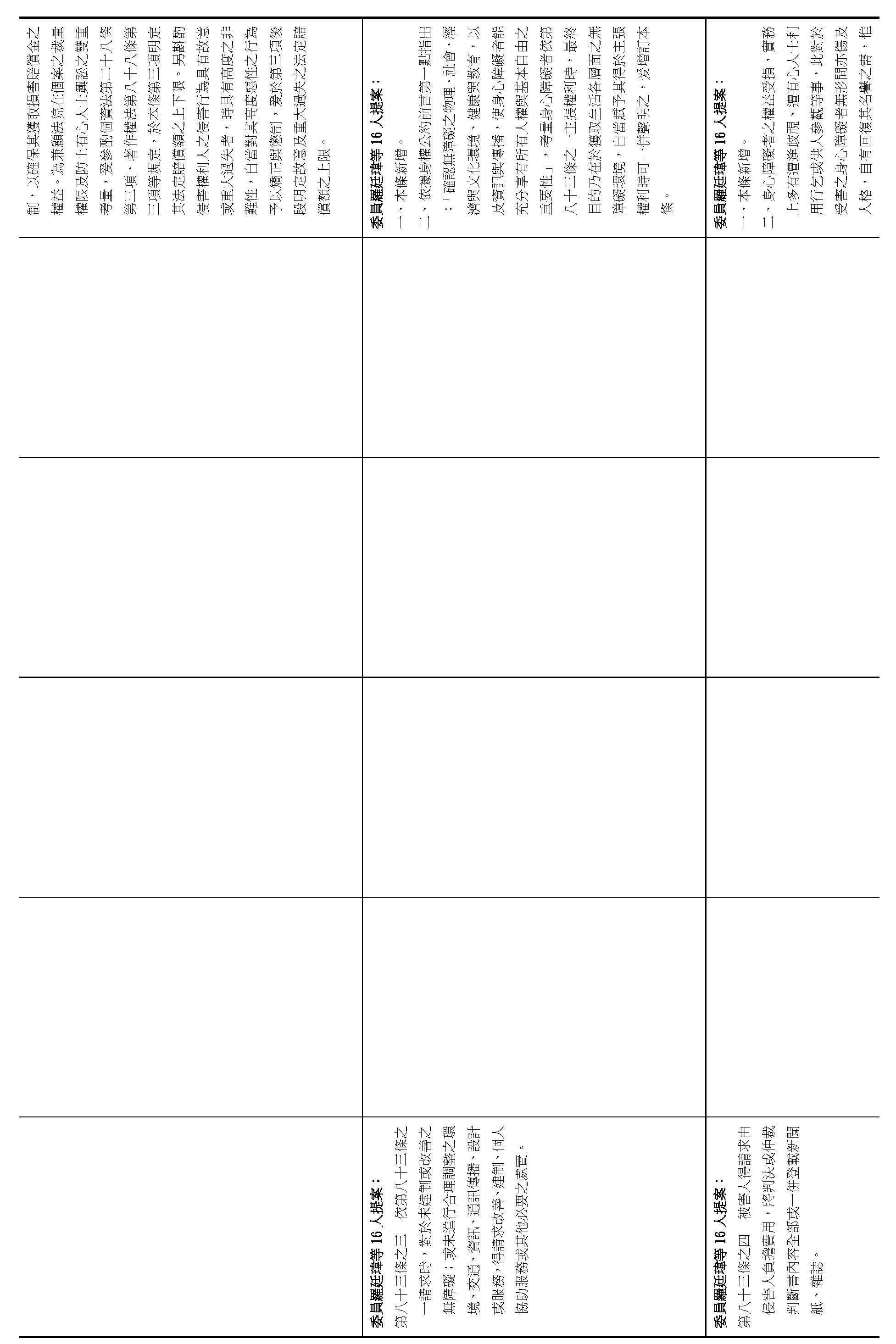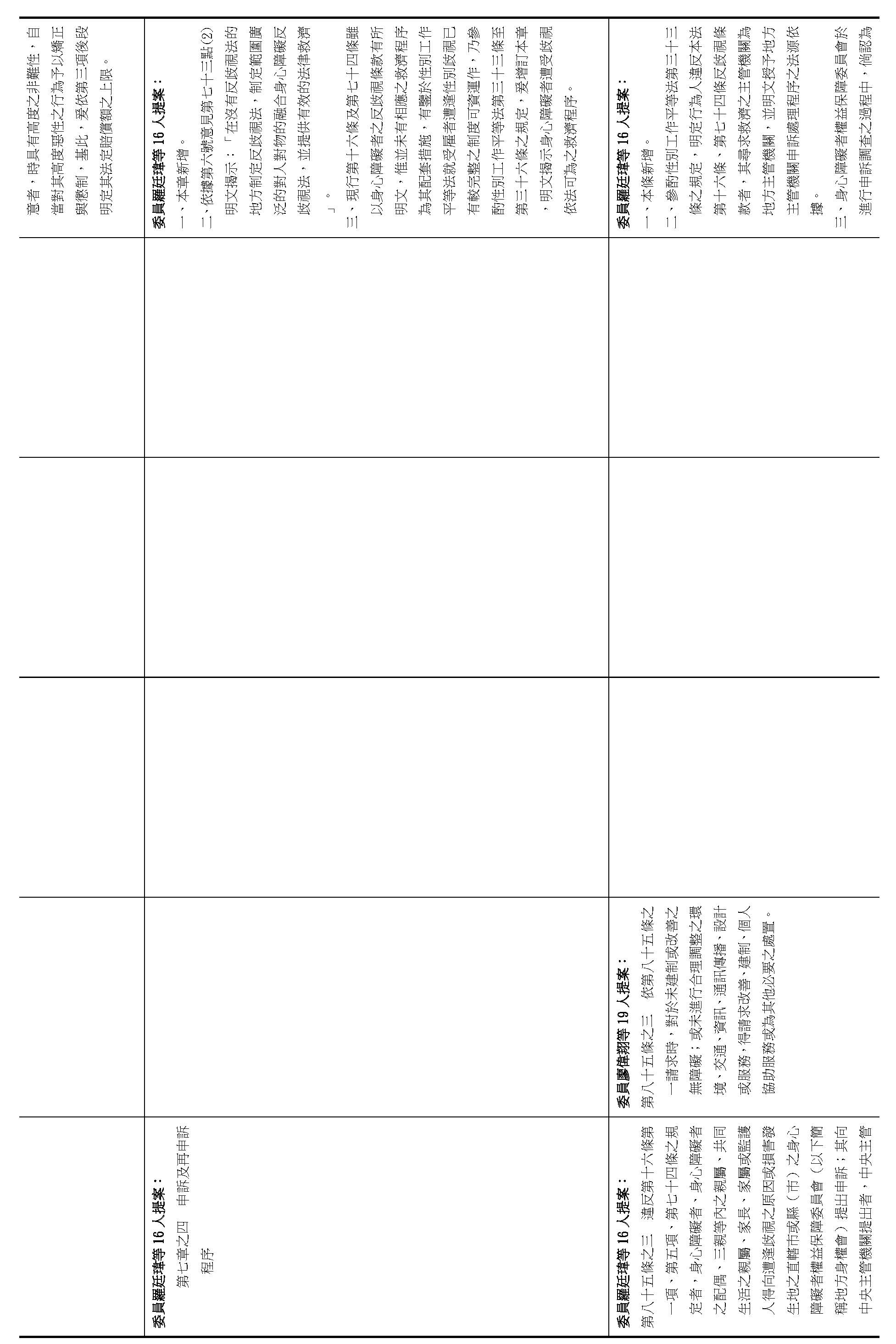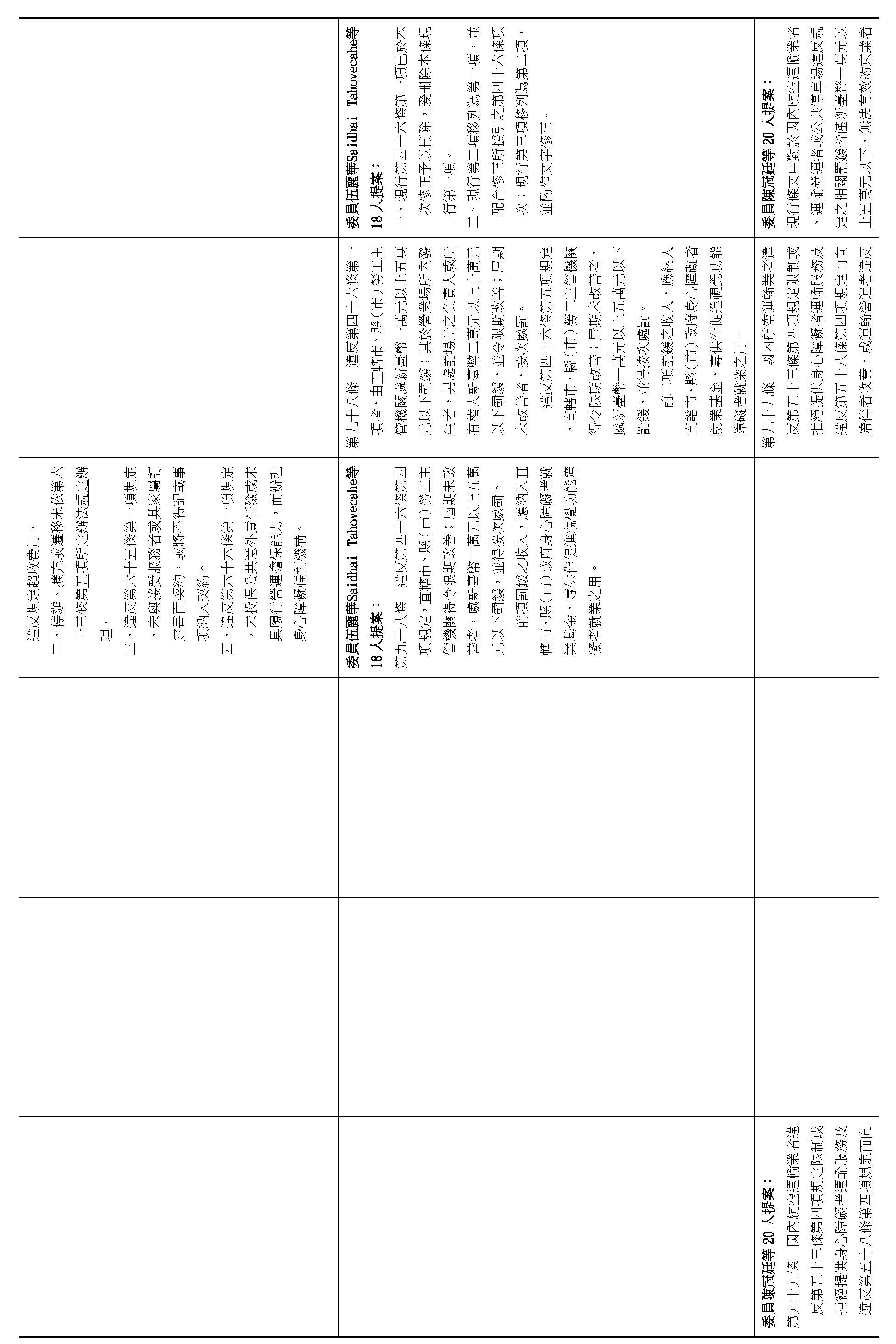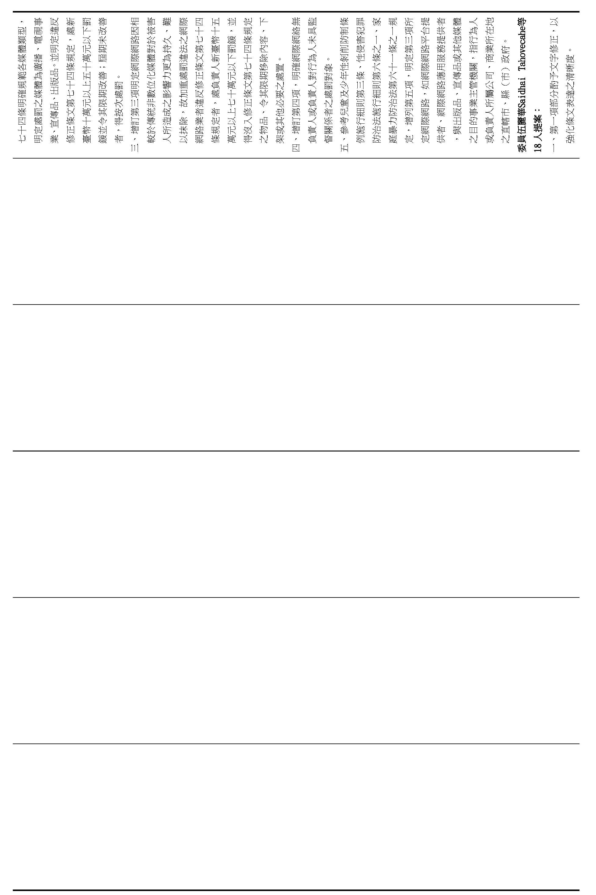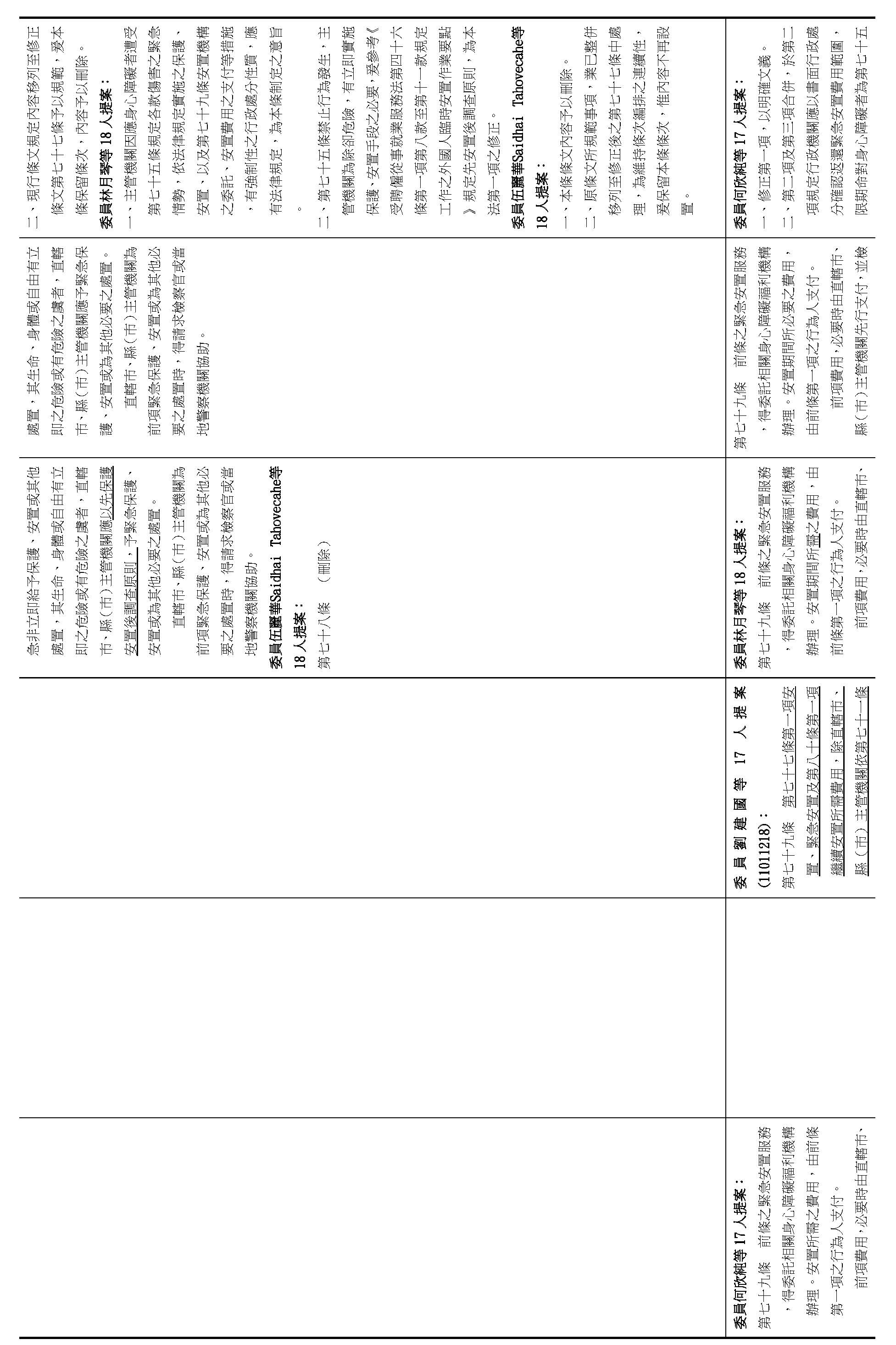 最後,有關林月琴委員等18人、伍麗華Saidhai Tahovecahe委員等18人、王育敏委員等17人以及台灣民眾黨黨團提案,明定各類傳播媒體之報導不得使用歧視性稱呼或描述,並配合修正罰則。對於各類媒體都不應有歧視性的報導,來落實平等及不歧視精神,本部敬表支持。至於增訂罰則的部分,考慮到型態的多元化,建議如果要訂定罰則的話,要審慎的研議。