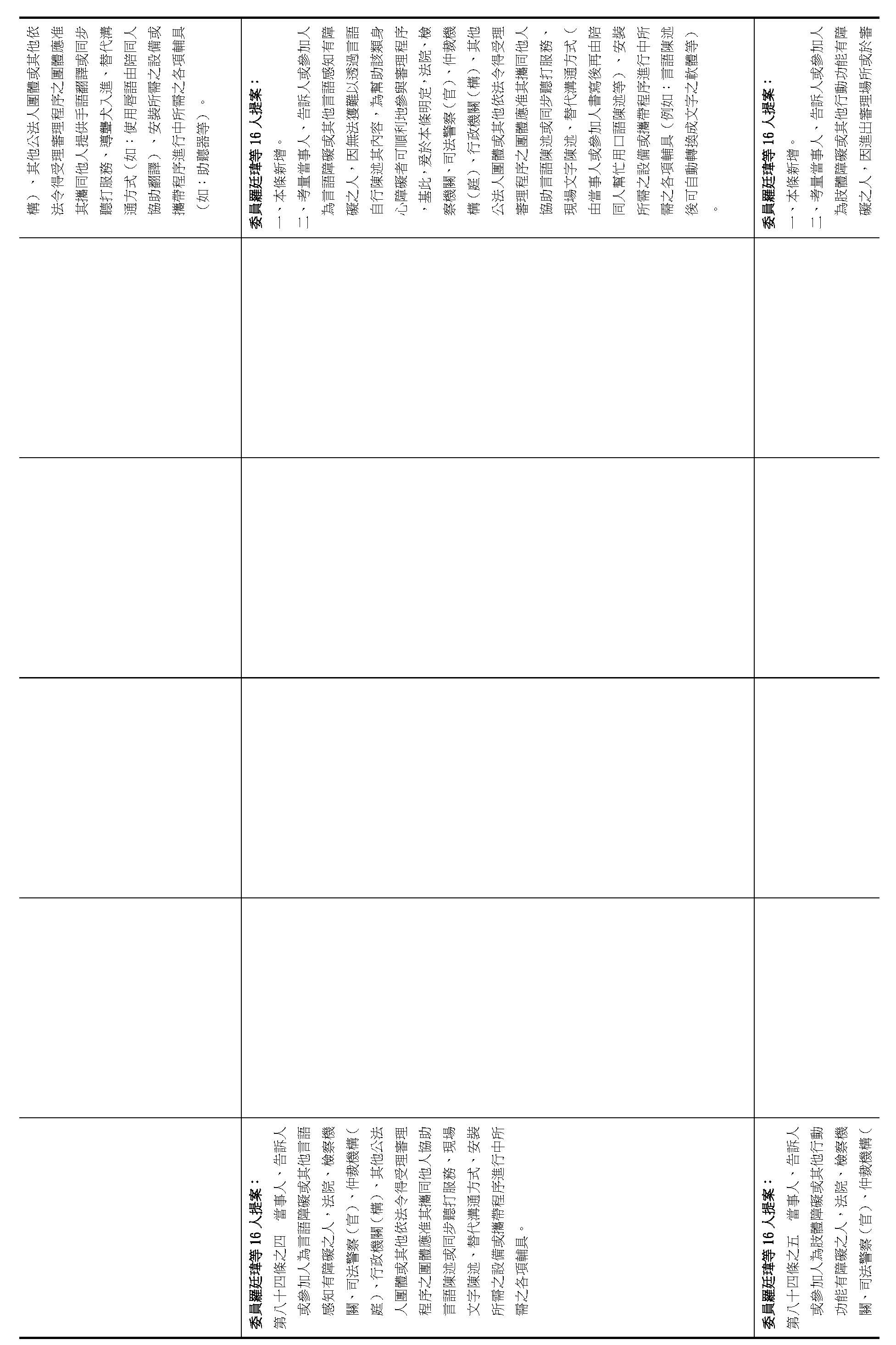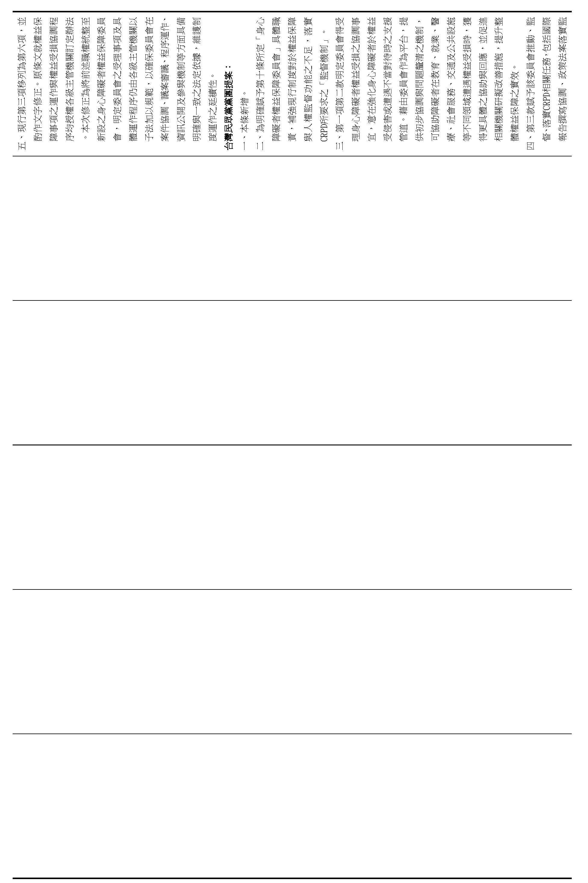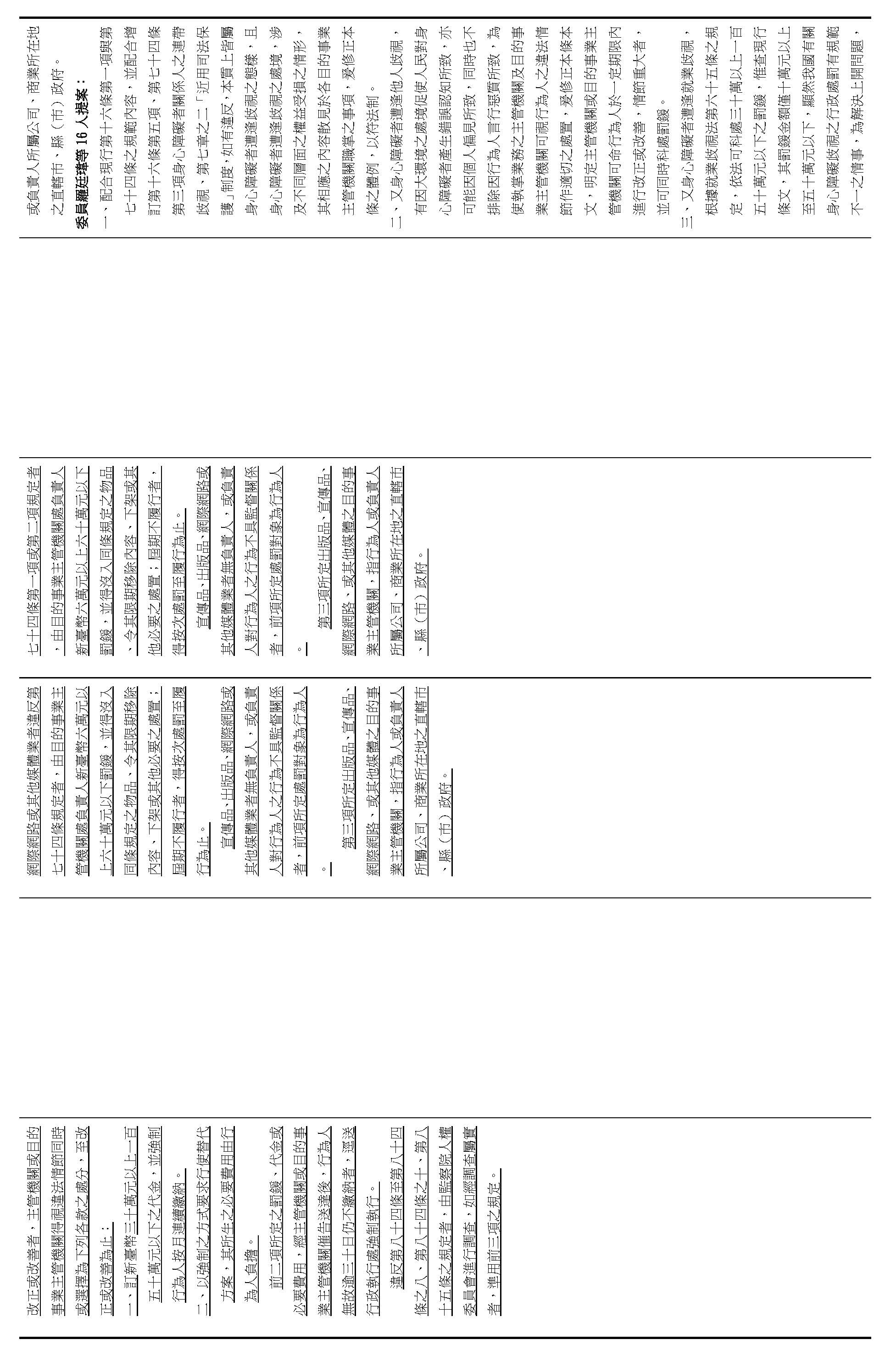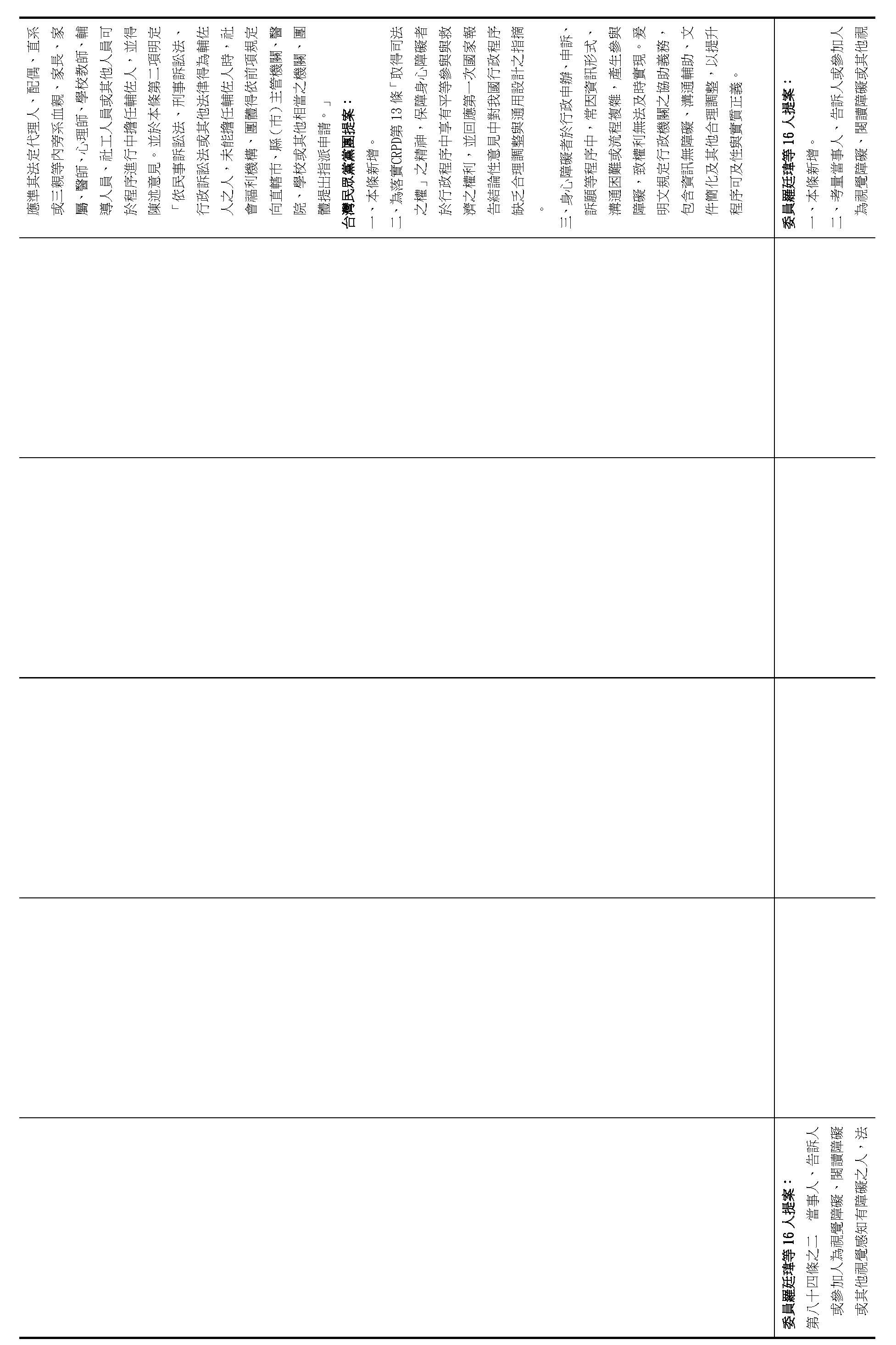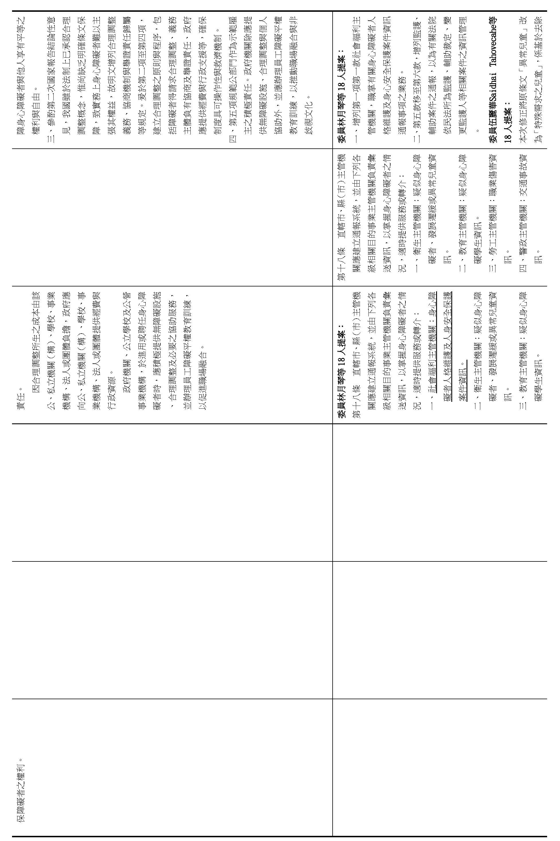 最後,有關林月琴委員等18人、伍麗華Saidhai Tahovecahe委員等18人、王育敏委員等17人以及台灣民眾黨黨團提案,明定各類傳播媒體之報導不得使用歧視性稱呼或描述,並配合修正罰則。對於各類媒體都不應有歧視性的報導,來落實平等及不歧視精神,本部敬表支持。至於增訂罰則的部分,考慮到型態的多元化,建議如果要訂定罰則的話,要審慎的研議。