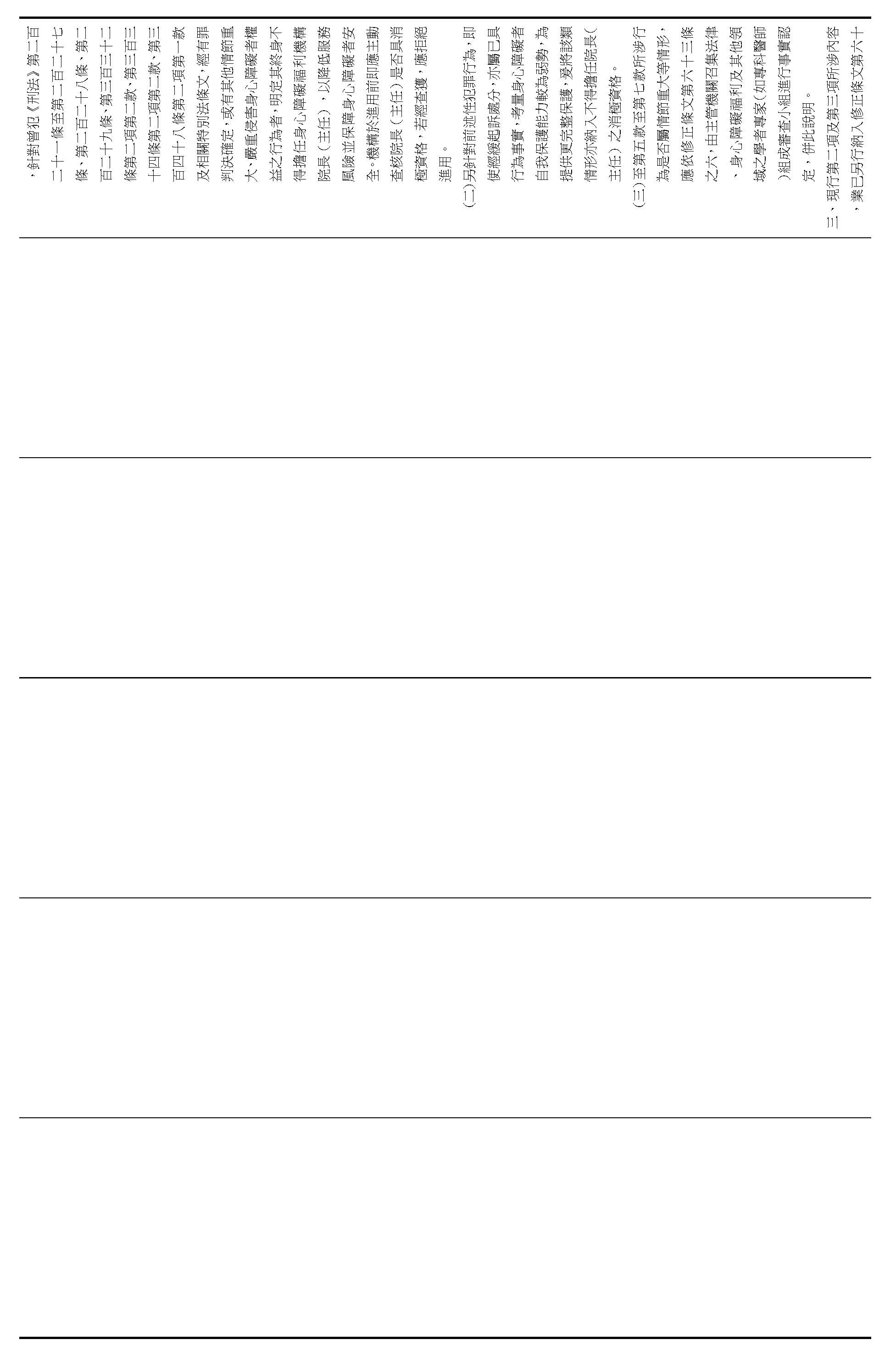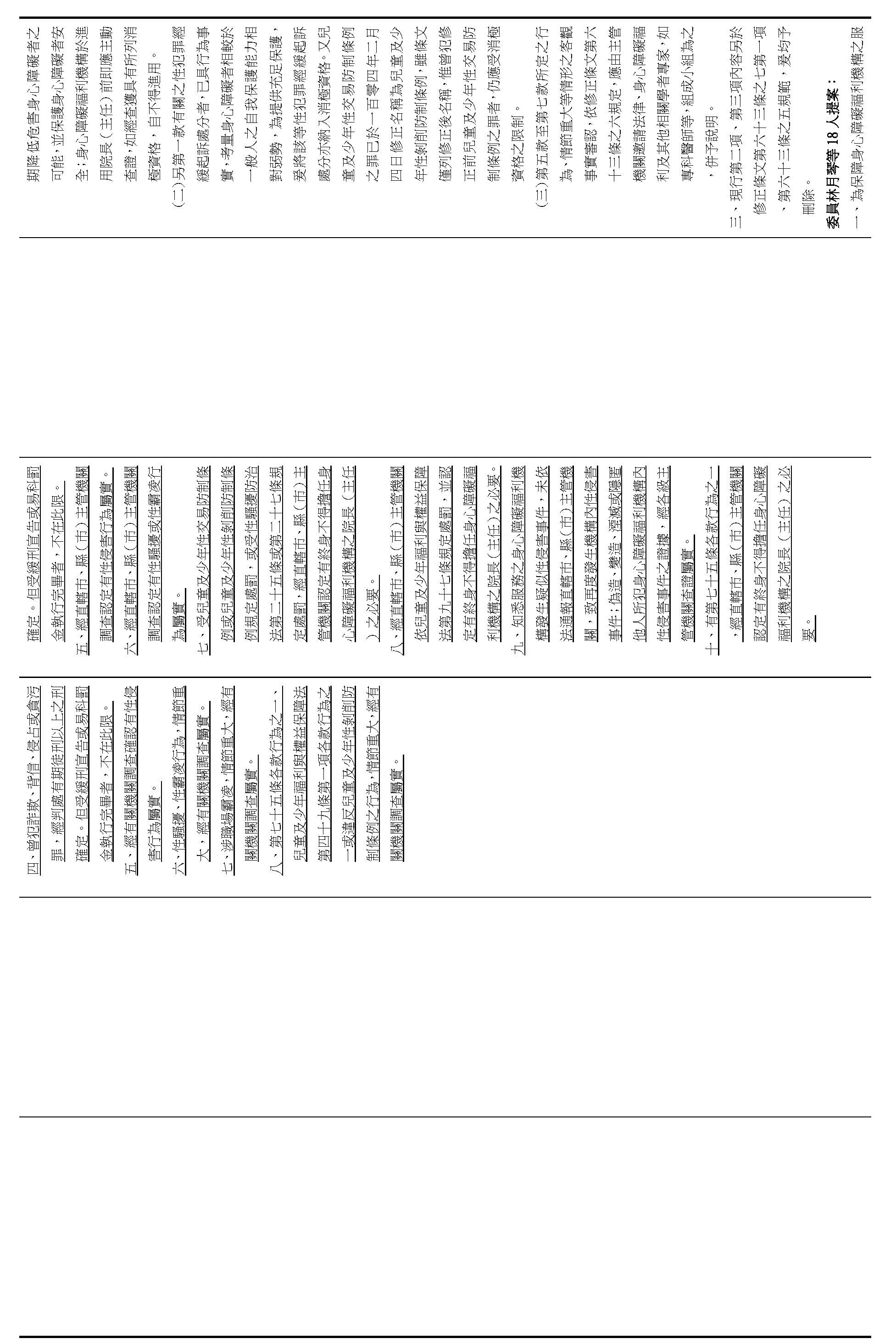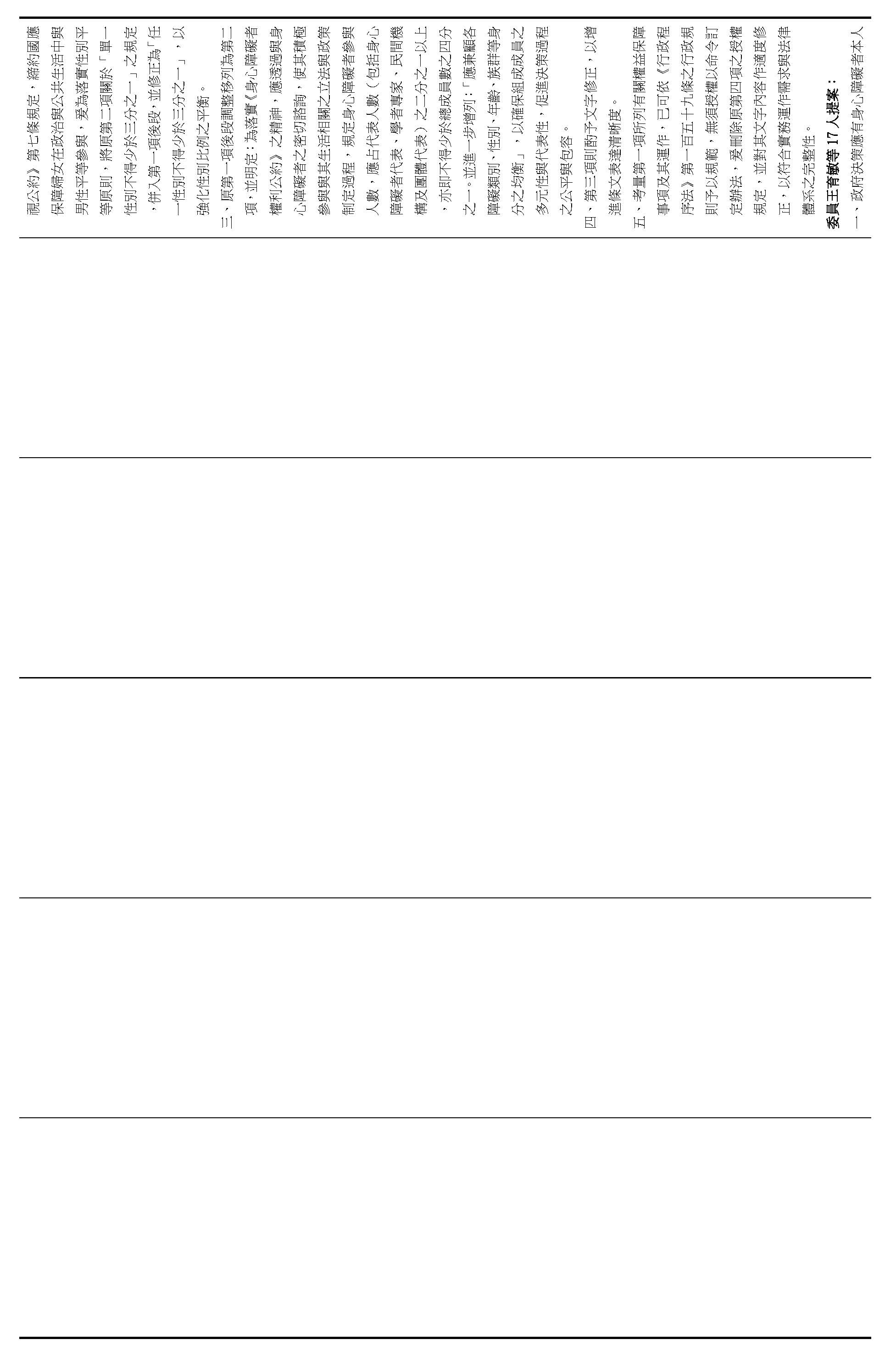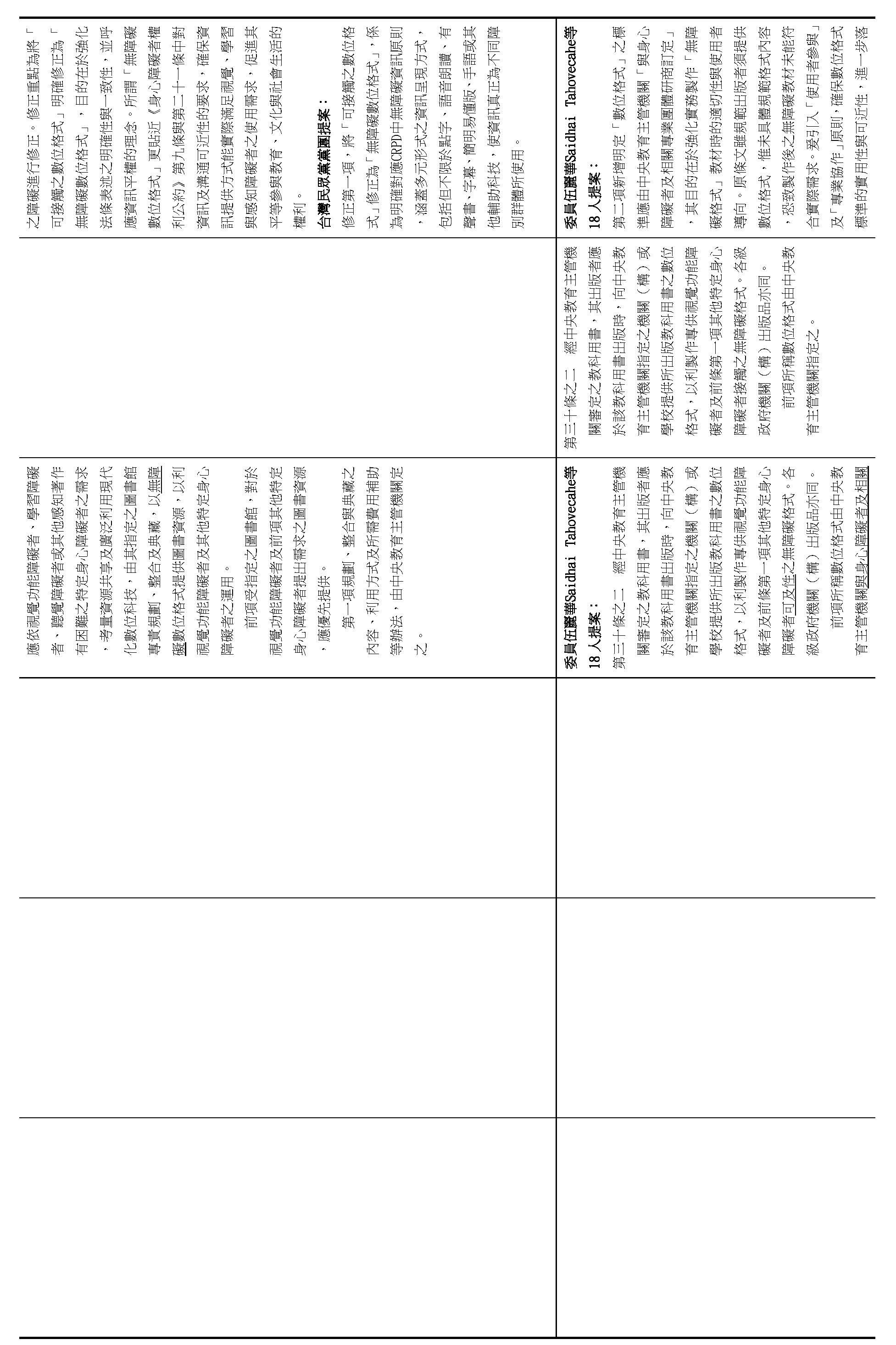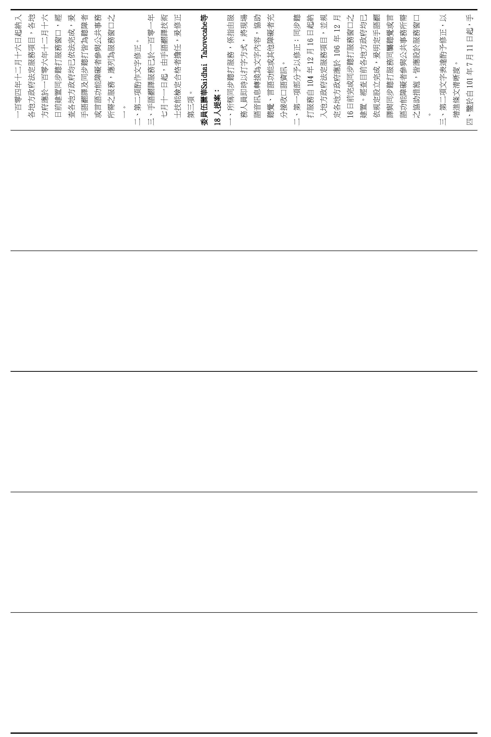 最後,有關林月琴委員等18人、伍麗華Saidhai Tahovecahe委員等18人、王育敏委員等17人以及台灣民眾黨黨團提案,明定各類傳播媒體之報導不得使用歧視性稱呼或描述,並配合修正罰則。對於各類媒體都不應有歧視性的報導,來落實平等及不歧視精神,本部敬表支持。至於增訂罰則的部分,考慮到型態的多元化,建議如果要訂定罰則的話,要審慎的研議。