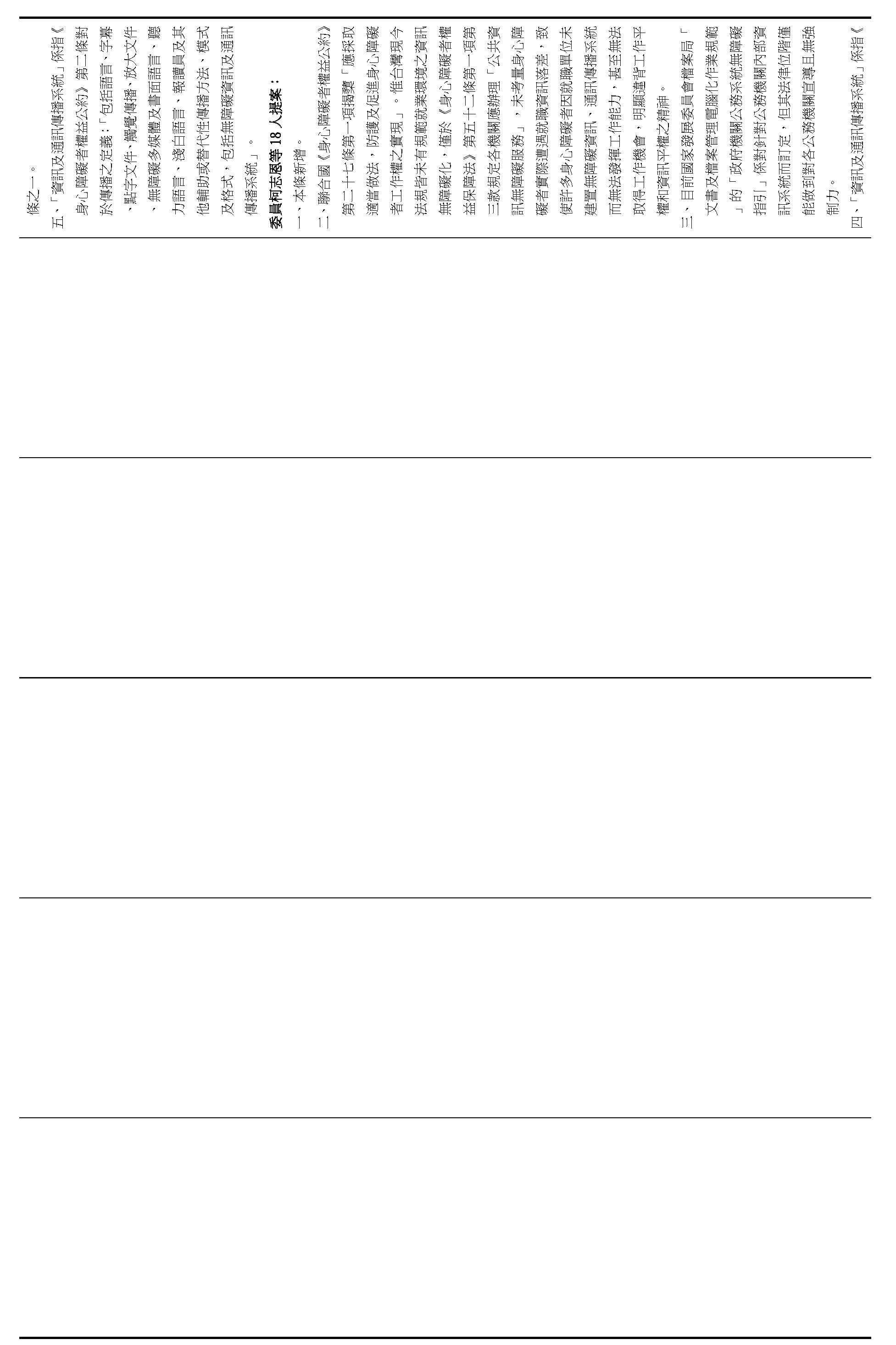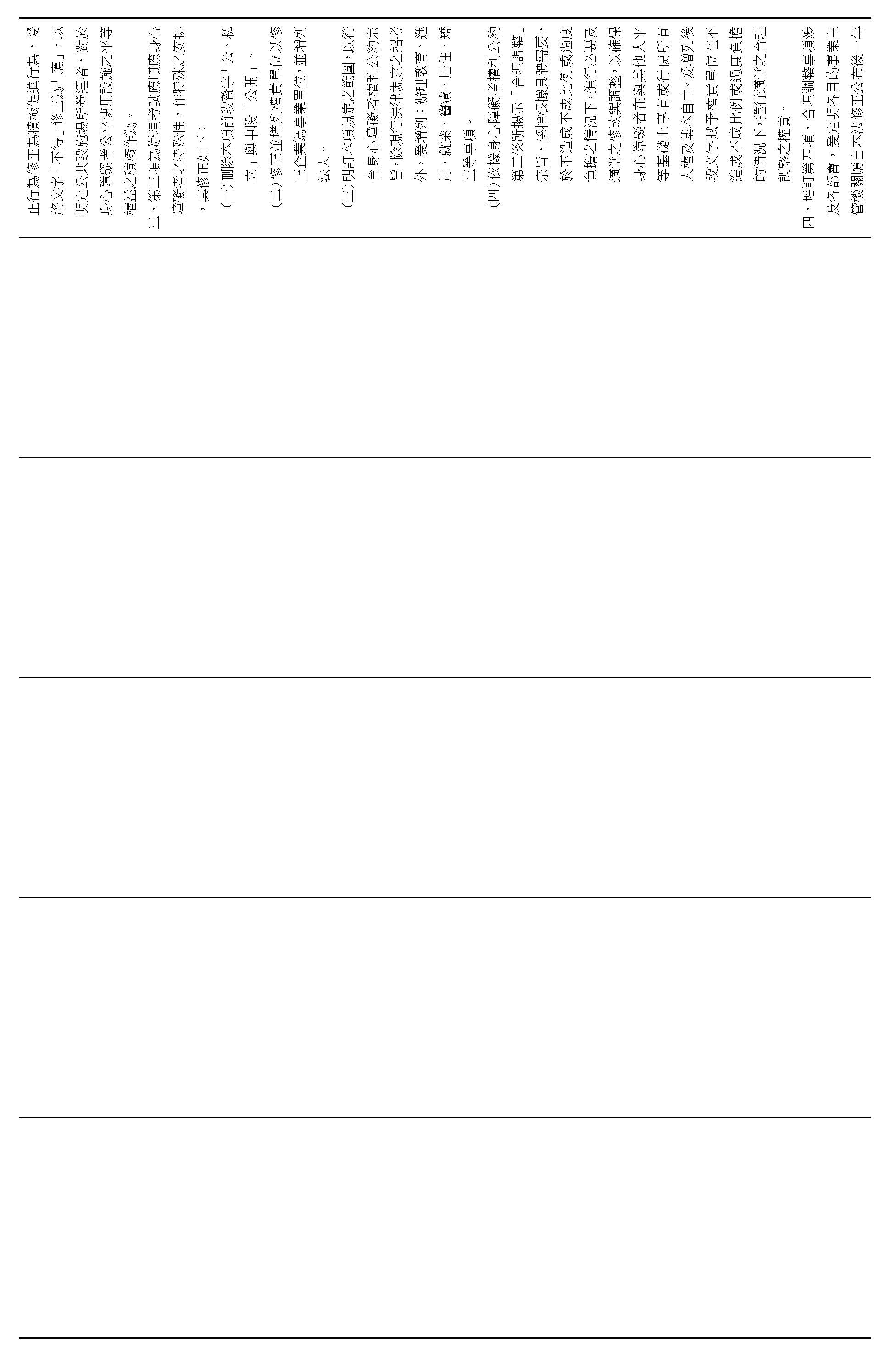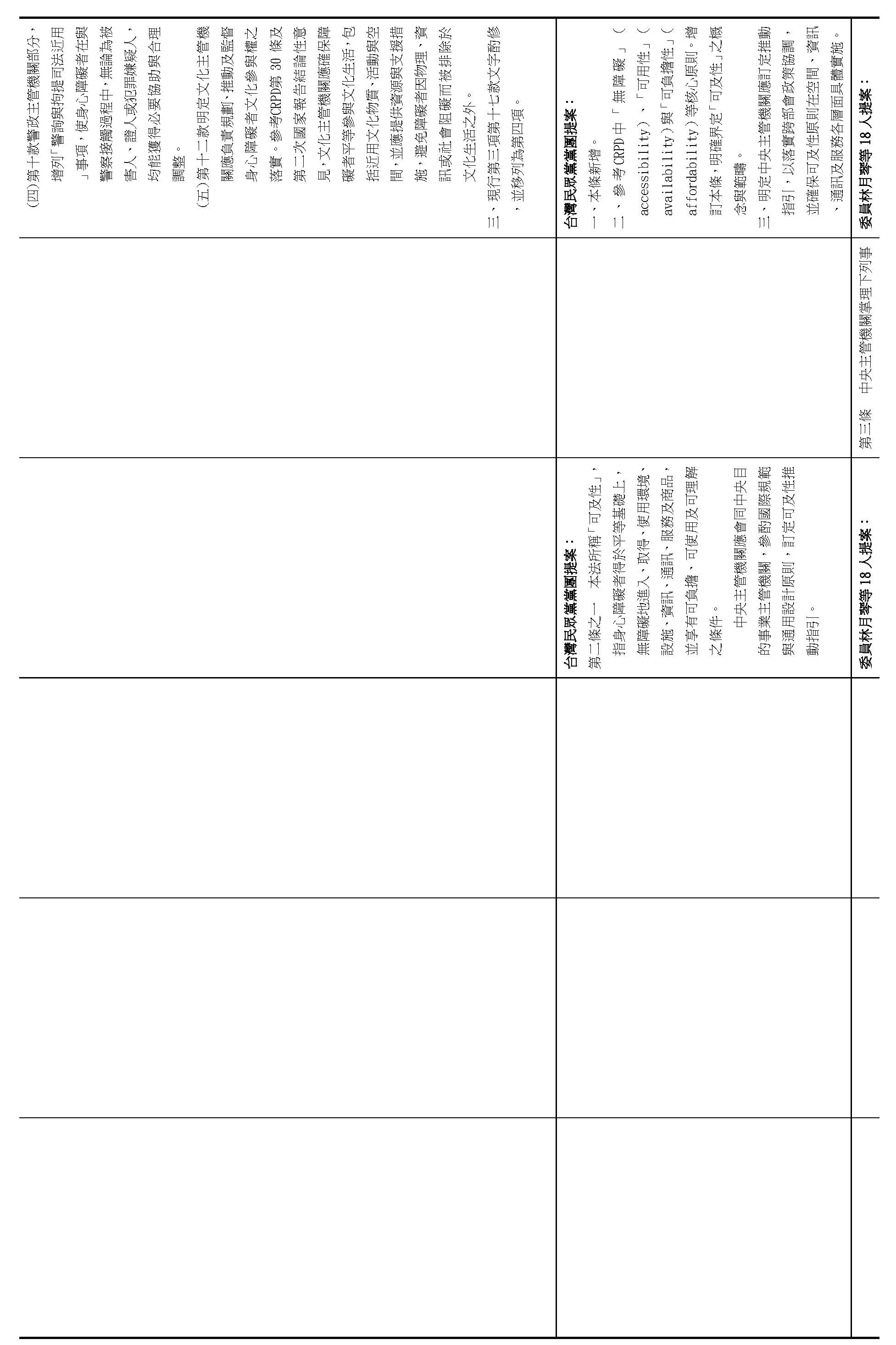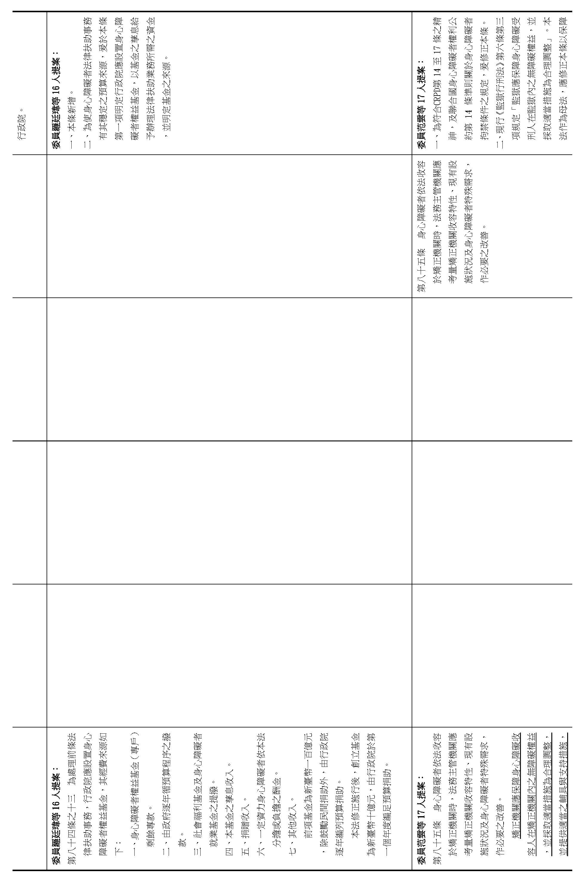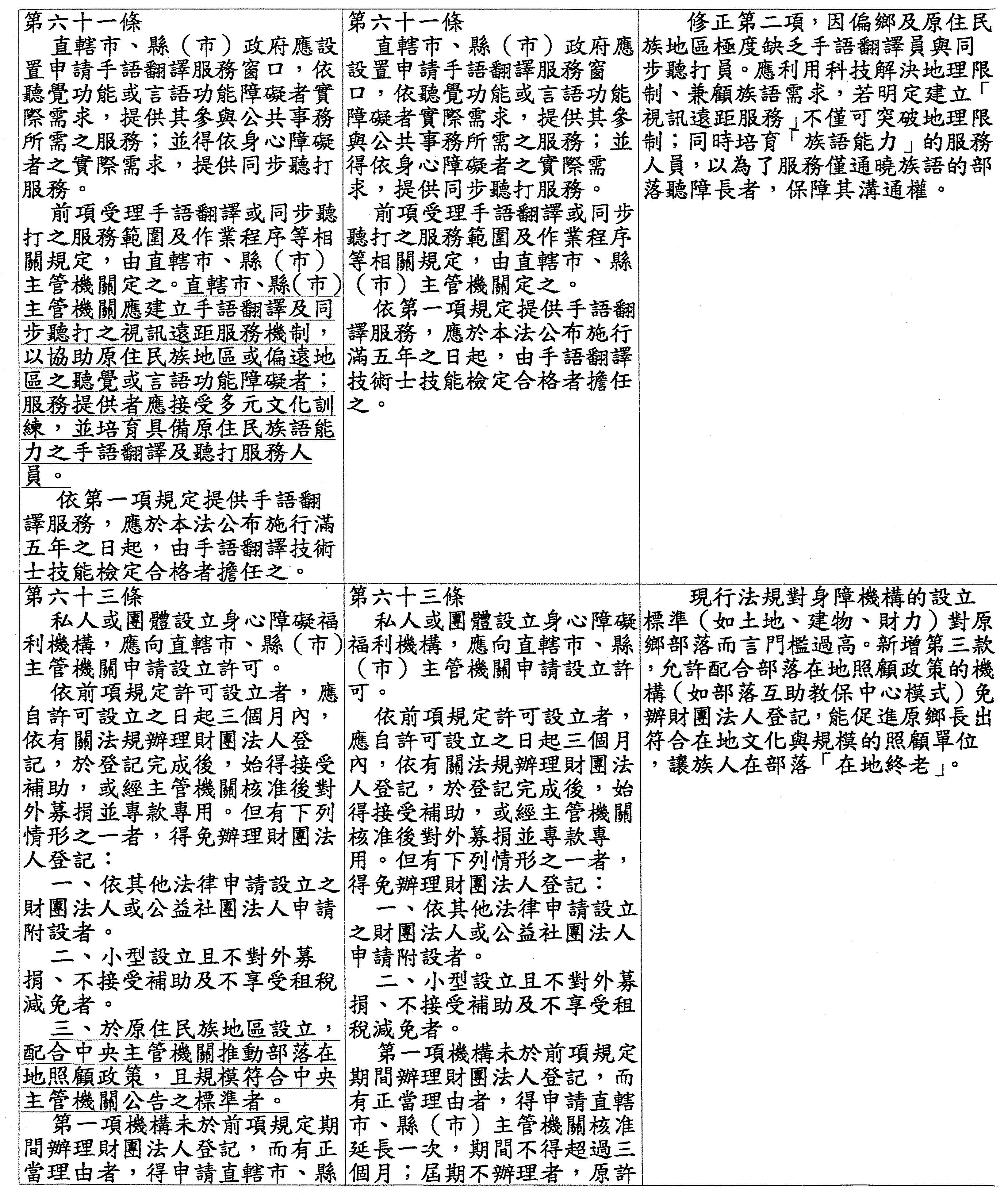 以上是本部對於委員修訂版本的初步意見,至於行政院的版本,目前也在積極的研修中,希望能夠很快地送到大院來併同審查。此外,本部也會持續與障礙團體溝通,提供更友善的服務。以上報告,再請大院各位委員指教,謝謝!