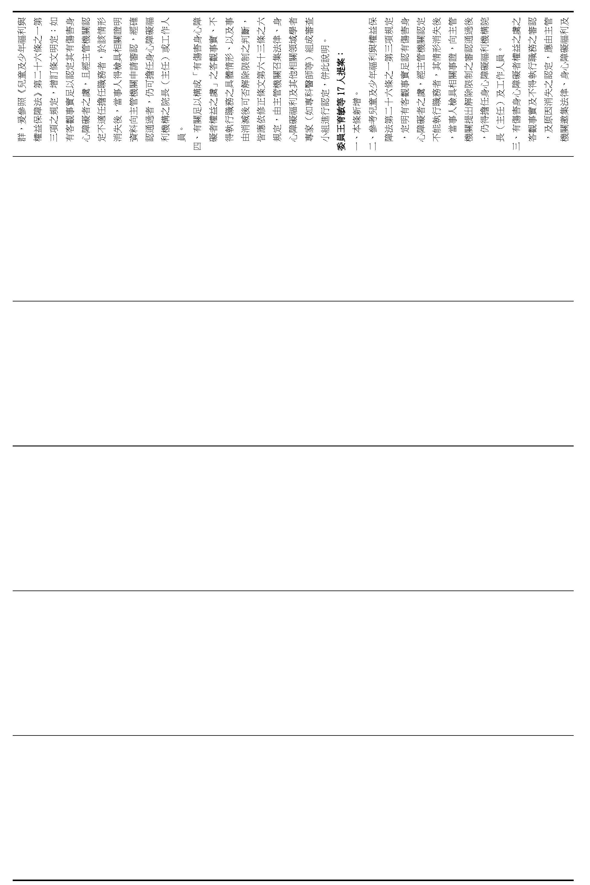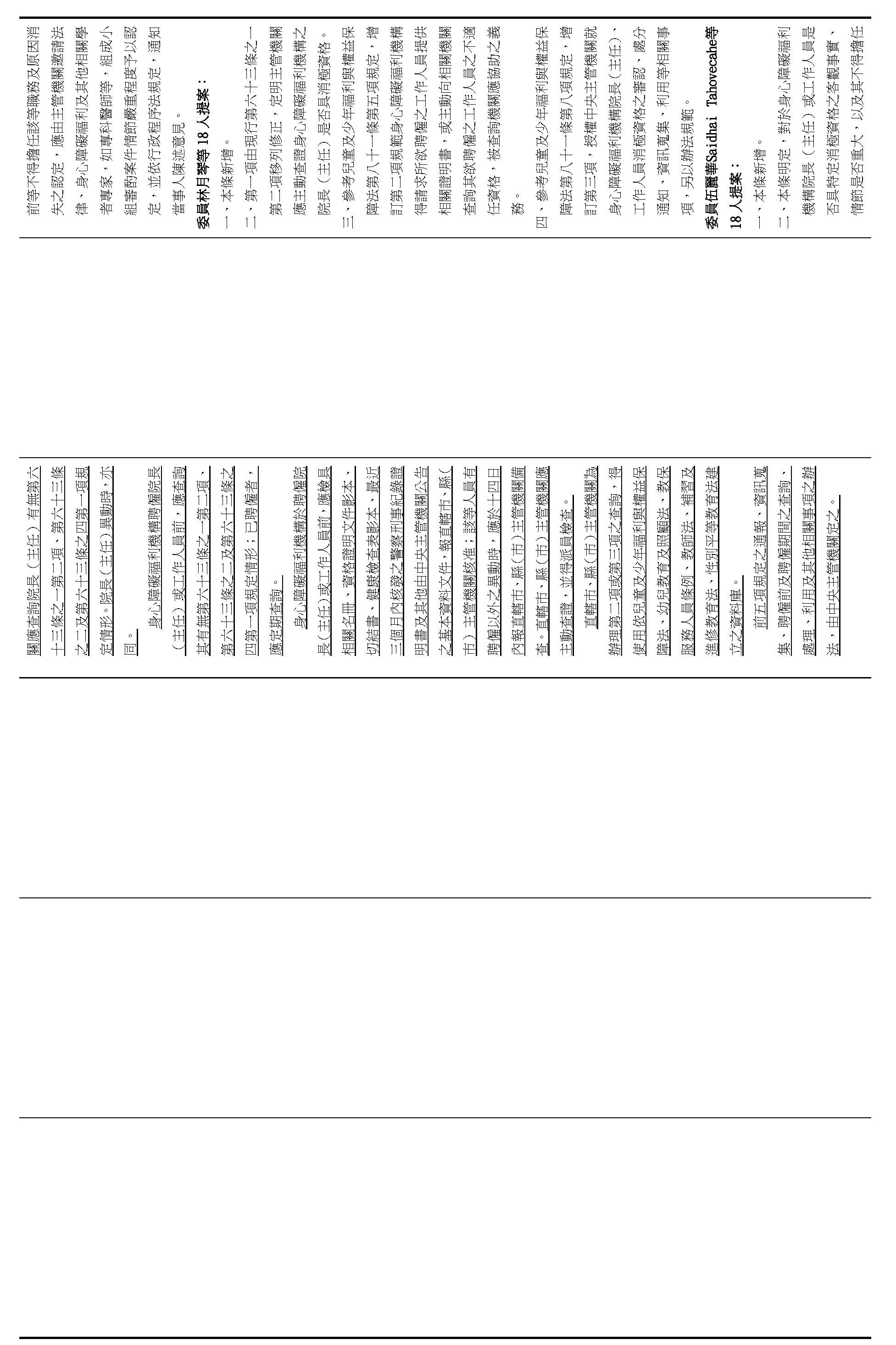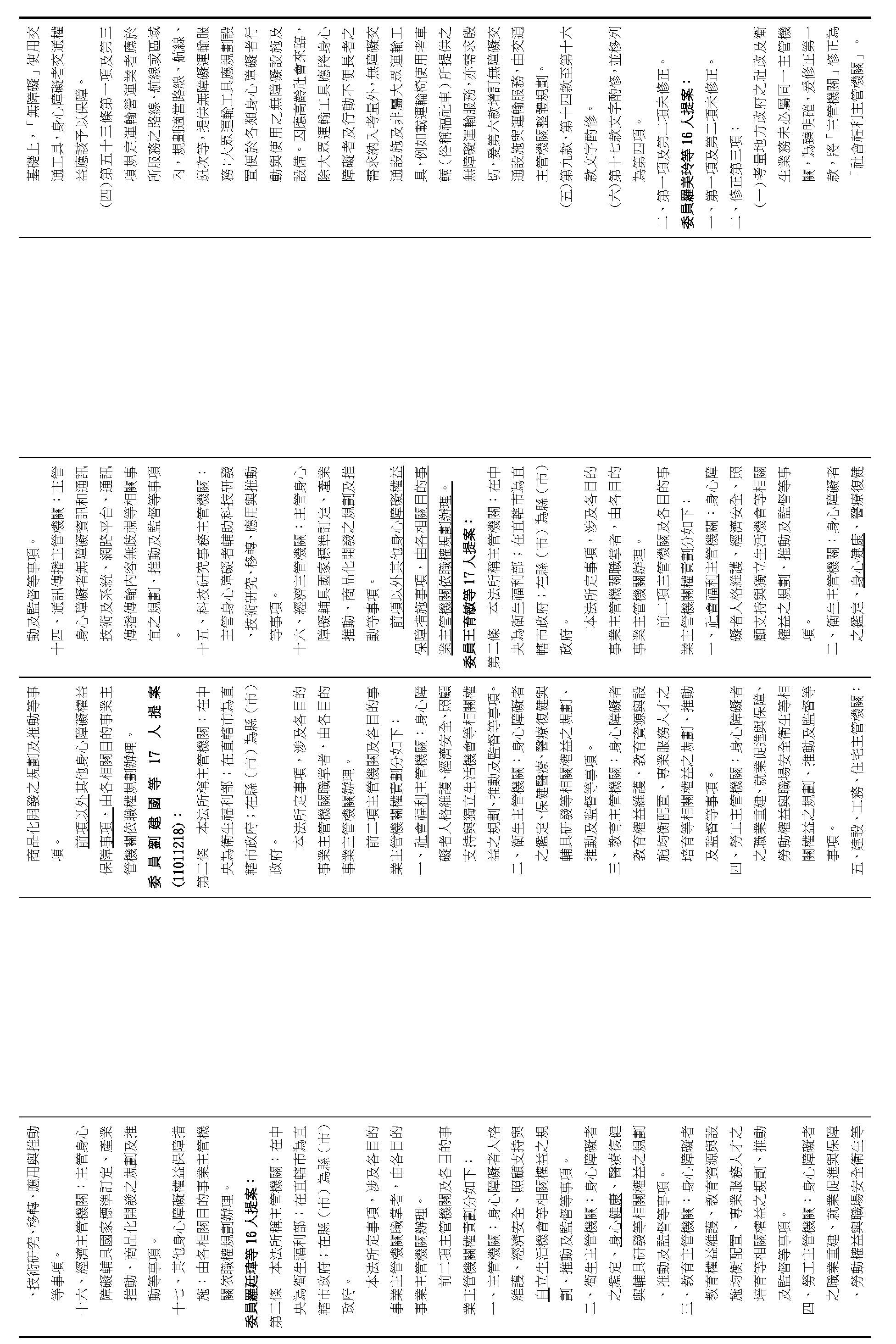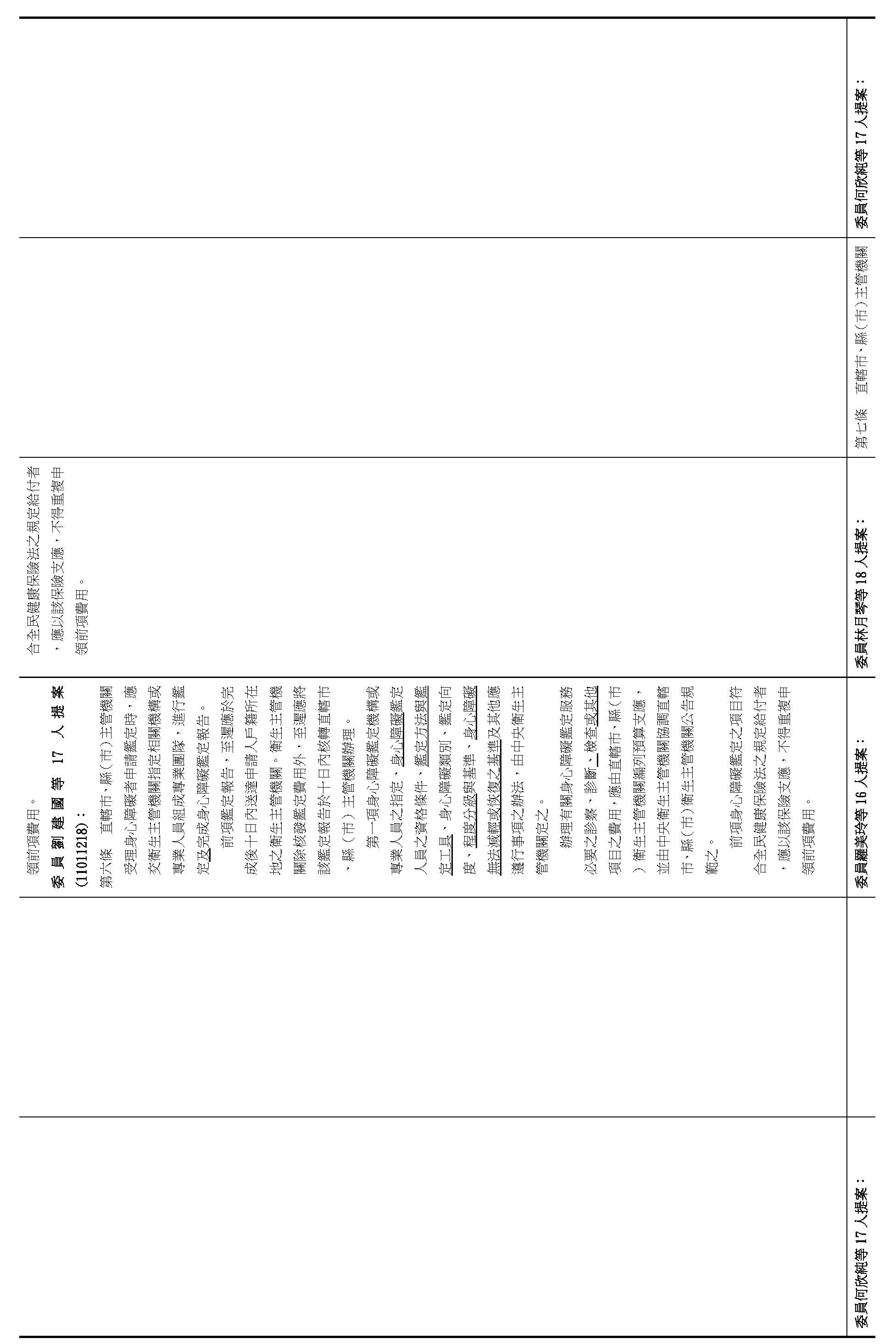 第四是有關林月琴委員等18人、伍麗華Saidhai Tahovecahe委員等18人、王育敏委員等17人提案,增訂身心障礙福利機構之院長(主任)或工作人員的消極資格,並訂定違反法規的罰則,來保障服務對象的權益,以確保機構服務品質,本部敬表支持。