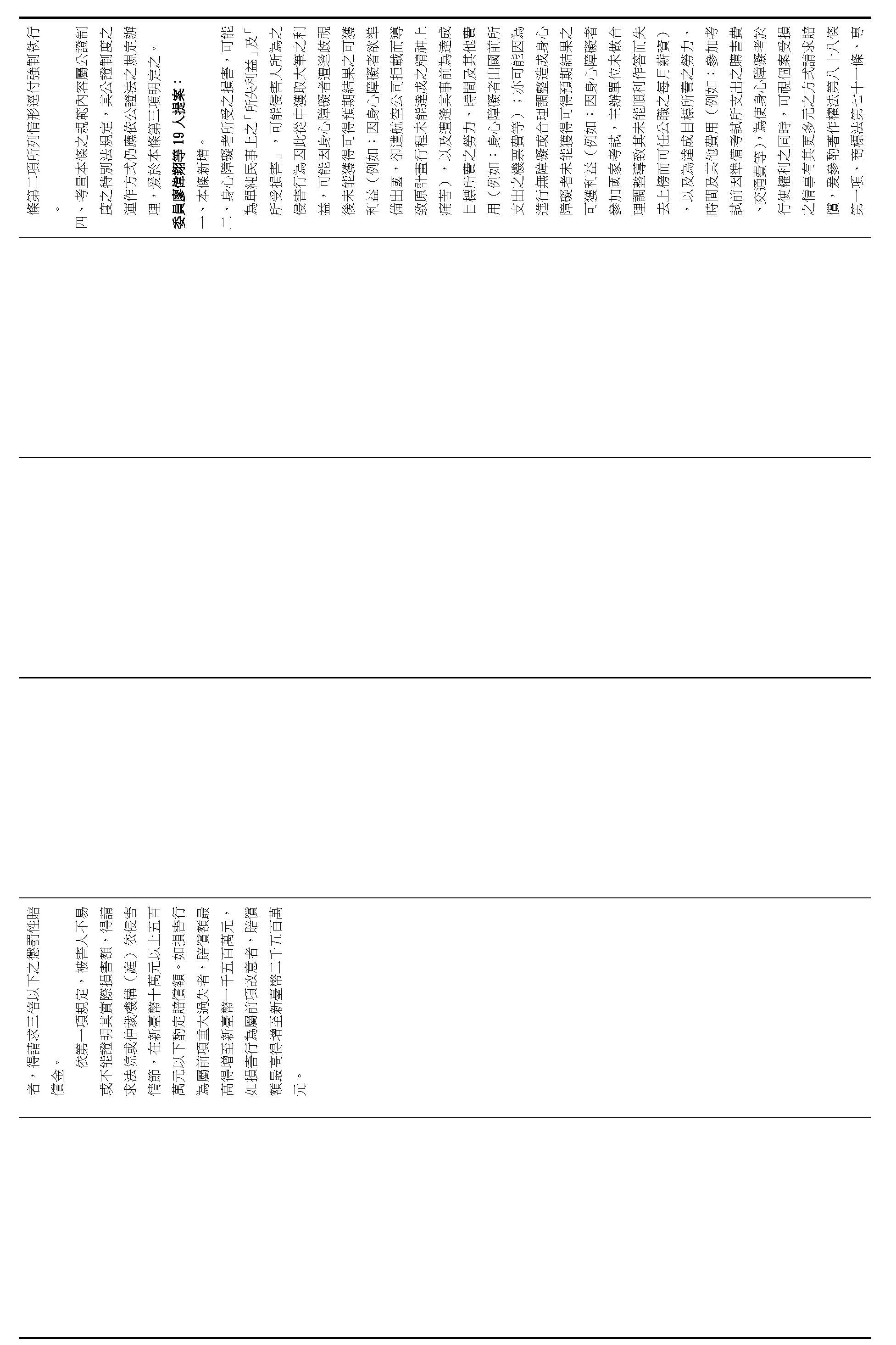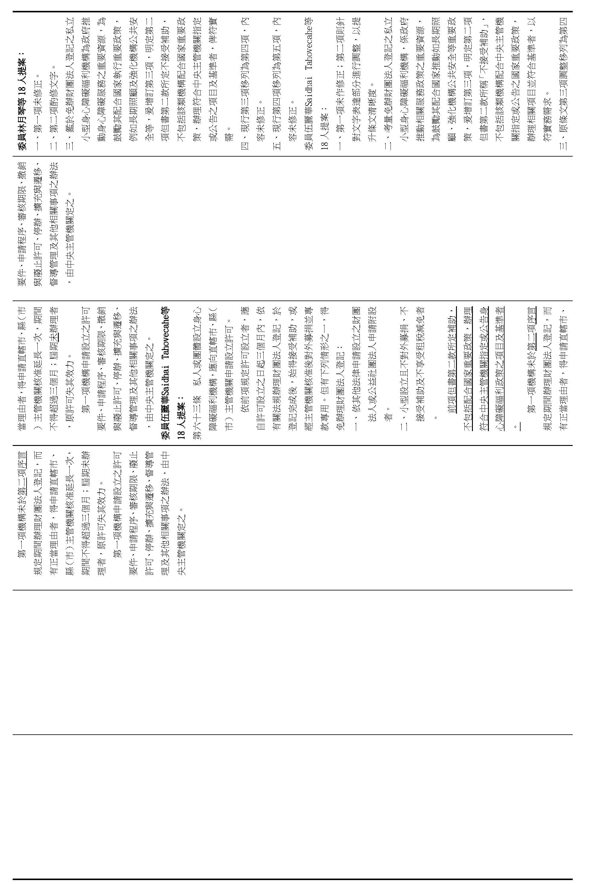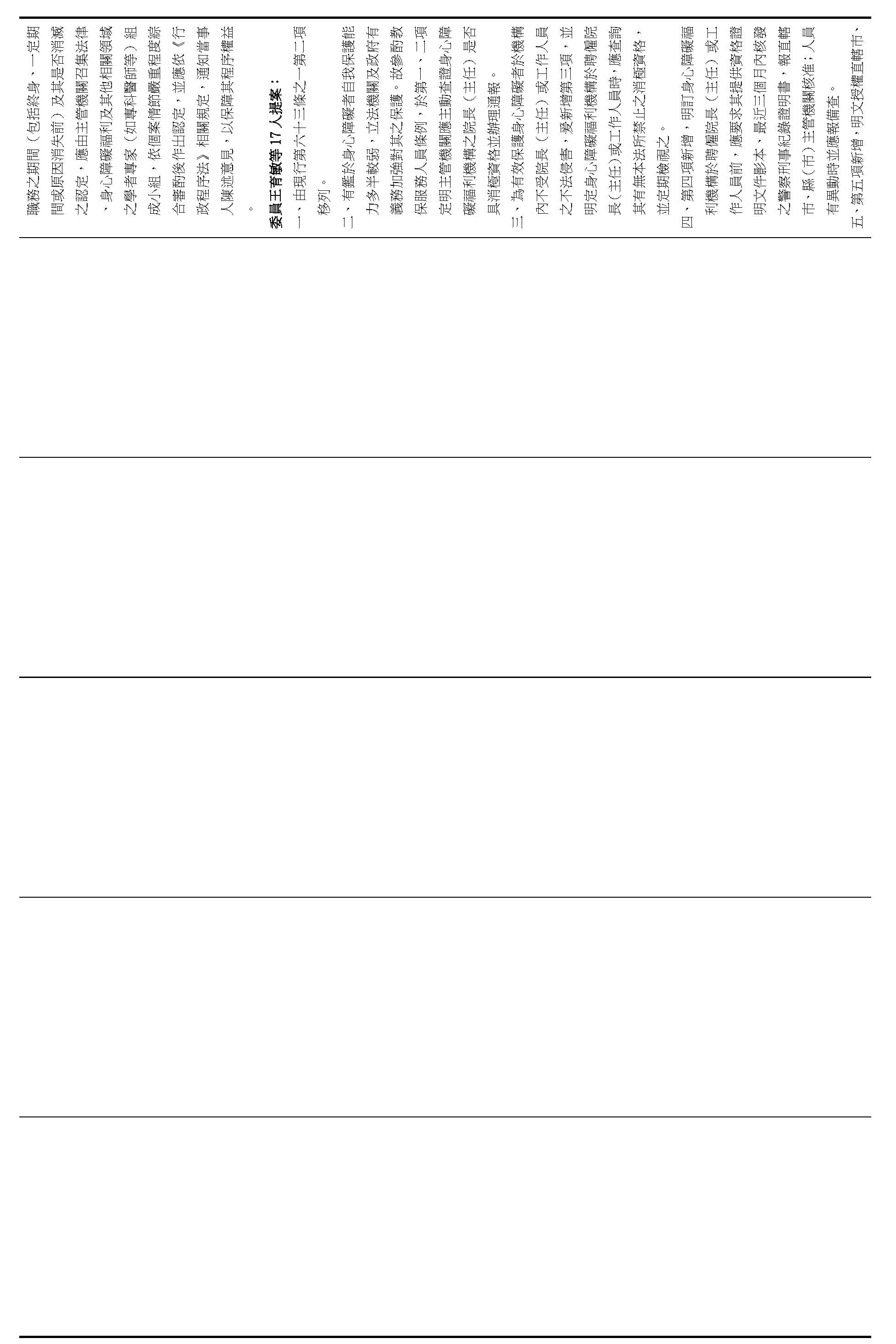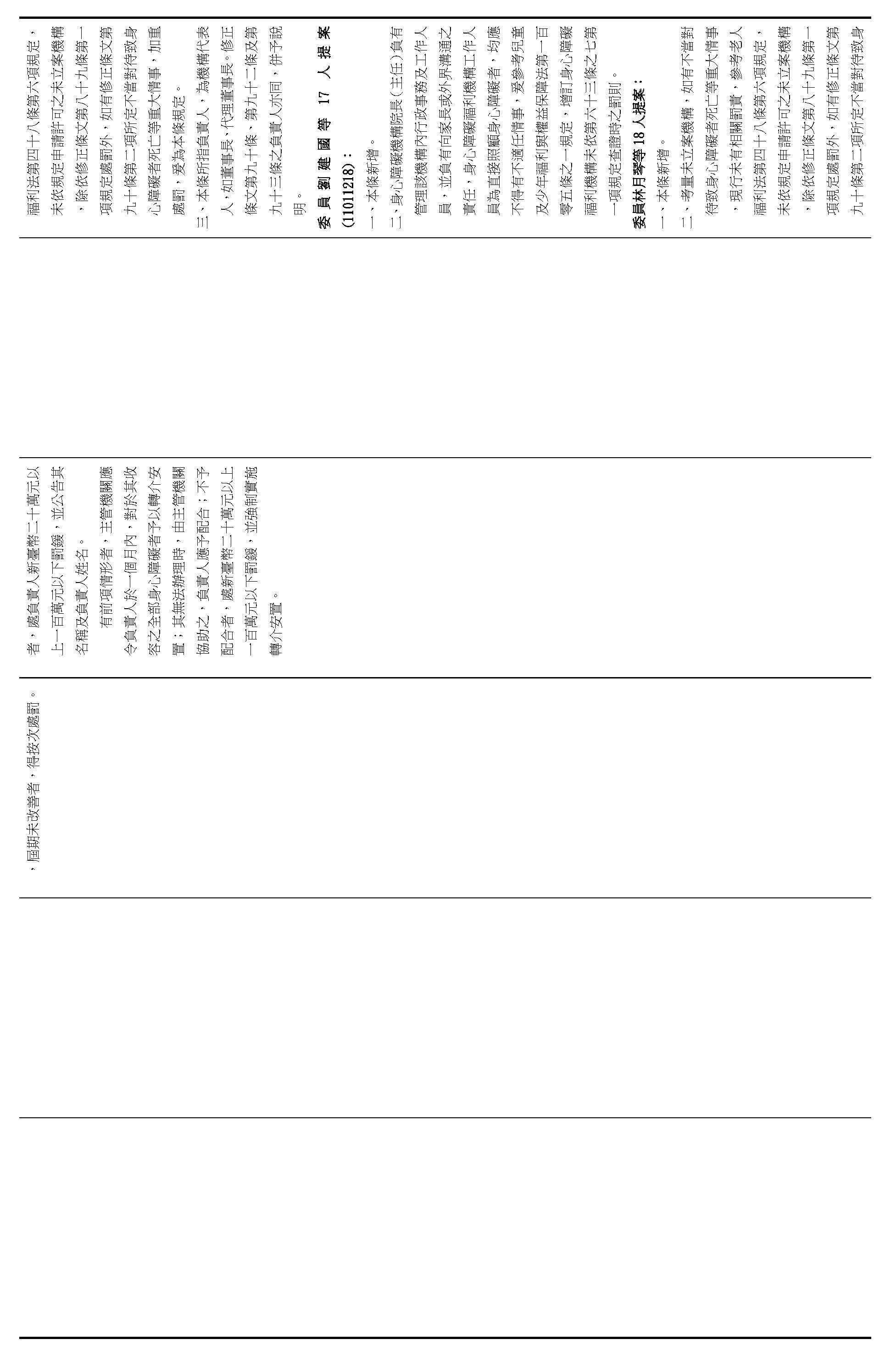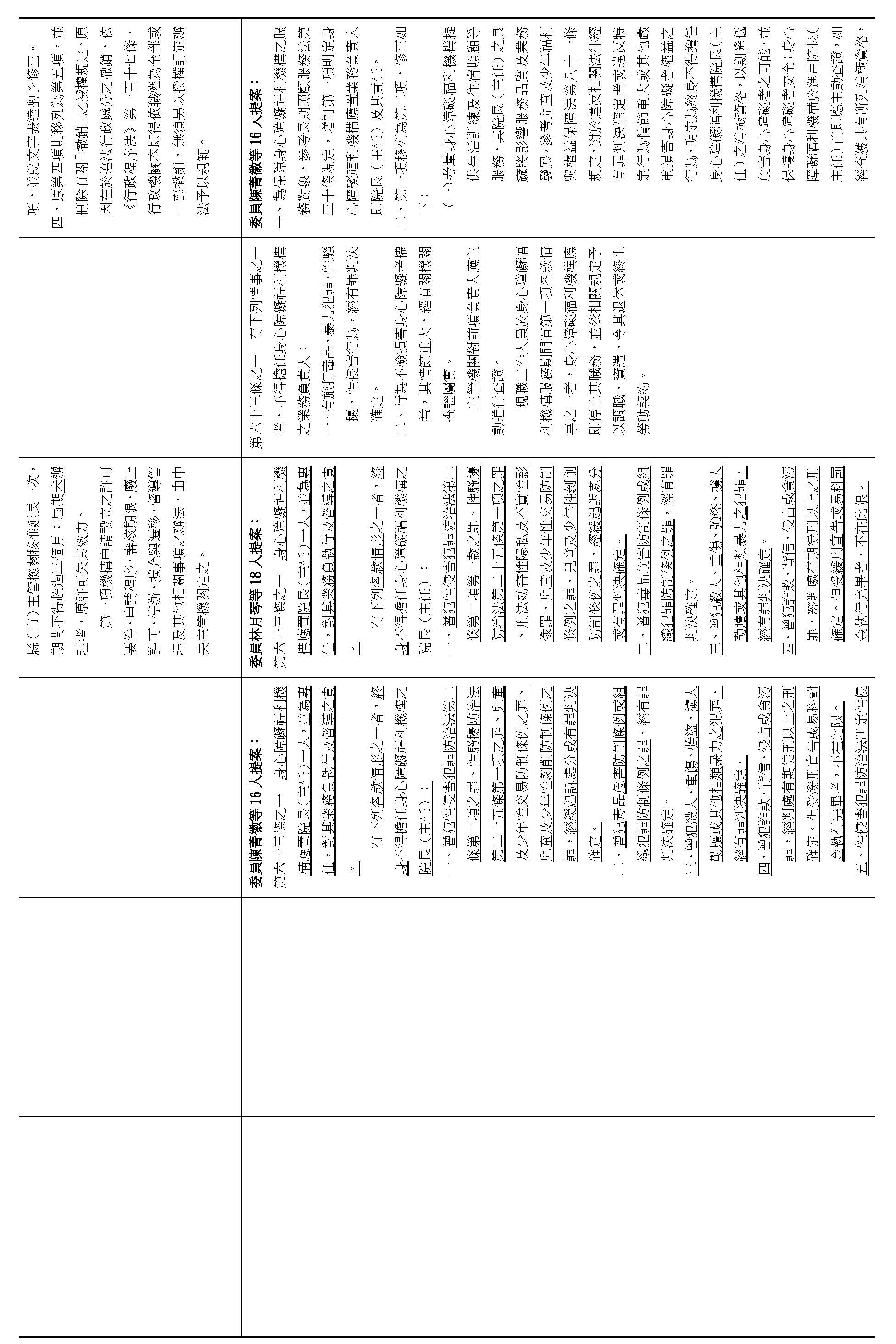 第四是有關林月琴委員等18人、伍麗華Saidhai Tahovecahe委員等18人、王育敏委員等17人提案,增訂身心障礙福利機構之院長(主任)或工作人員的消極資格,並訂定違反法規的罰則,來保障服務對象的權益,以確保機構服務品質,本部敬表支持。