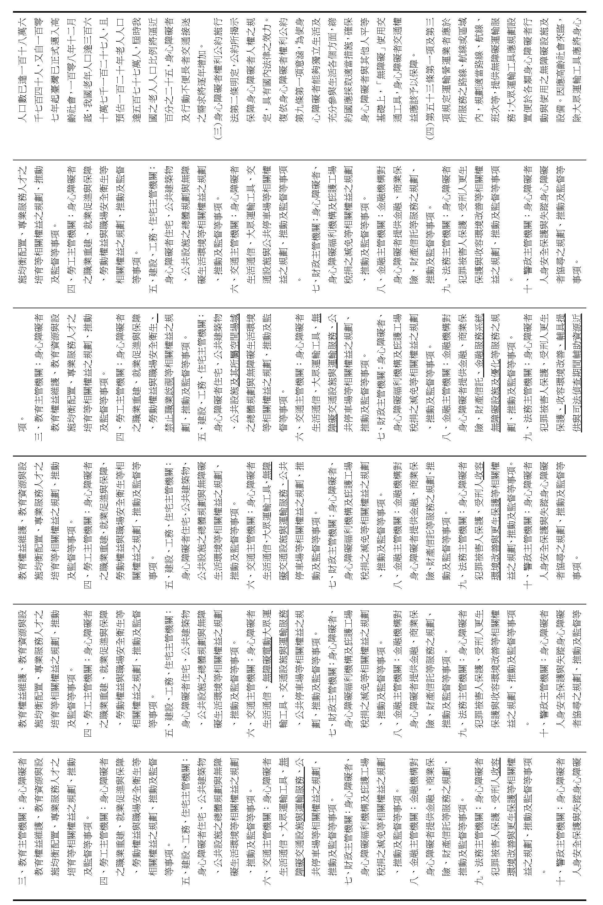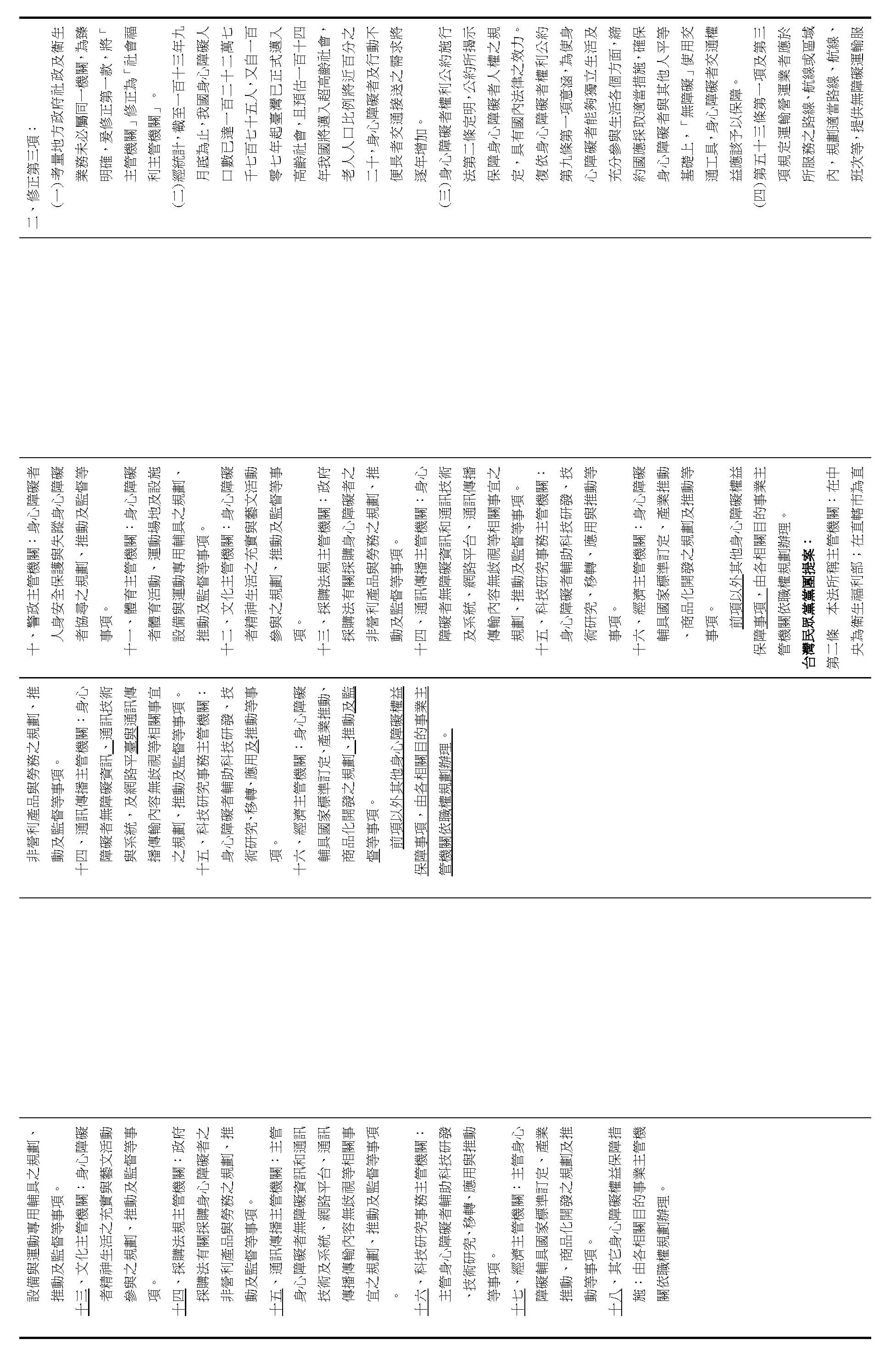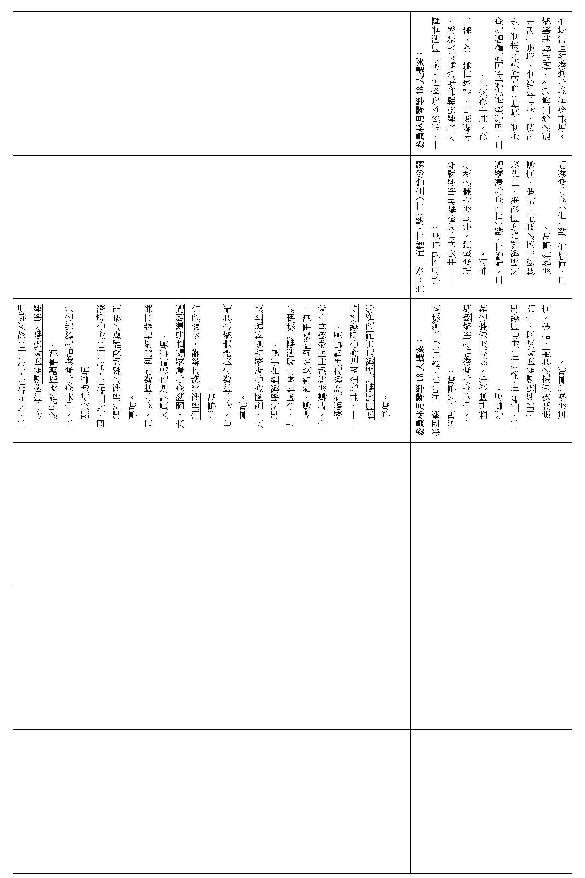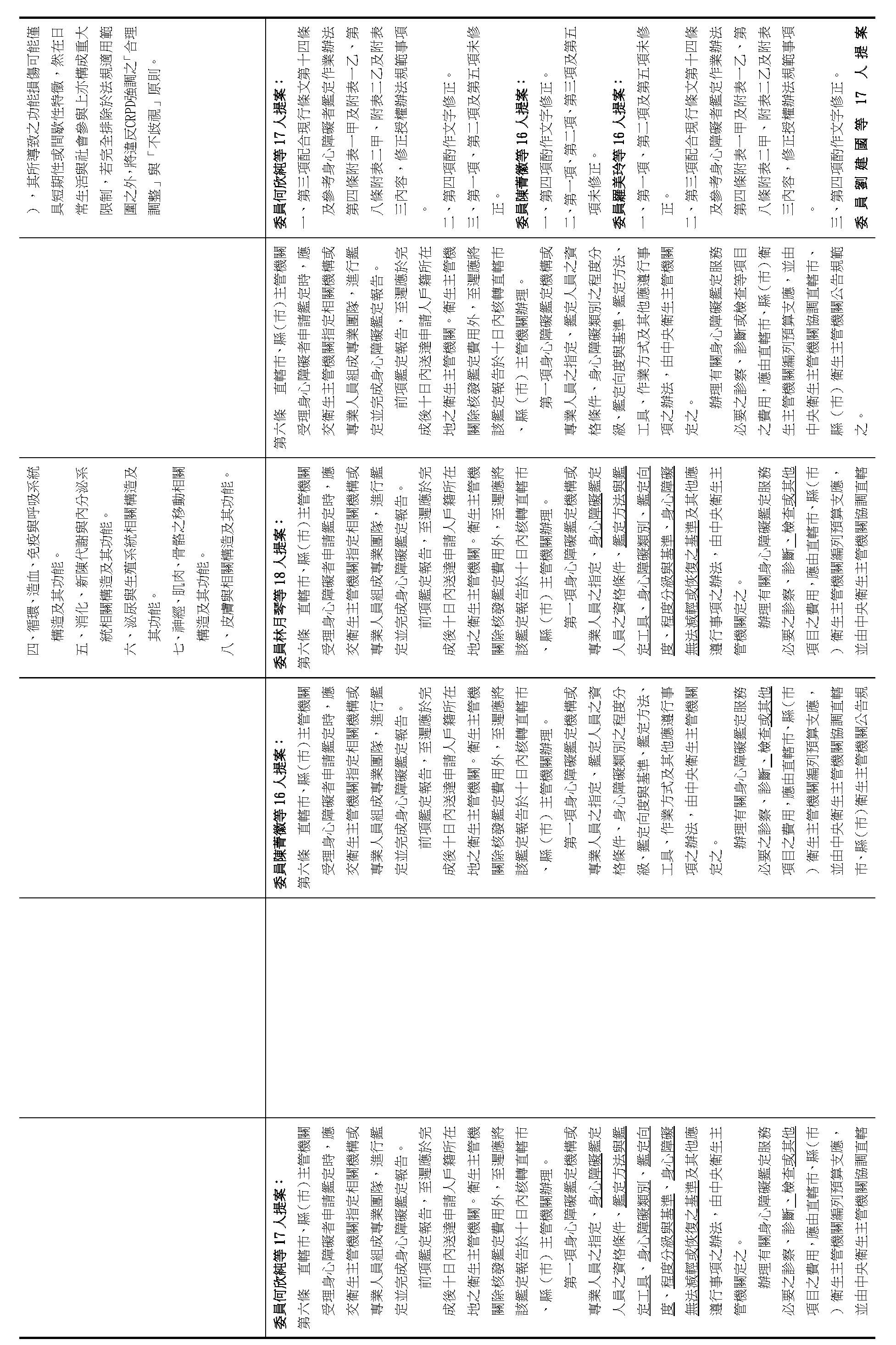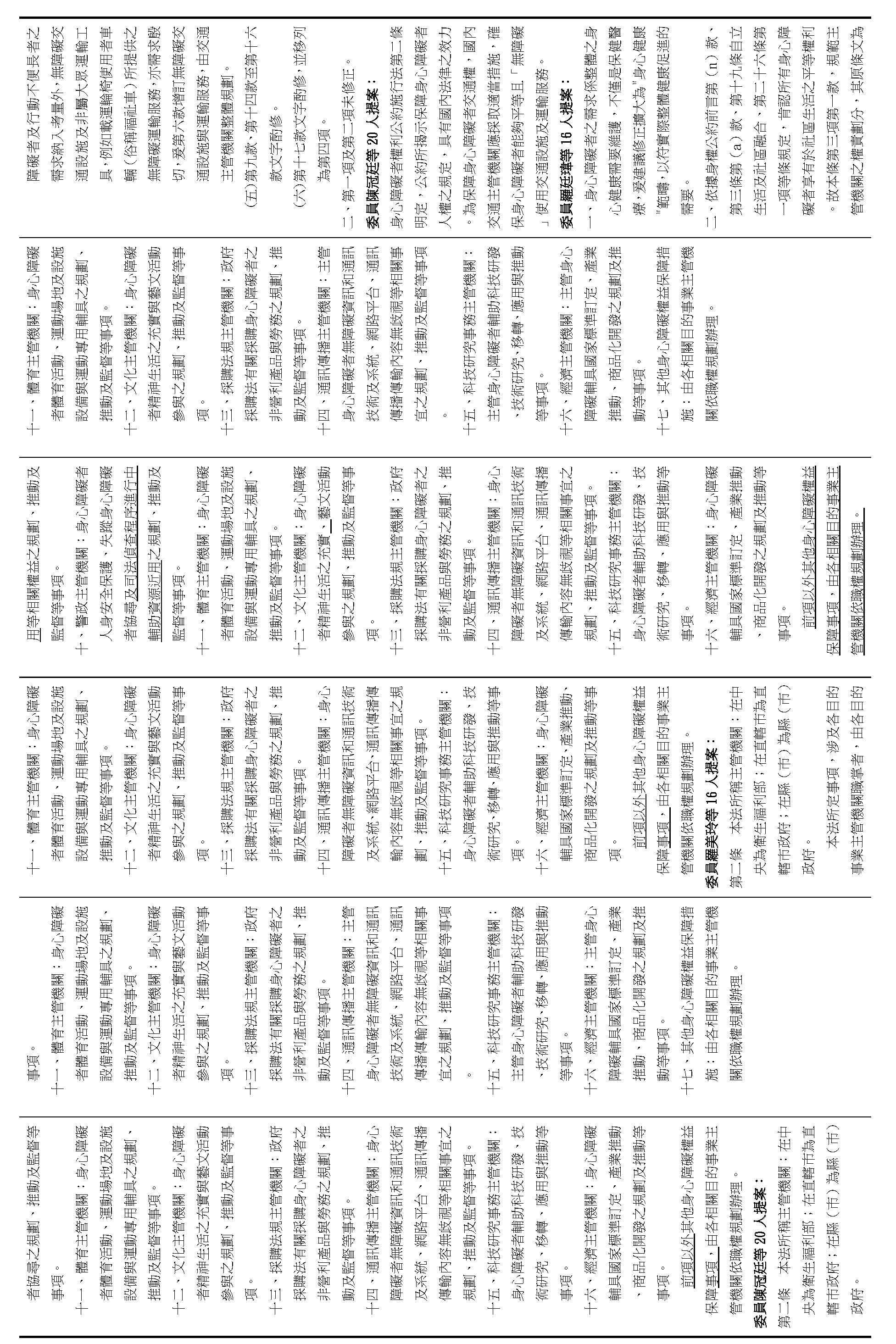 (十五)委員林楚茵等20人擬具「身心障礙者權益保障法第十條條文修正草案」案。