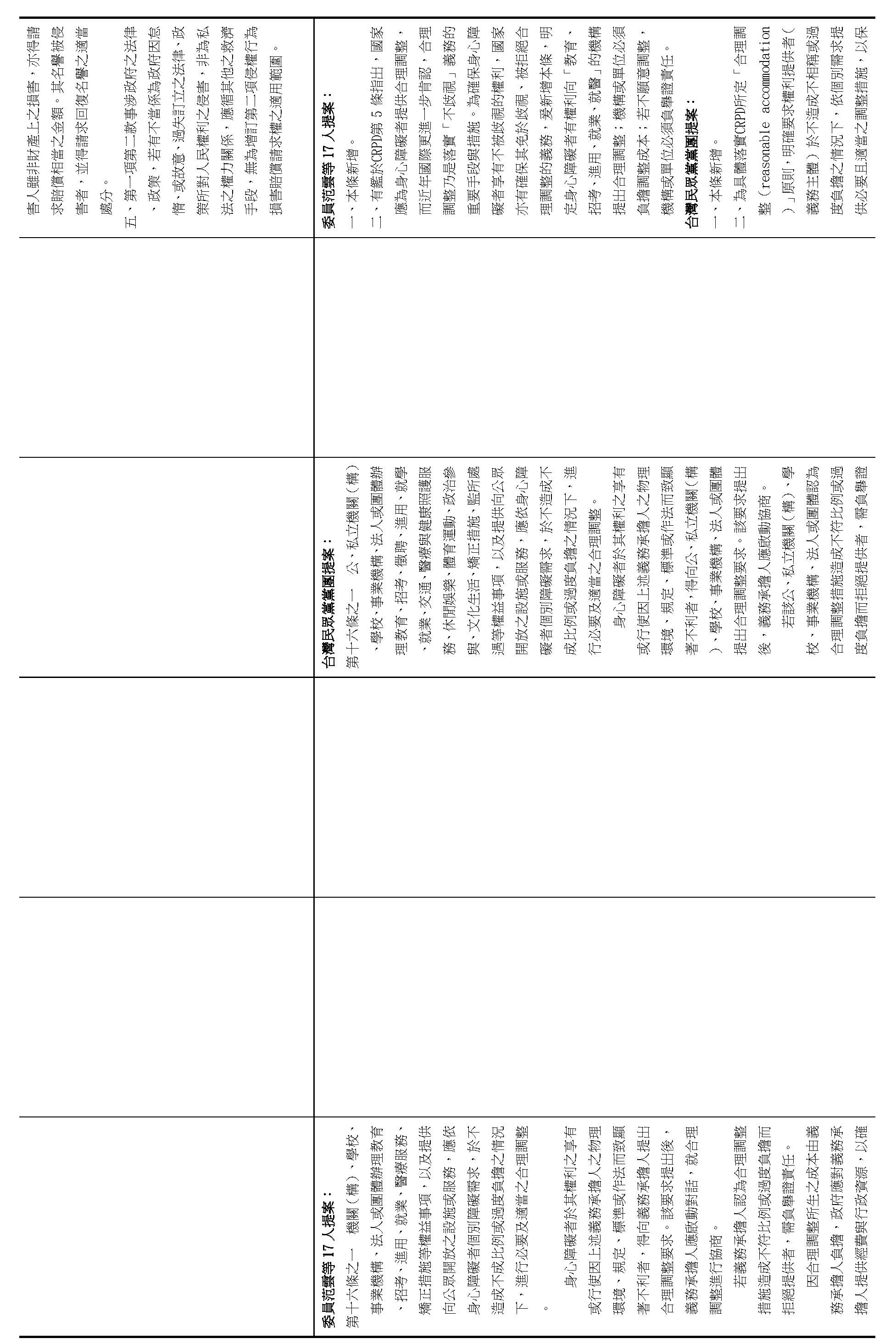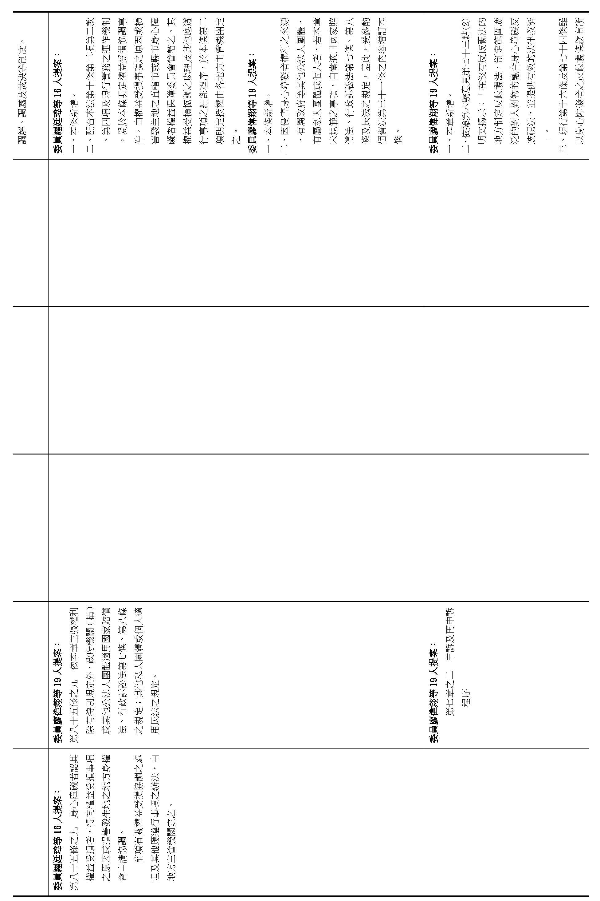 其次,對於林月琴委員等18人、伍麗華Saidhai Tahovecahe委員等18人、王育敏委員等17人以及台灣民眾黨黨團所提,增訂歧視範圍將合理調整及賠償請求權部分,擴大歧視的規定跟增加賠償的請求權。在行政院的版本裡,目前也在研議反歧視法的草案,為了避免未來法規的競合關係,我們建議配合整個該法的相關規定,做一致性的調整。至於合理調整規定入法的部分,本部敬表支持,希望能夠透過社會宣導及教育,讓這樣新的概念逐步普及。