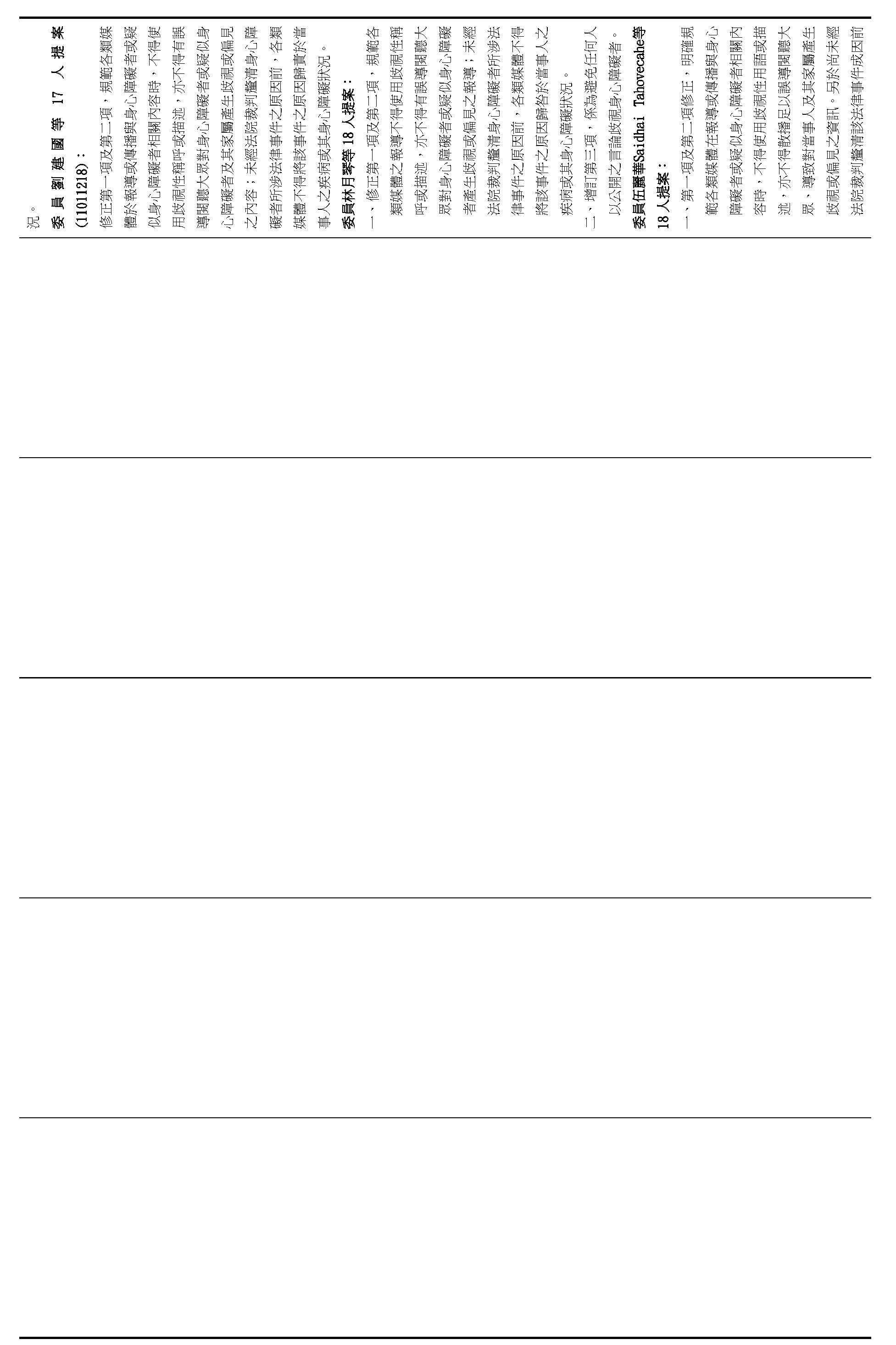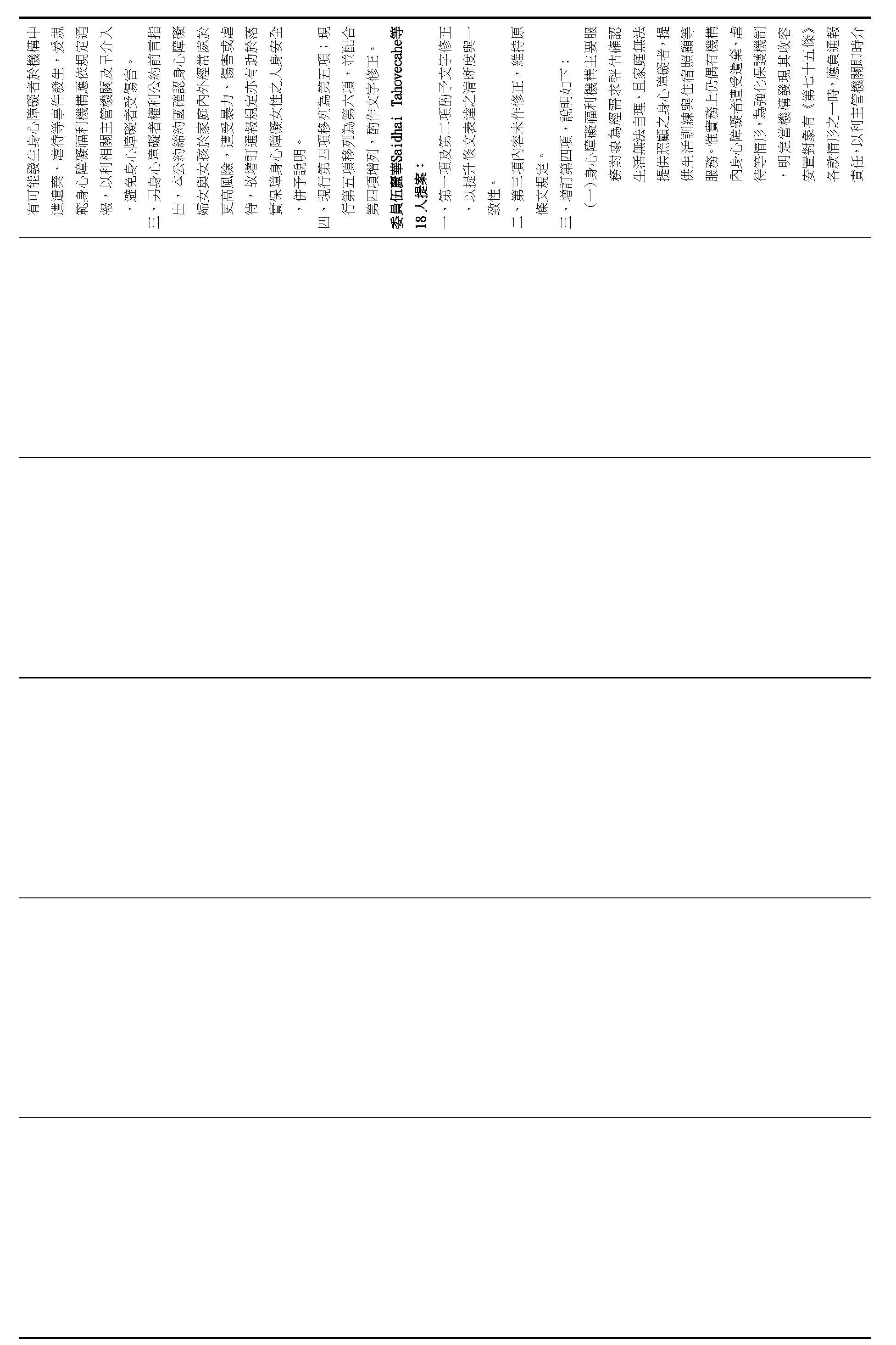 (二)委員伍麗華Saidhai Tahovecahe等18人擬具「身心障礙者權益保障法部分條文修正草案」案。