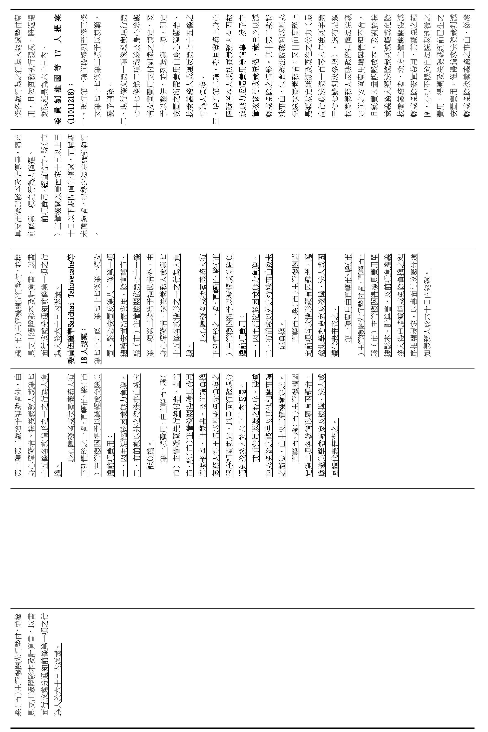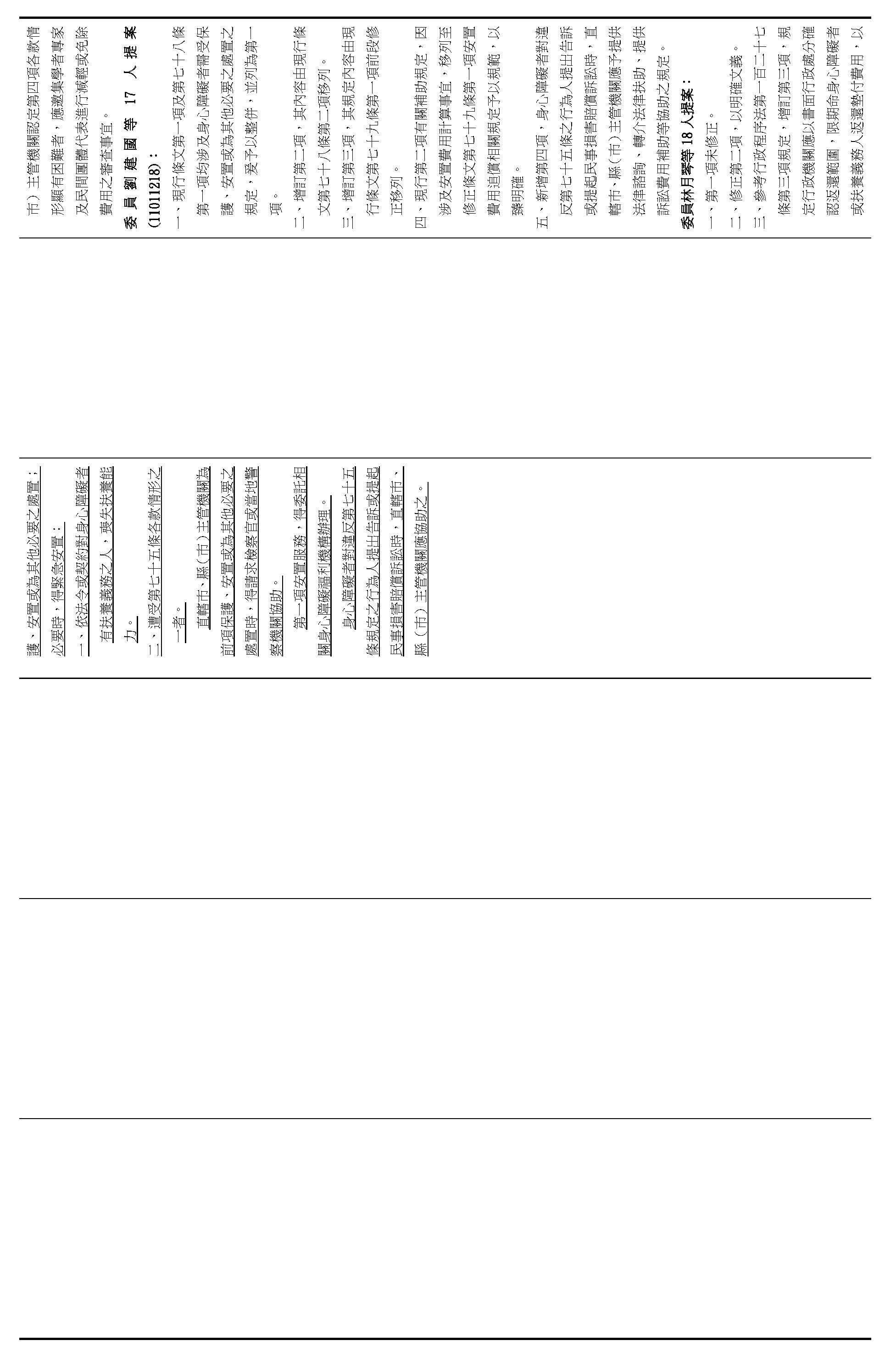 委員會在此報告,剛剛垂詢時也有特別跟各位說明,併案後總共有一百七十多個條次,宣讀時間需要二個多鐘頭,在此作個宣告,向各位提醒一下。