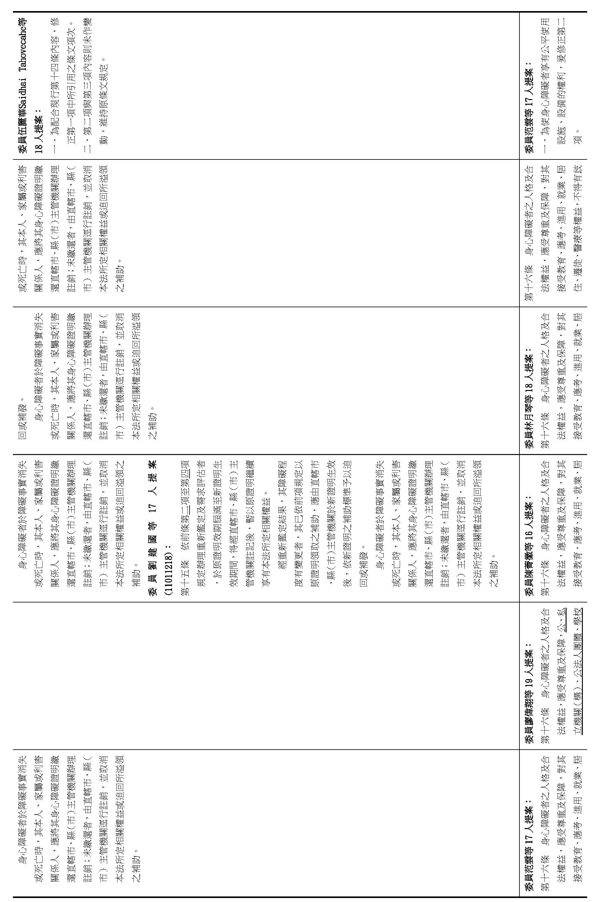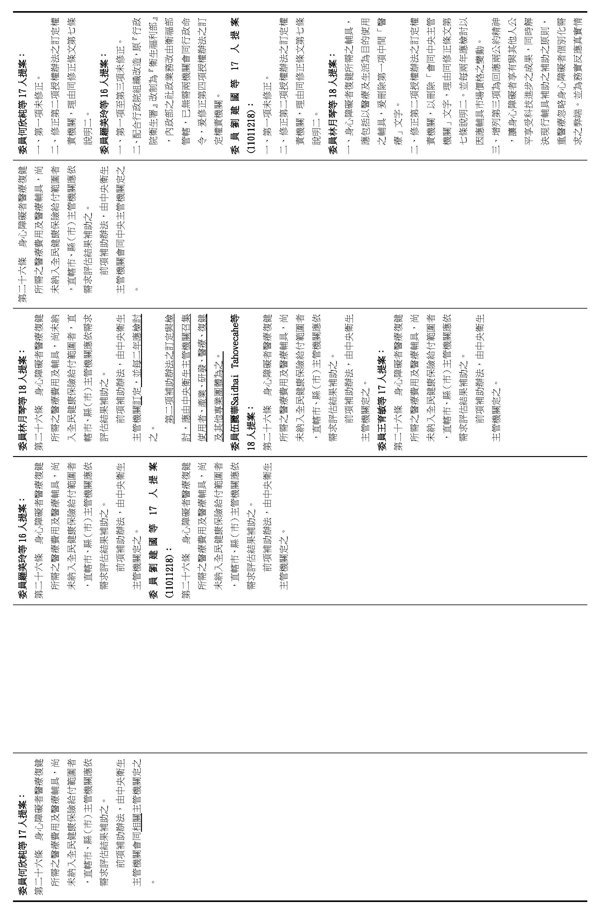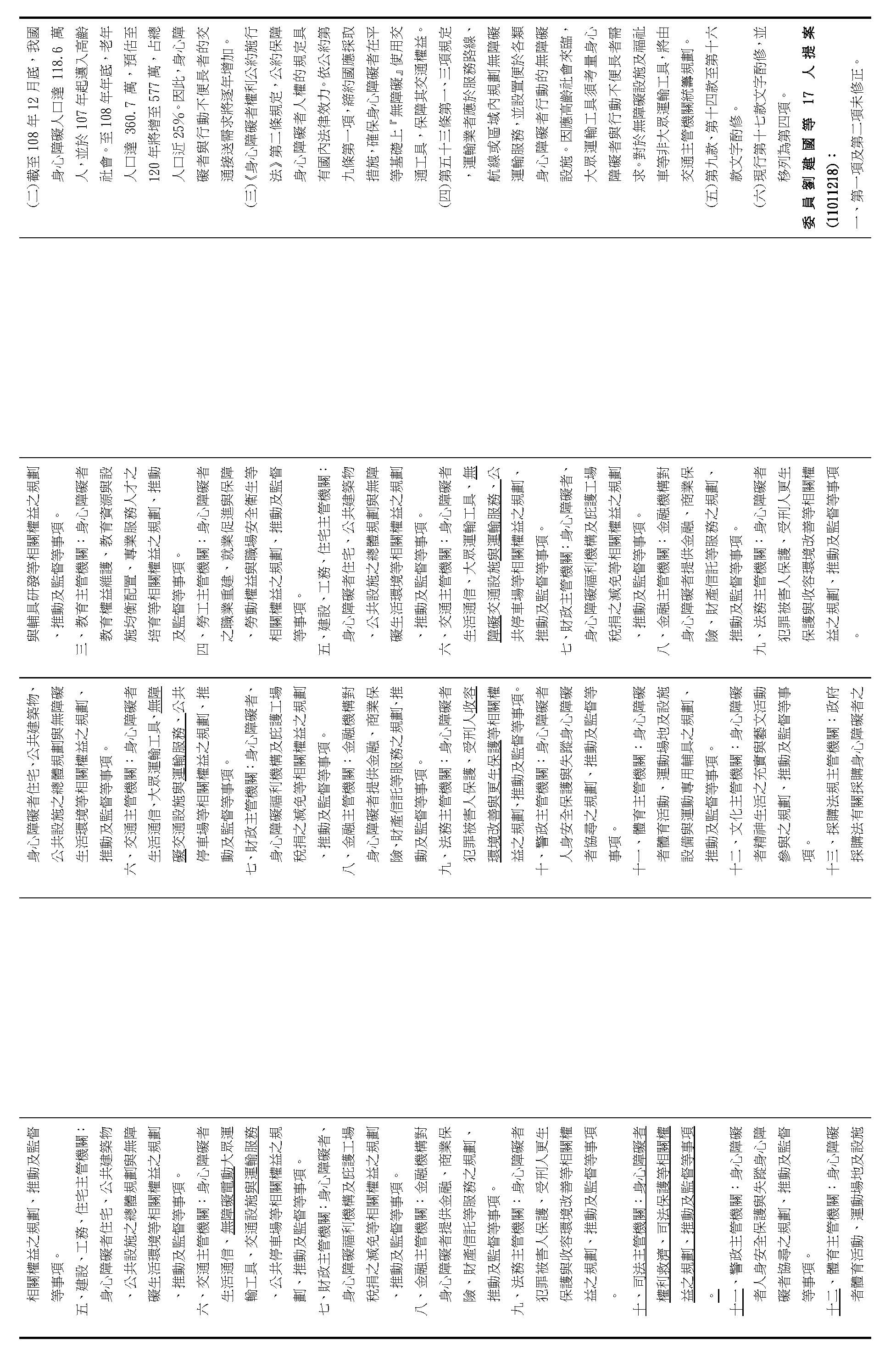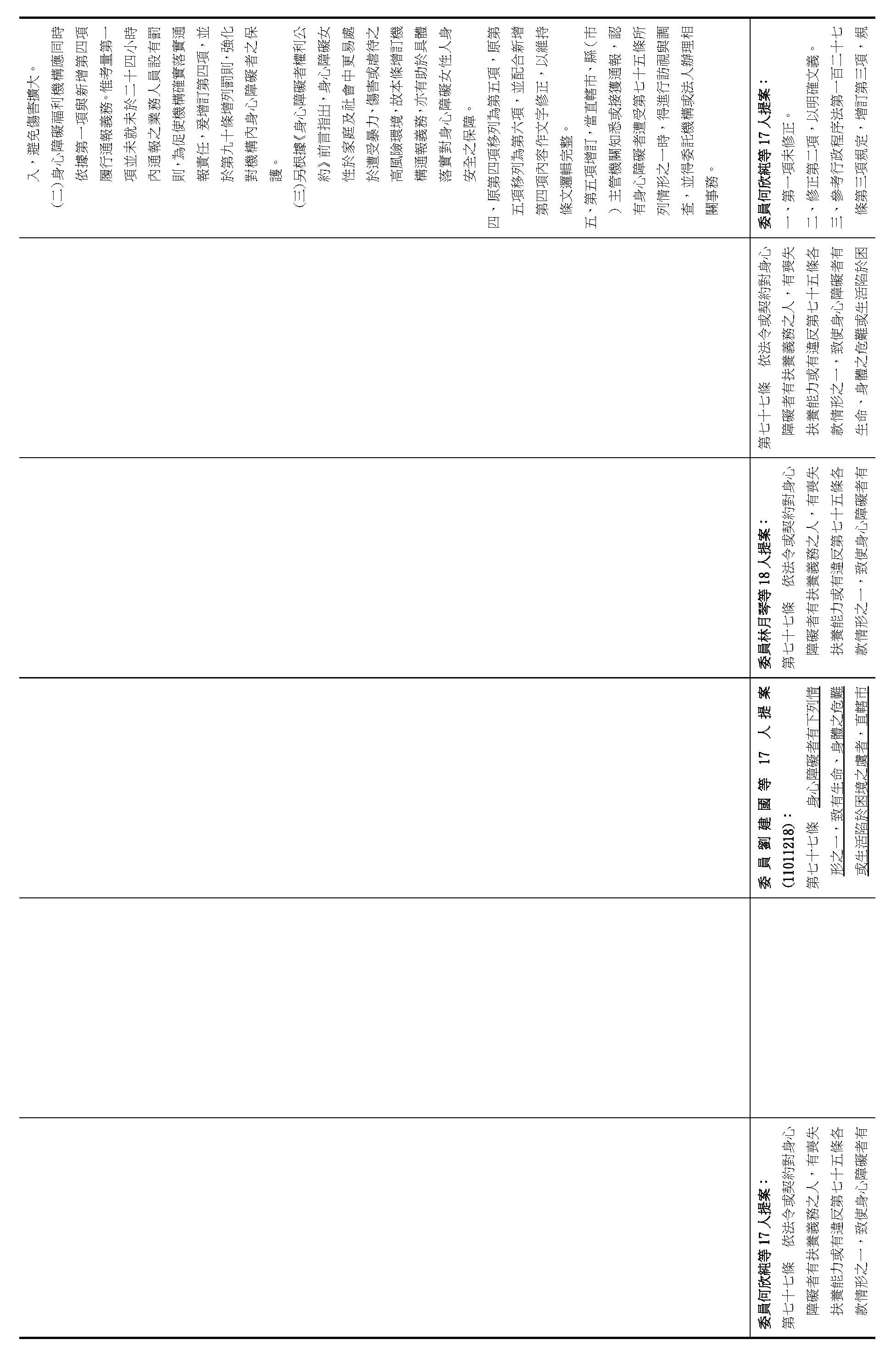 (六)委員徐富癸等18人擬具「身心障礙者權益保障法第十條條文修正草案」案。